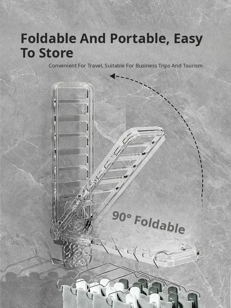 Portable Folding Clothes Hanger with Powerful Suction - No Drill, Space-Saving Travel & Hotel Clothes Drying Rack, Ideal for Balconies and On-the-Go!