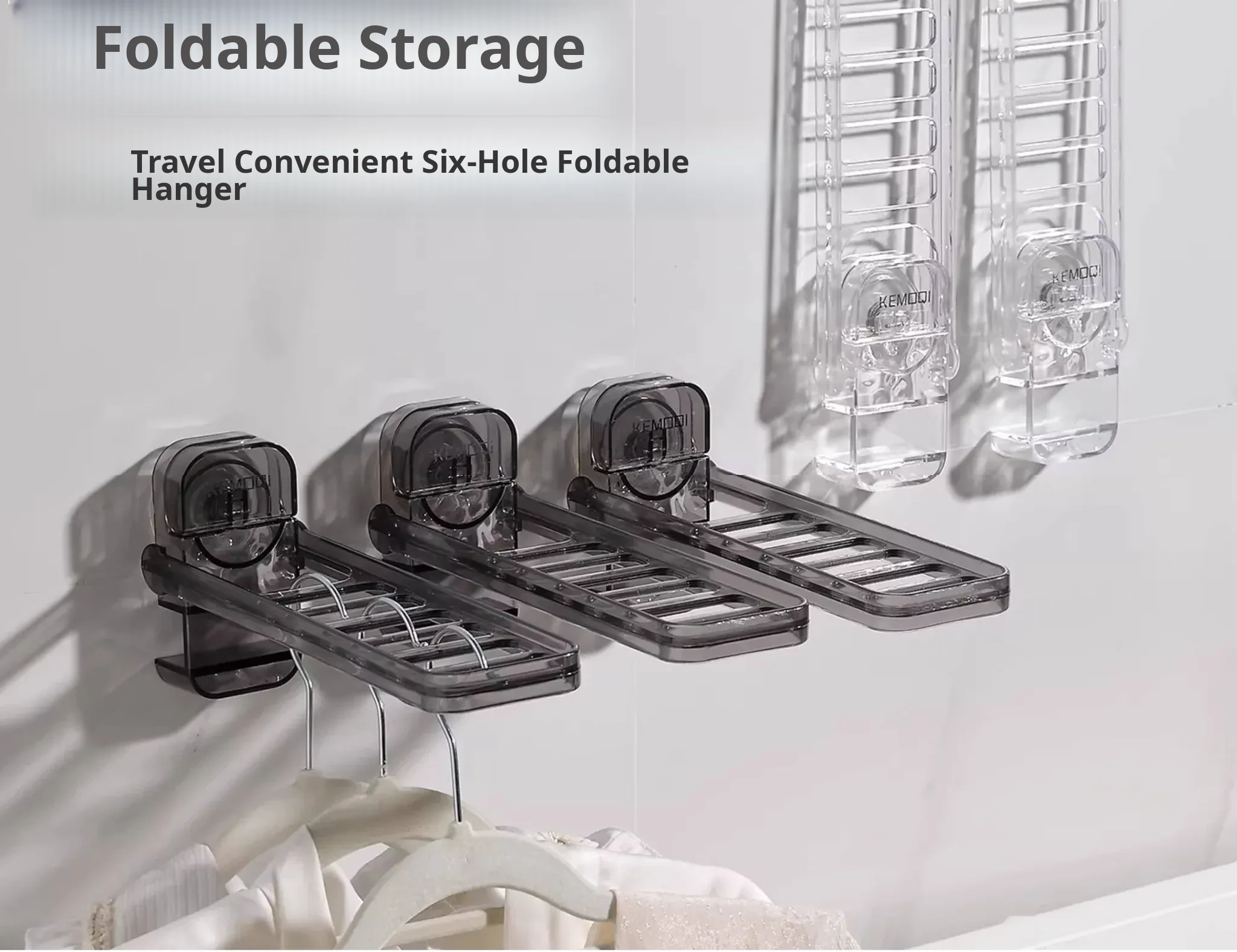 【Translucent Grey】Six-Hole Clothes Hanger / Powerful Suction Cup / Foldable Storage / Multi-Purpose