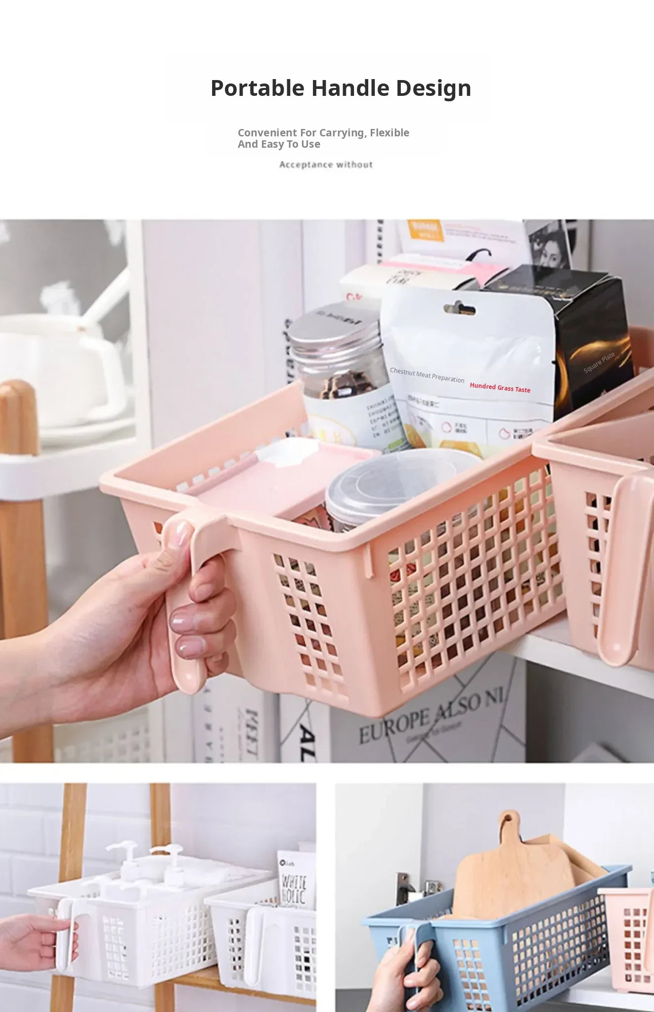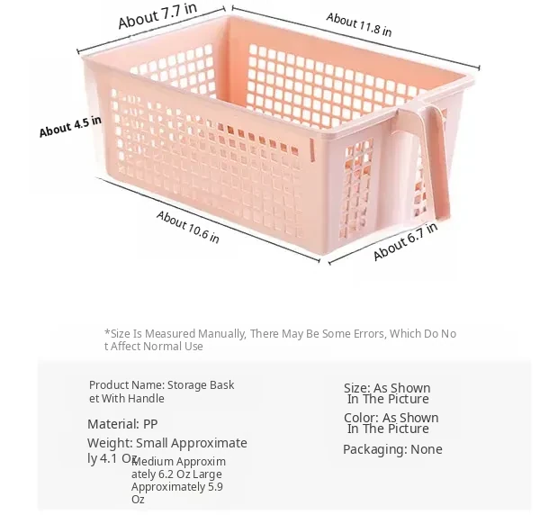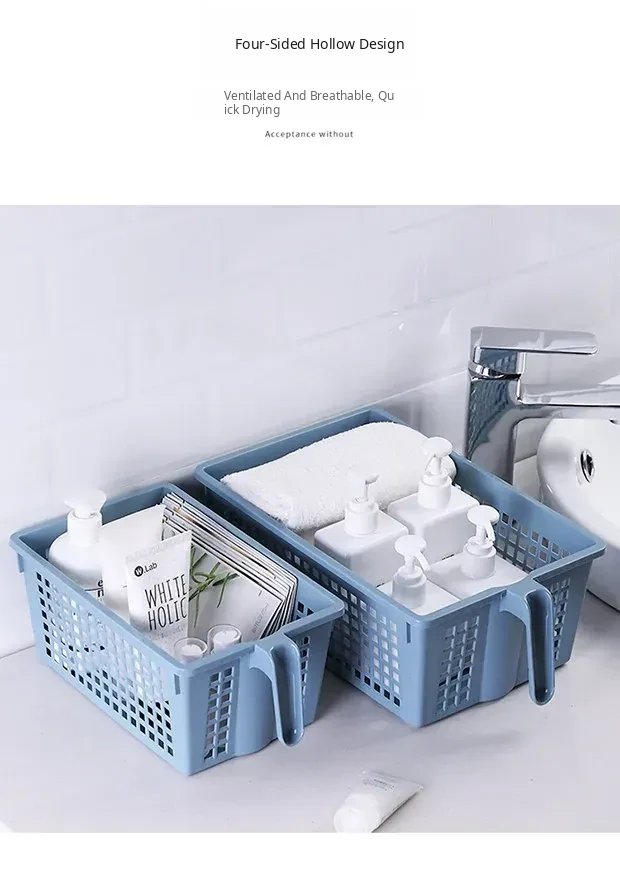 Rectangular Storage Basket with Handles - Versatile Plastic Organizer for Home, Bathroom, and Shower - Perfect for Snack Storage and Clutter Management