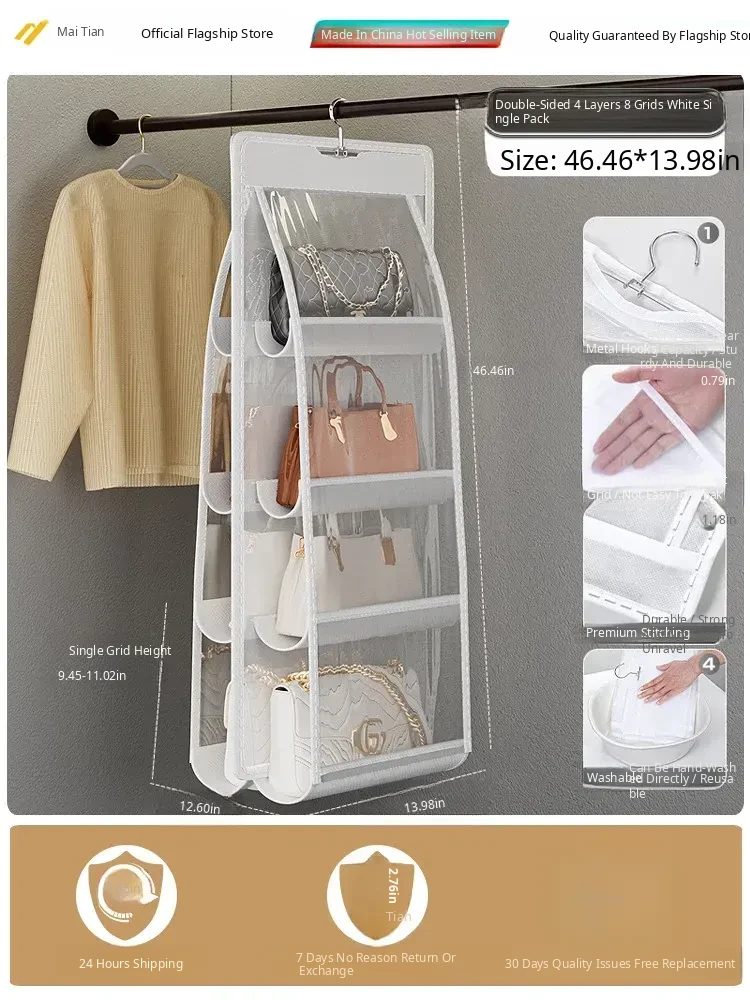Bag Storage Artifact-White [Double-Sided Four Layers✅8 Grids 1 Pack]