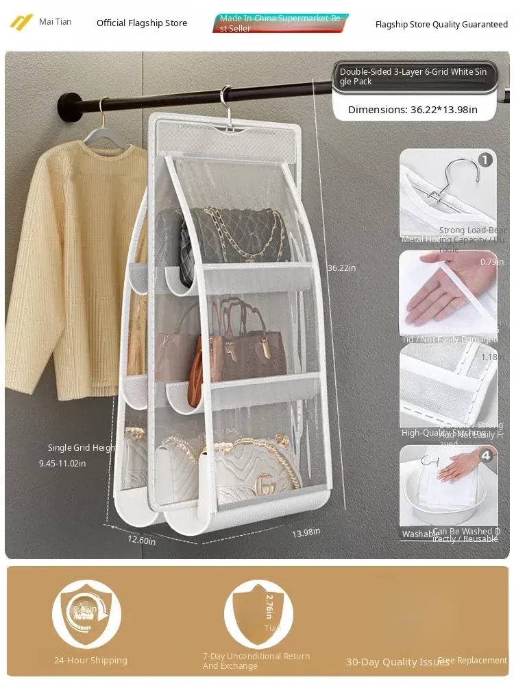 Bag Storage Artifact-White [Double-Sided Three-Layer✅6 Compartments, 1 Pack]