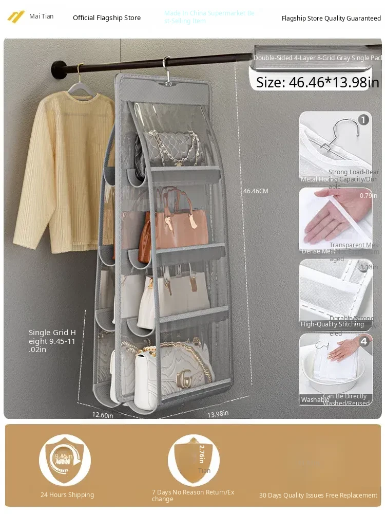 Bag Storage Artifact - Gray [Double-Sided Four Layers ✅ 8 Grids 1 Pack]