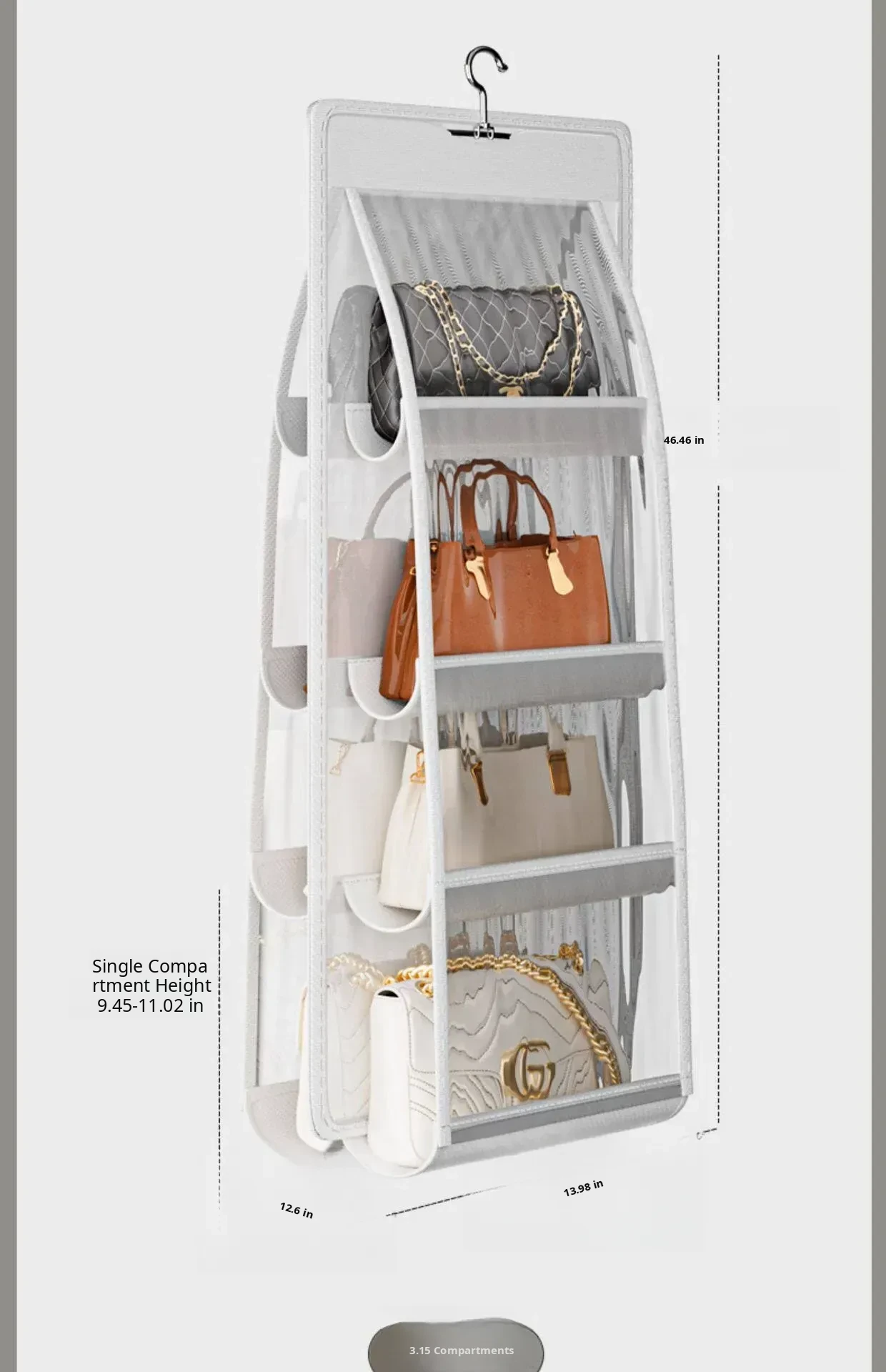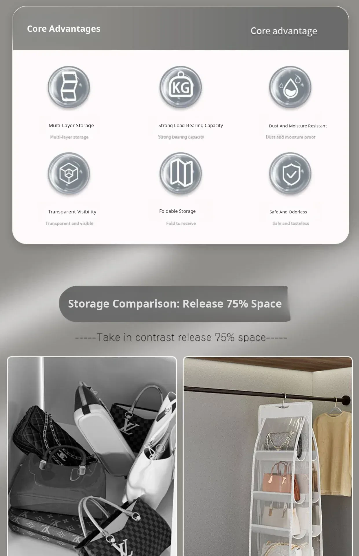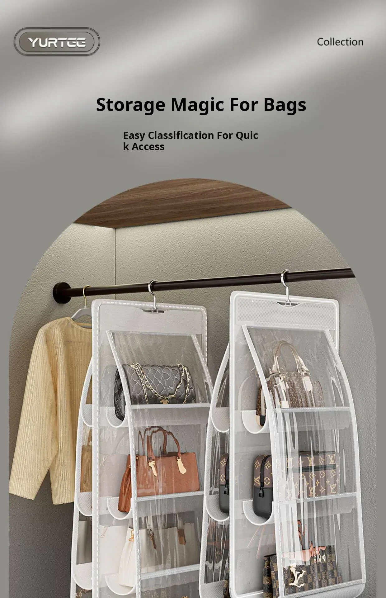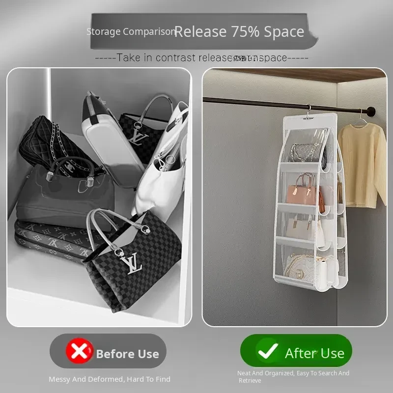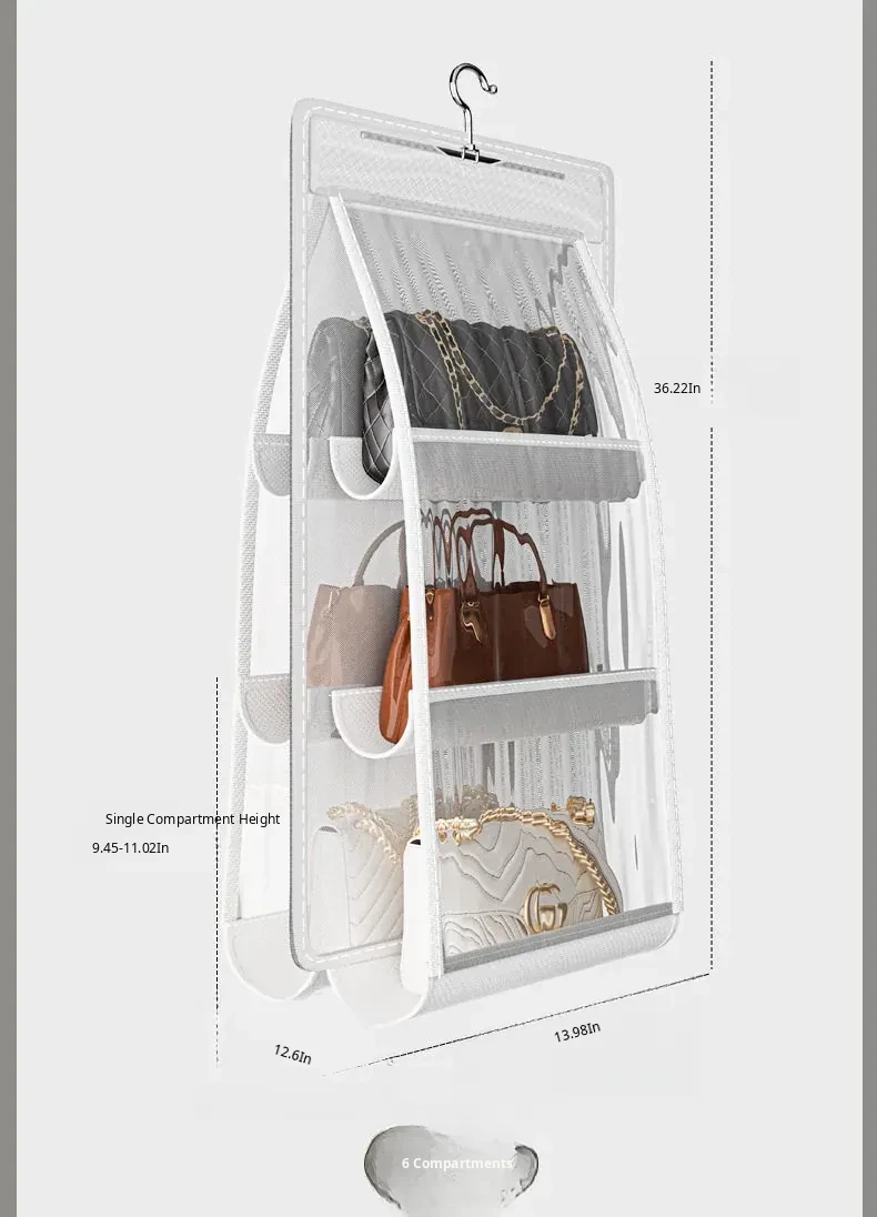 Space-Saving Hanging Bag Organizer - Closet Storage Rack for Display & Dust Protection, with Dividers for Neat Organization and Easy Access