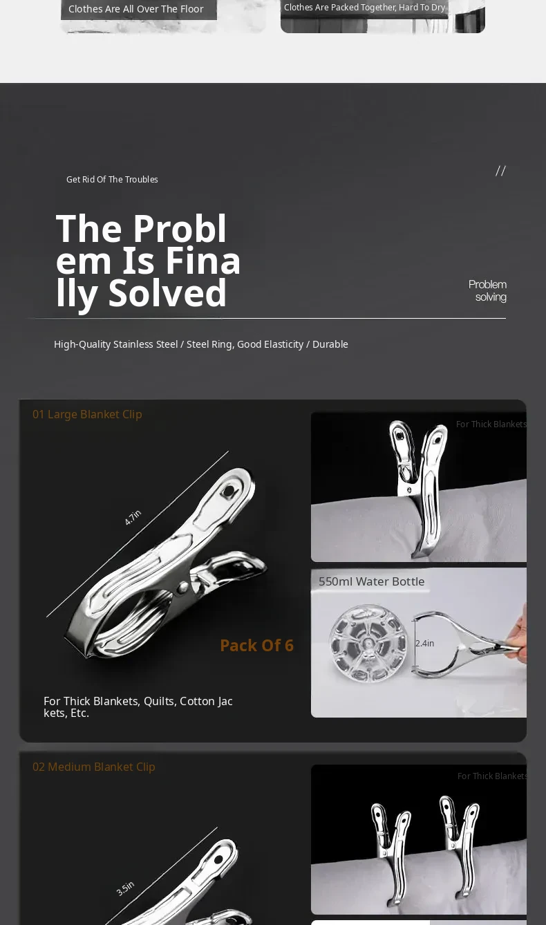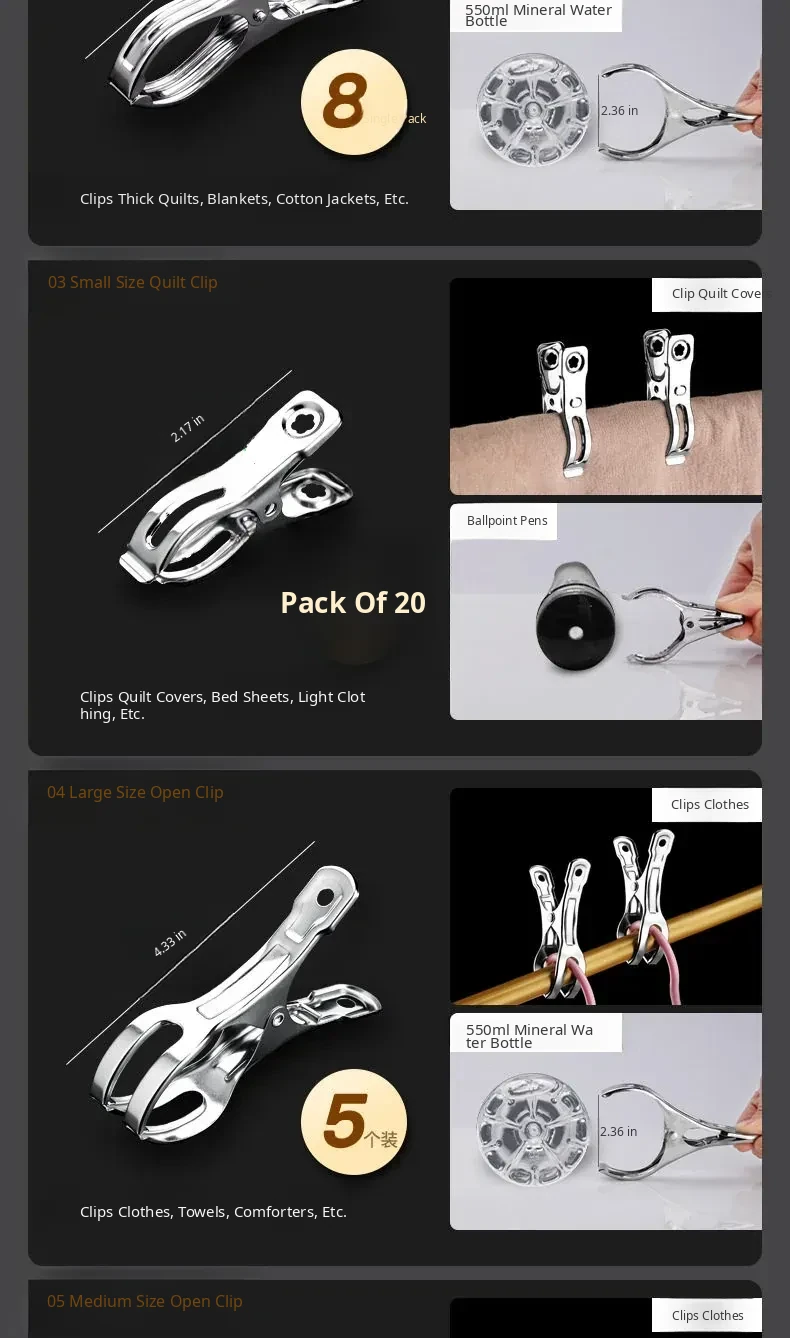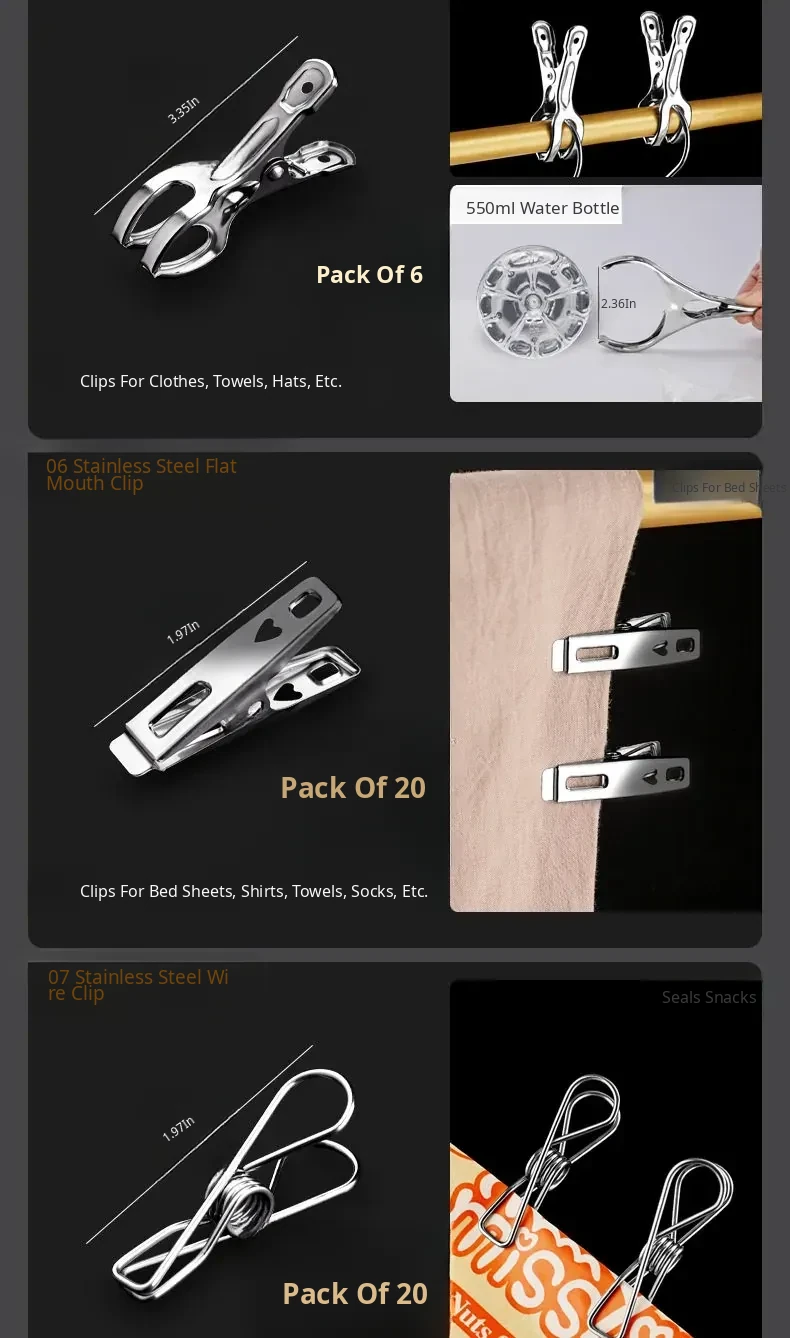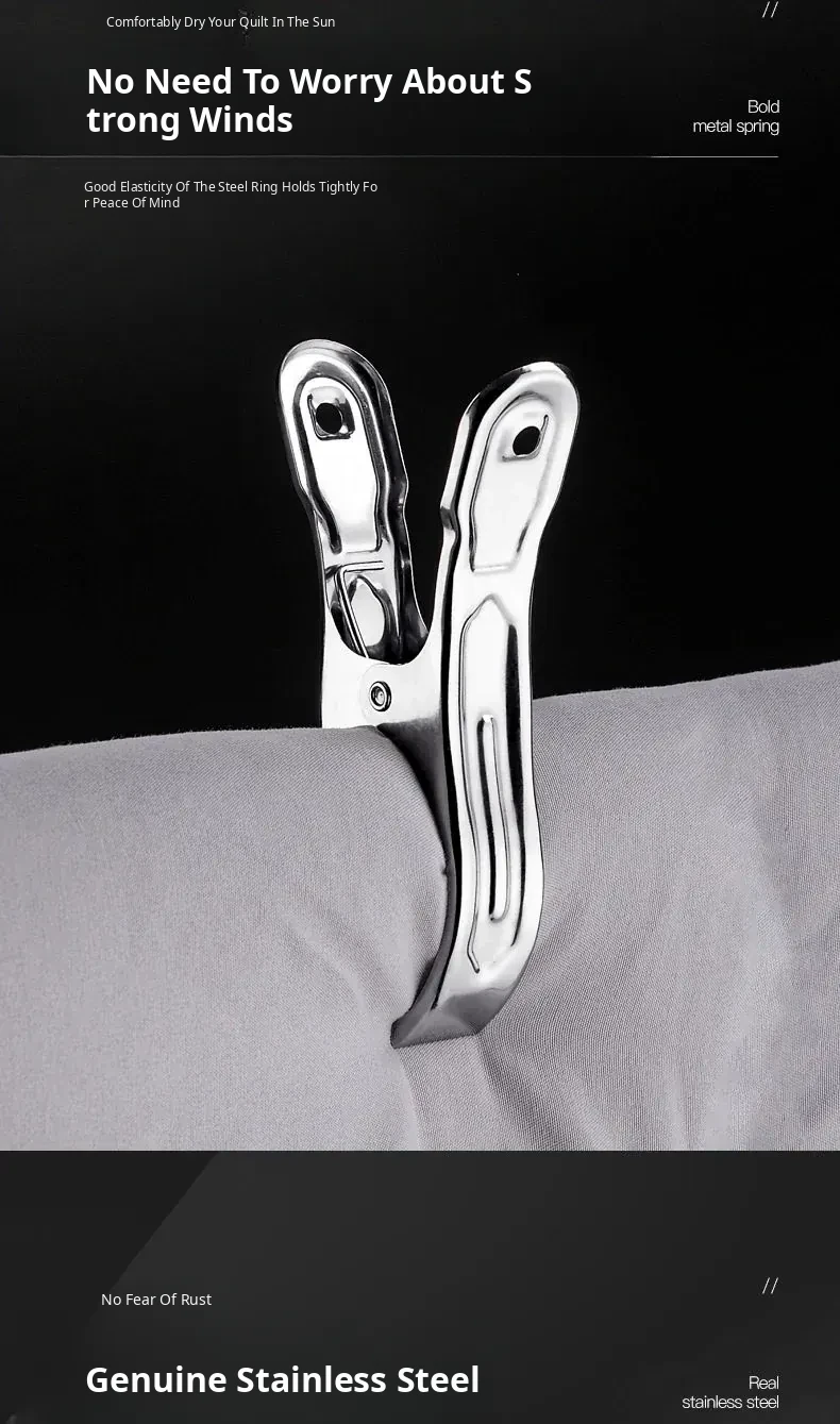 Stainless Steel Clothes Clips - Large Heavy-Duty Blanket Clips for Home Use, Moisture-Proof, Non-Slip, No Trace Design, Versatile and Durable for Drying Clothes and Bedding