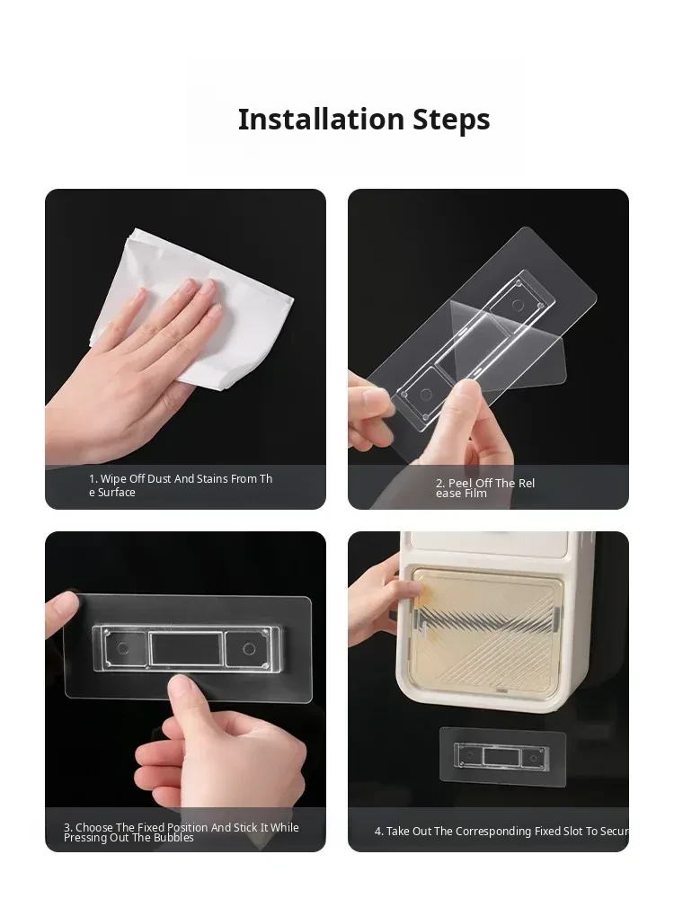 Strong Adhesive No-Drill Tissue Box Accessories – Chopstick Holder, Toothbrush Rack, and Storage Shelf with Non-Marking Backing Tape – Effortless Installation and Stylish Organization!