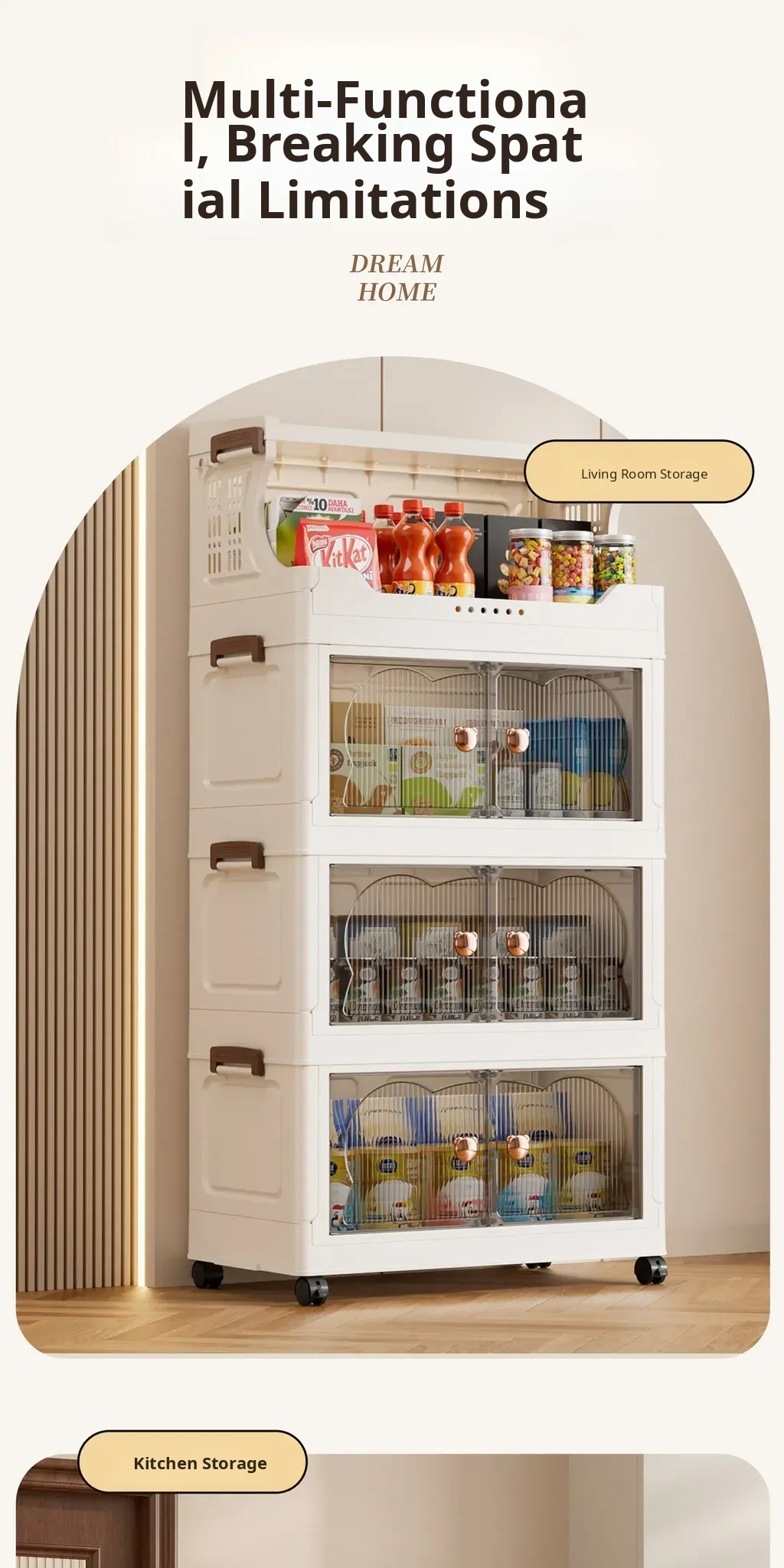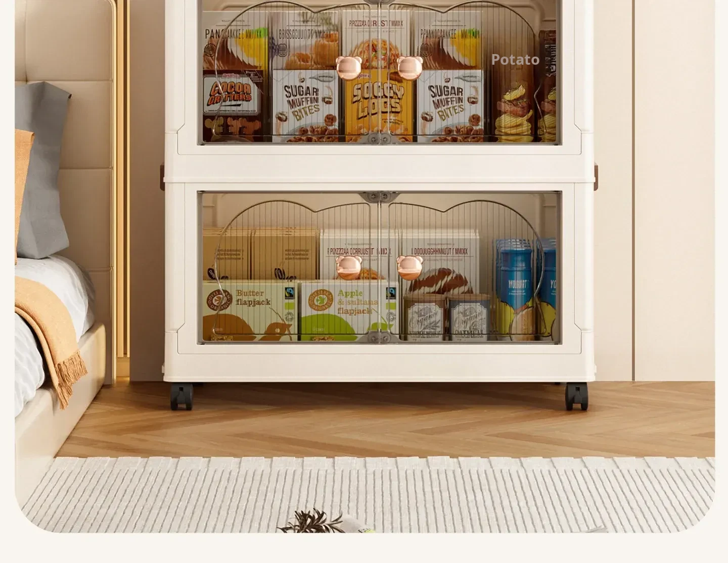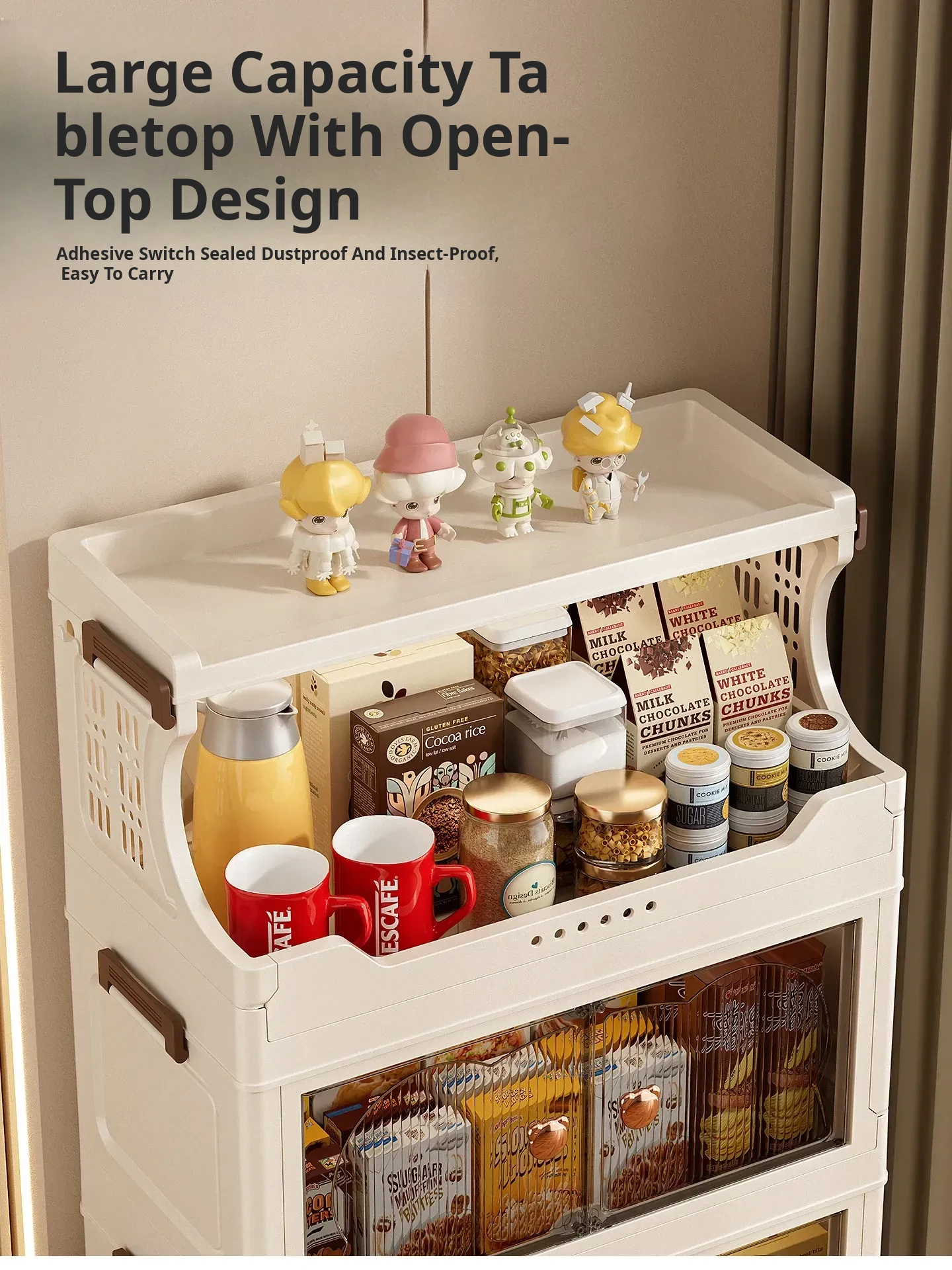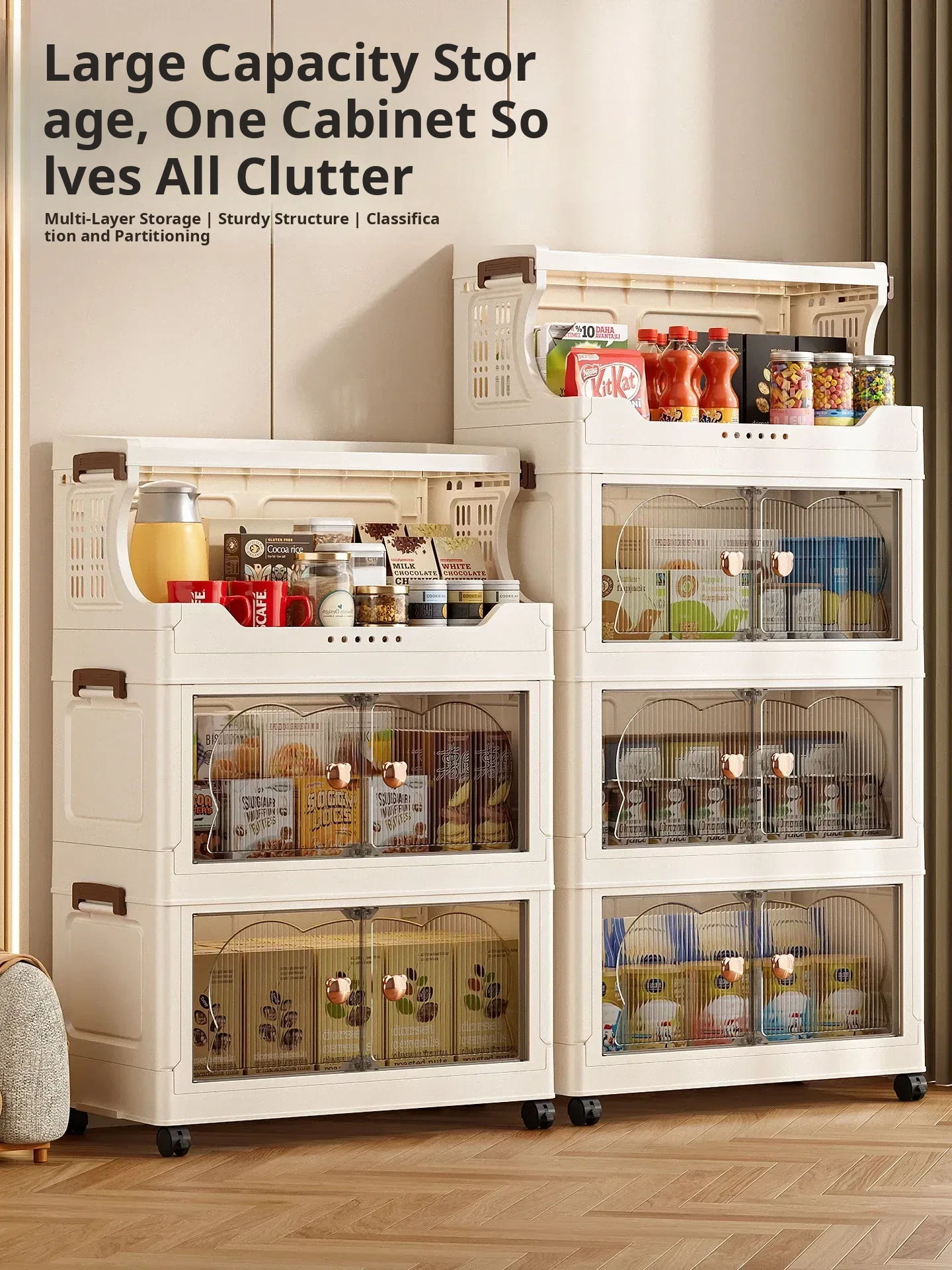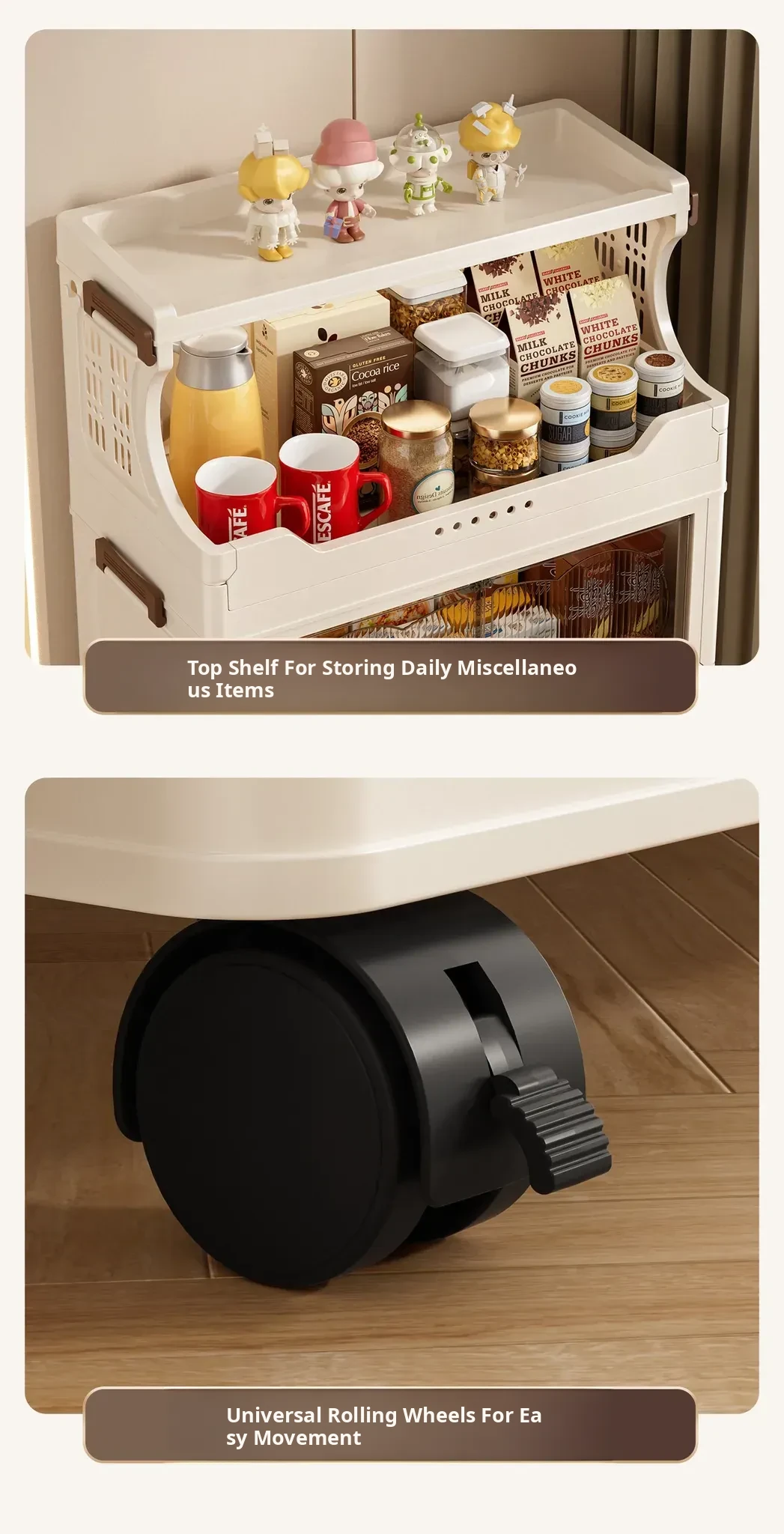 Stylish Snack Rack and Storage Shelf - High Capacity Toy Organizer Cabinet for Living Room, Foldable Small Trolley Storage Solution