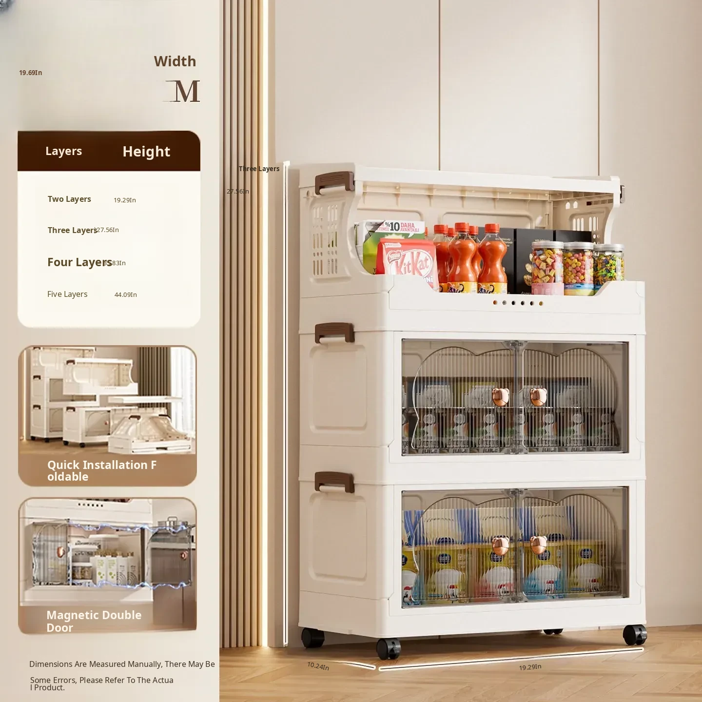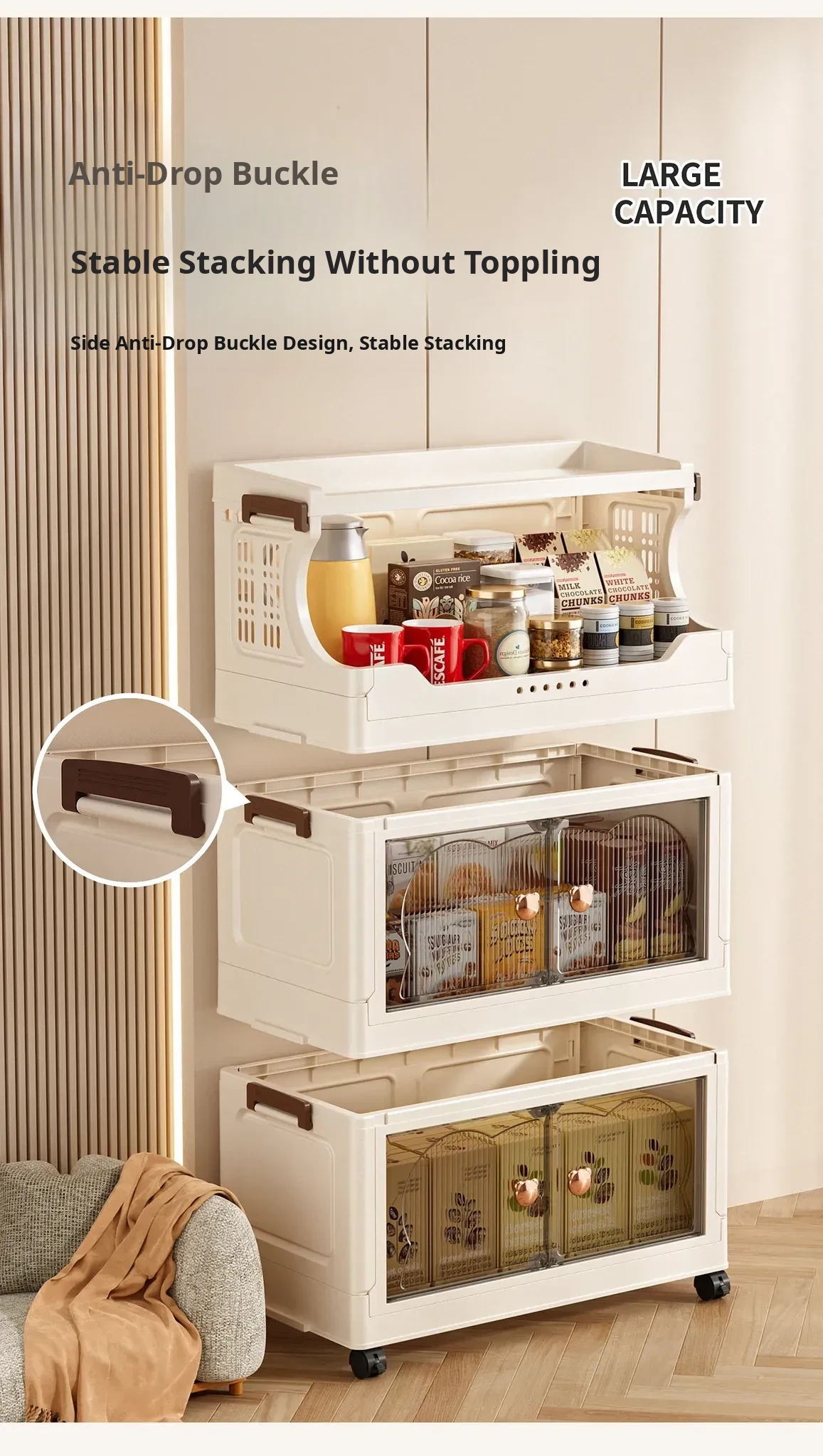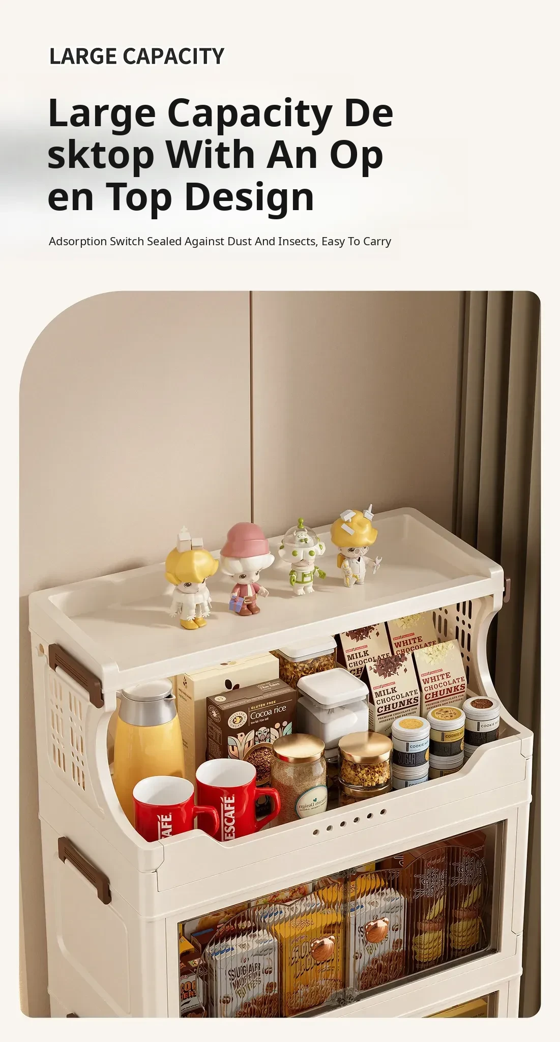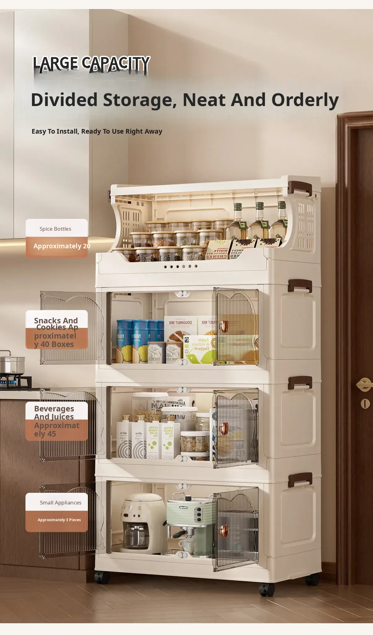 Stylish Snack Rack and Storage Shelf - High Capacity Toy Organizer Cabinet for Living Room, Foldable Small Trolley Storage Solution