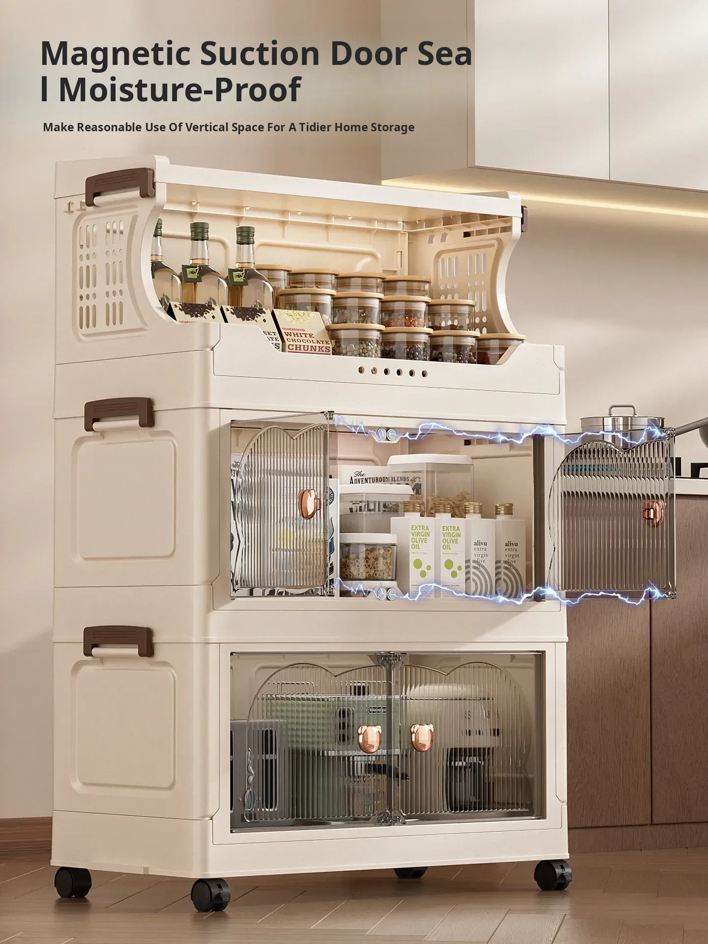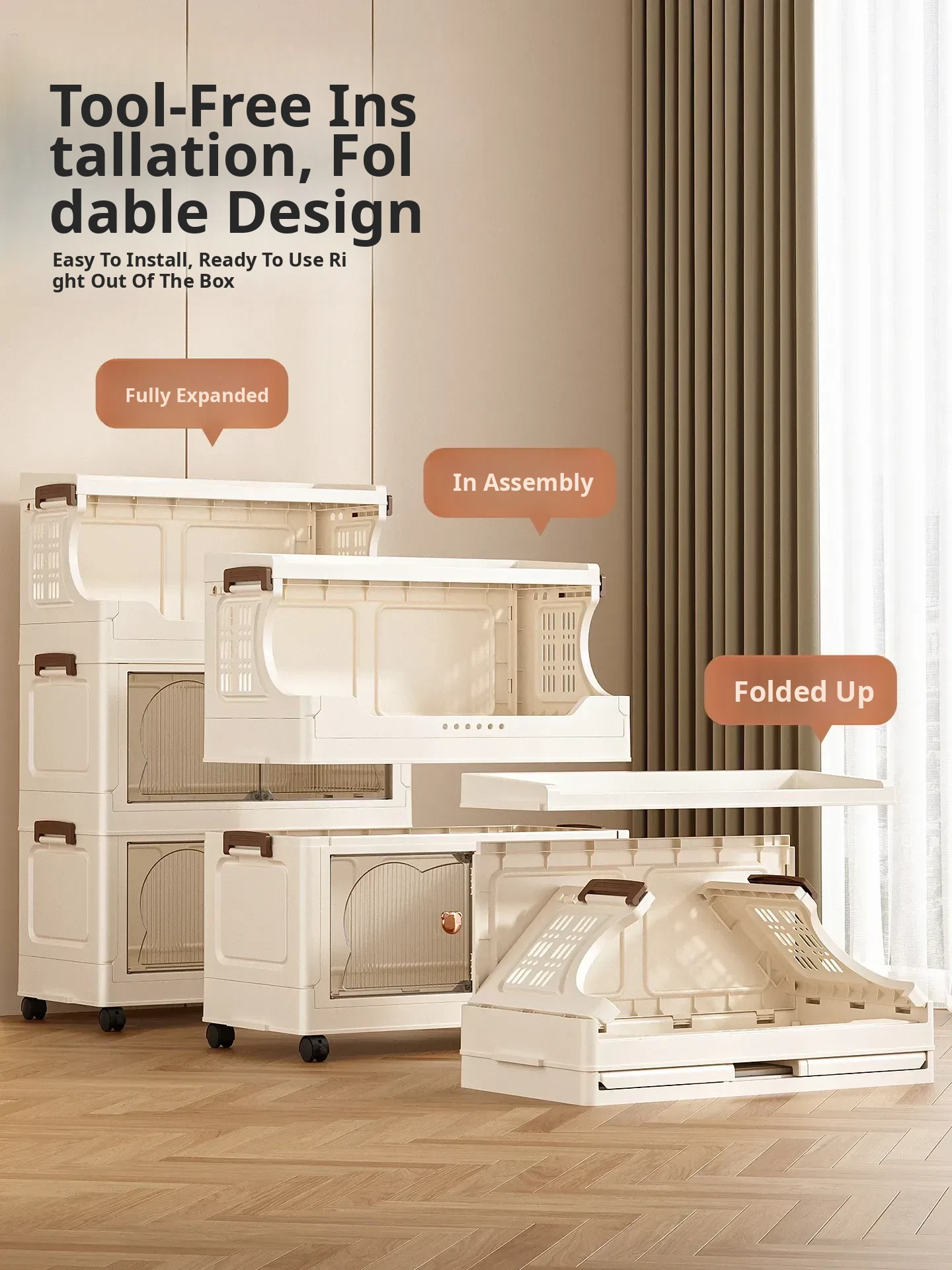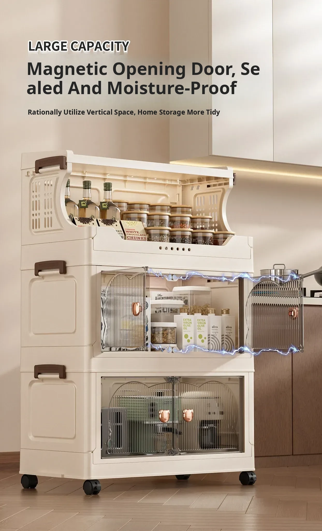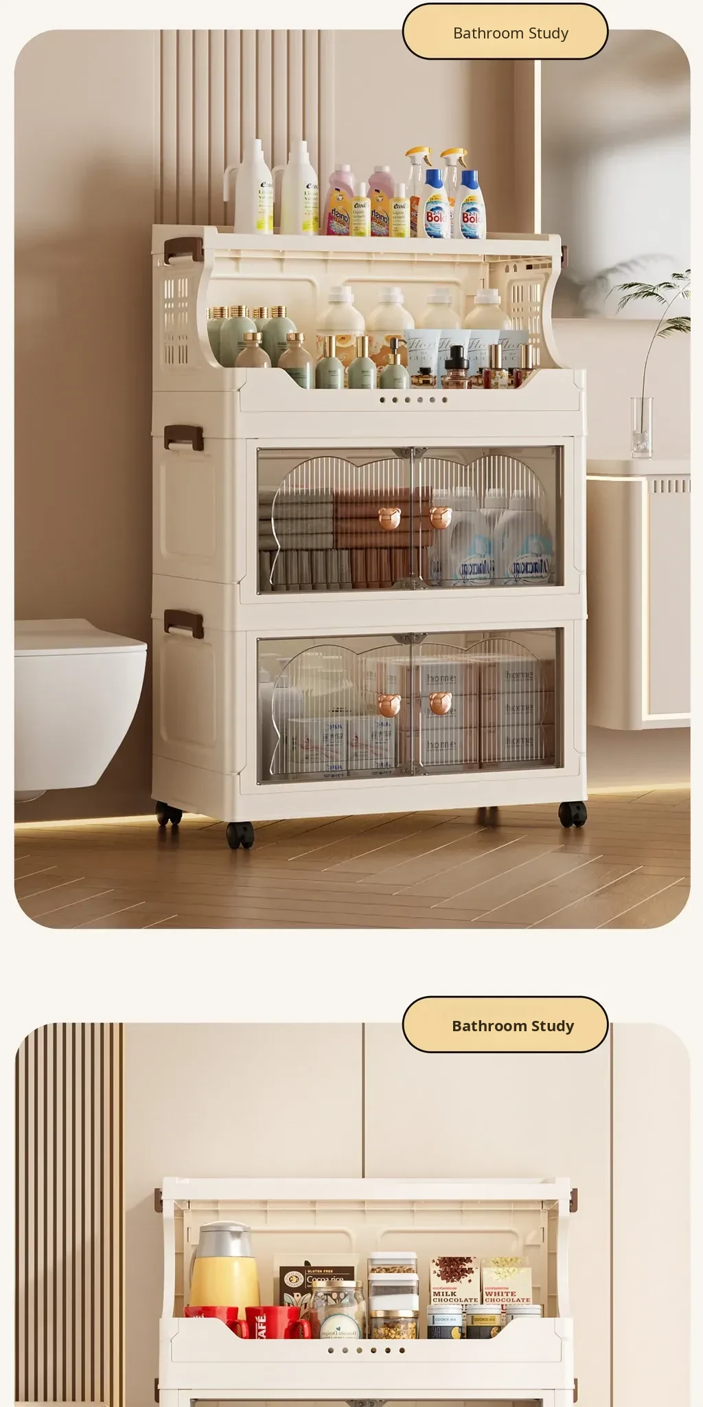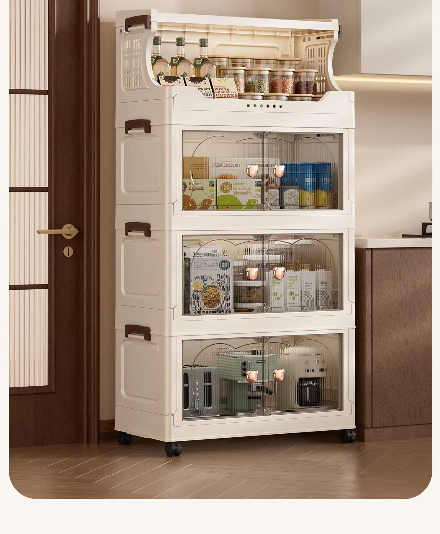 Stylish Snack Rack and Storage Shelf - High Capacity Toy Organizer Cabinet for Living Room, Foldable Small Trolley Storage Solution