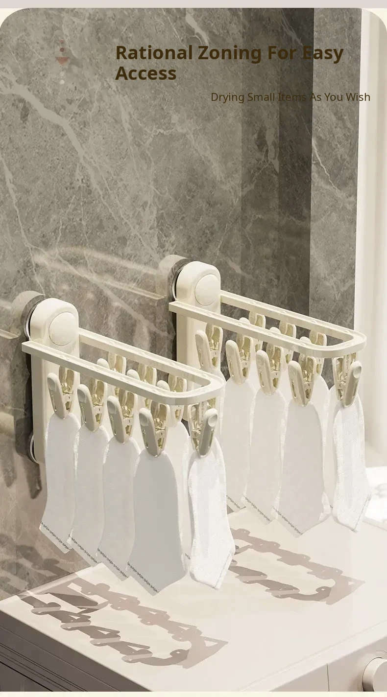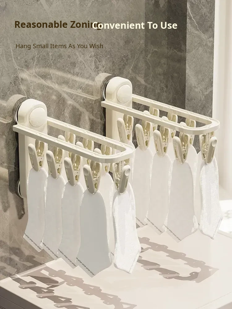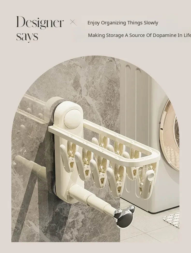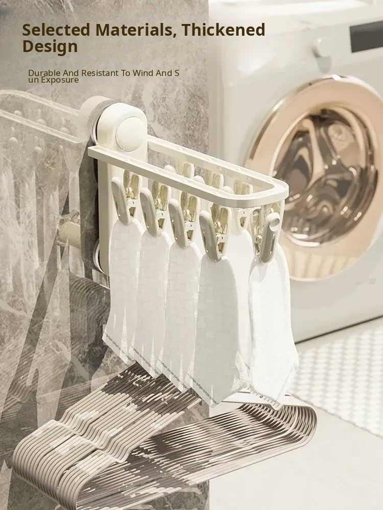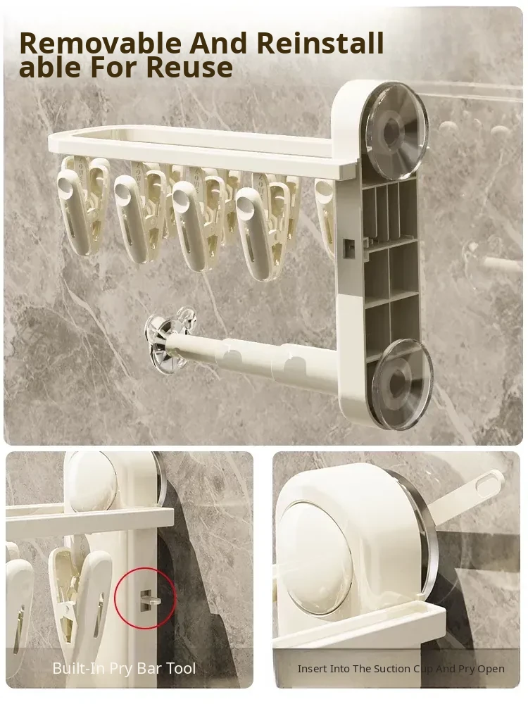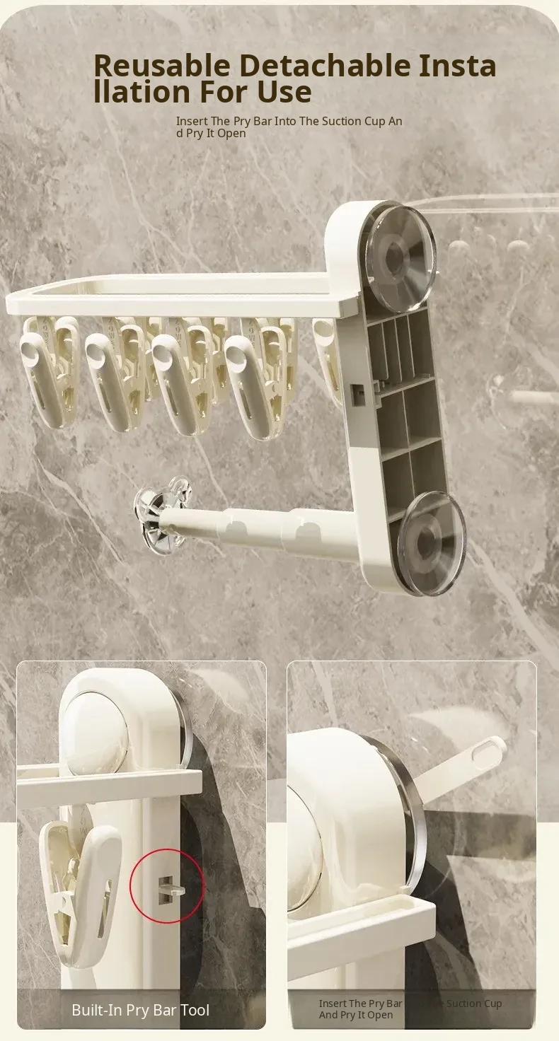 Versatile Suction Cup Clothes Hanger - Space-Saving Telescopic Organizer for Home and Balcony, No Drill Required, Features Clips and Hooks for Easy Drying and Storage