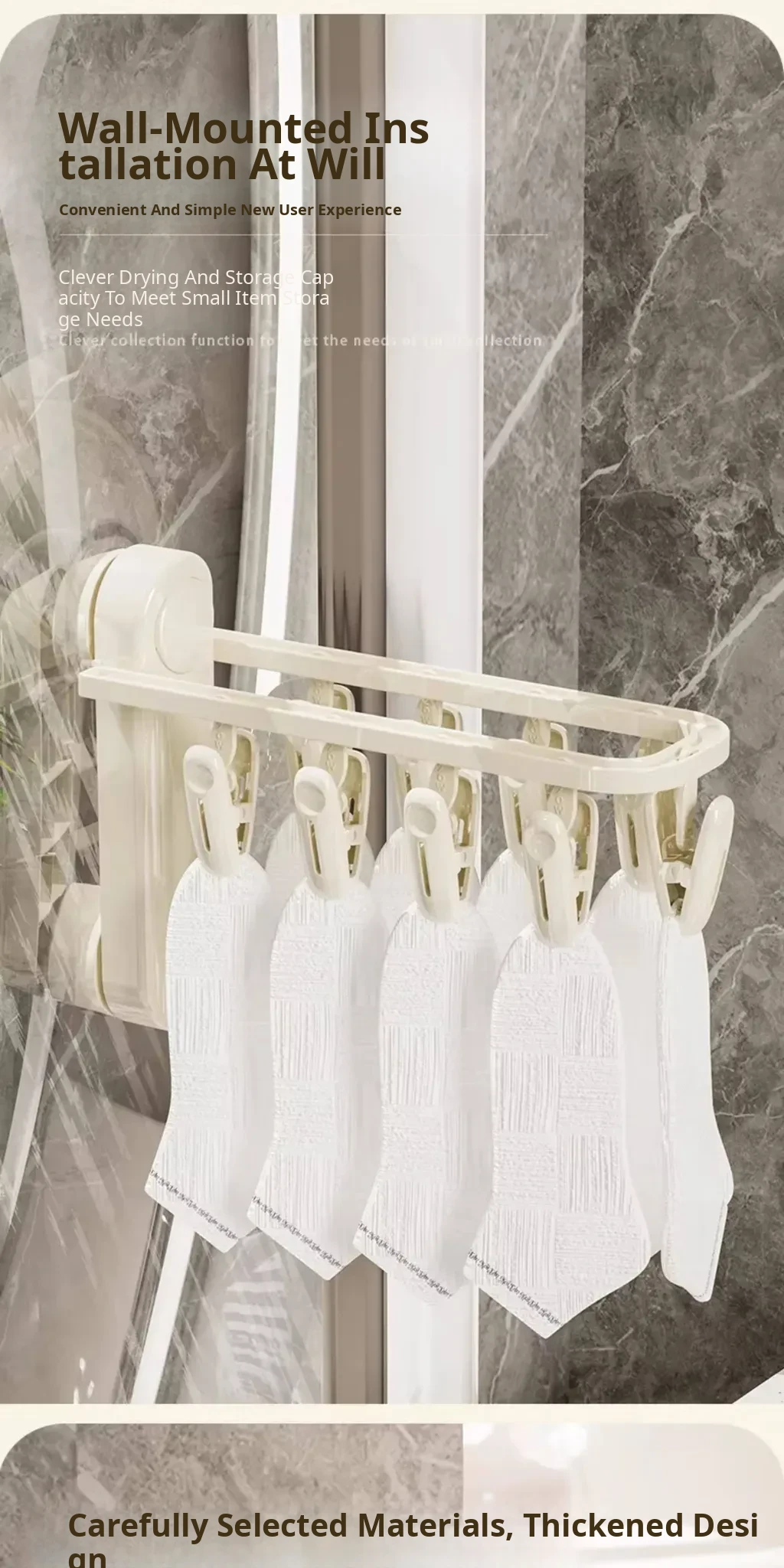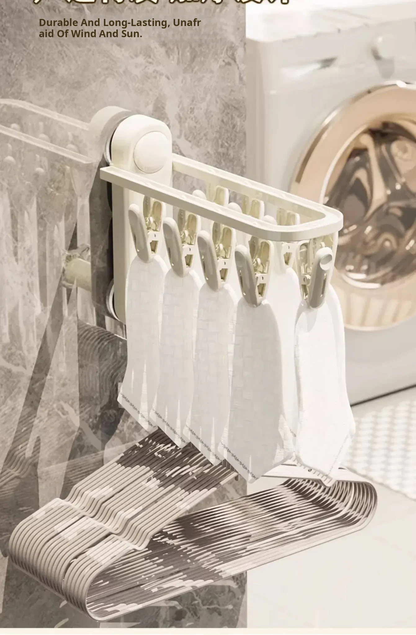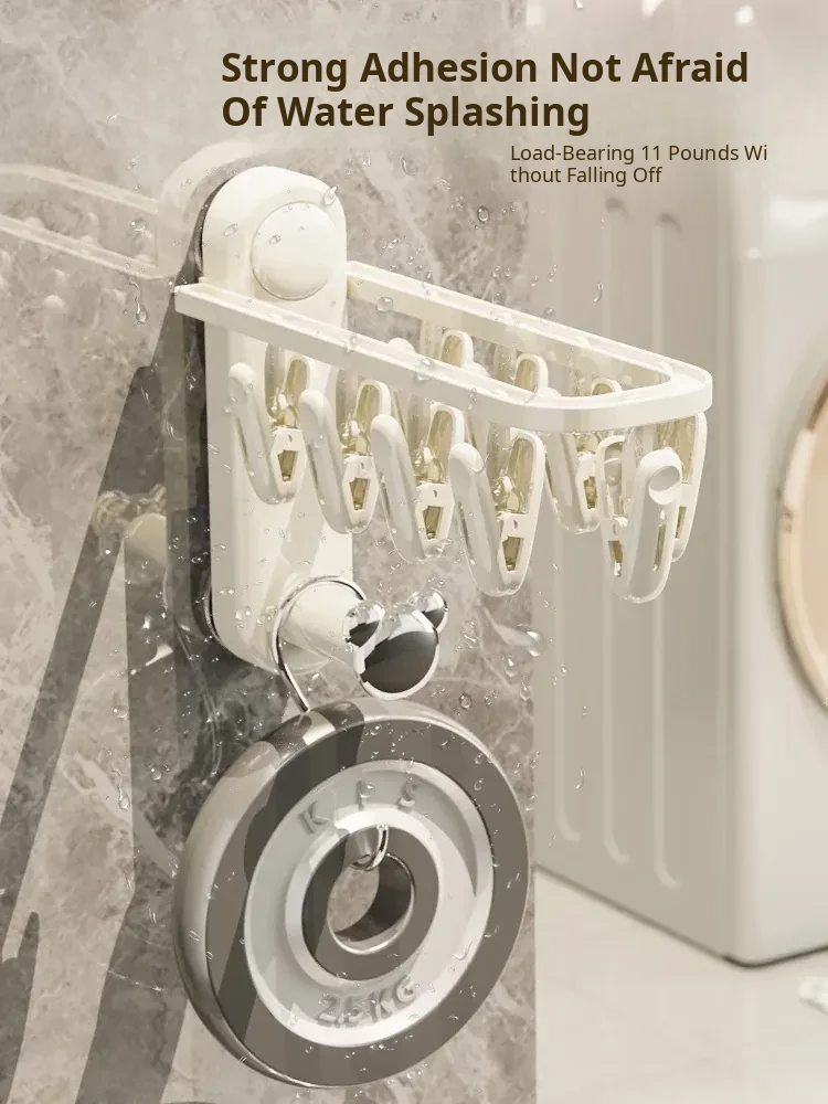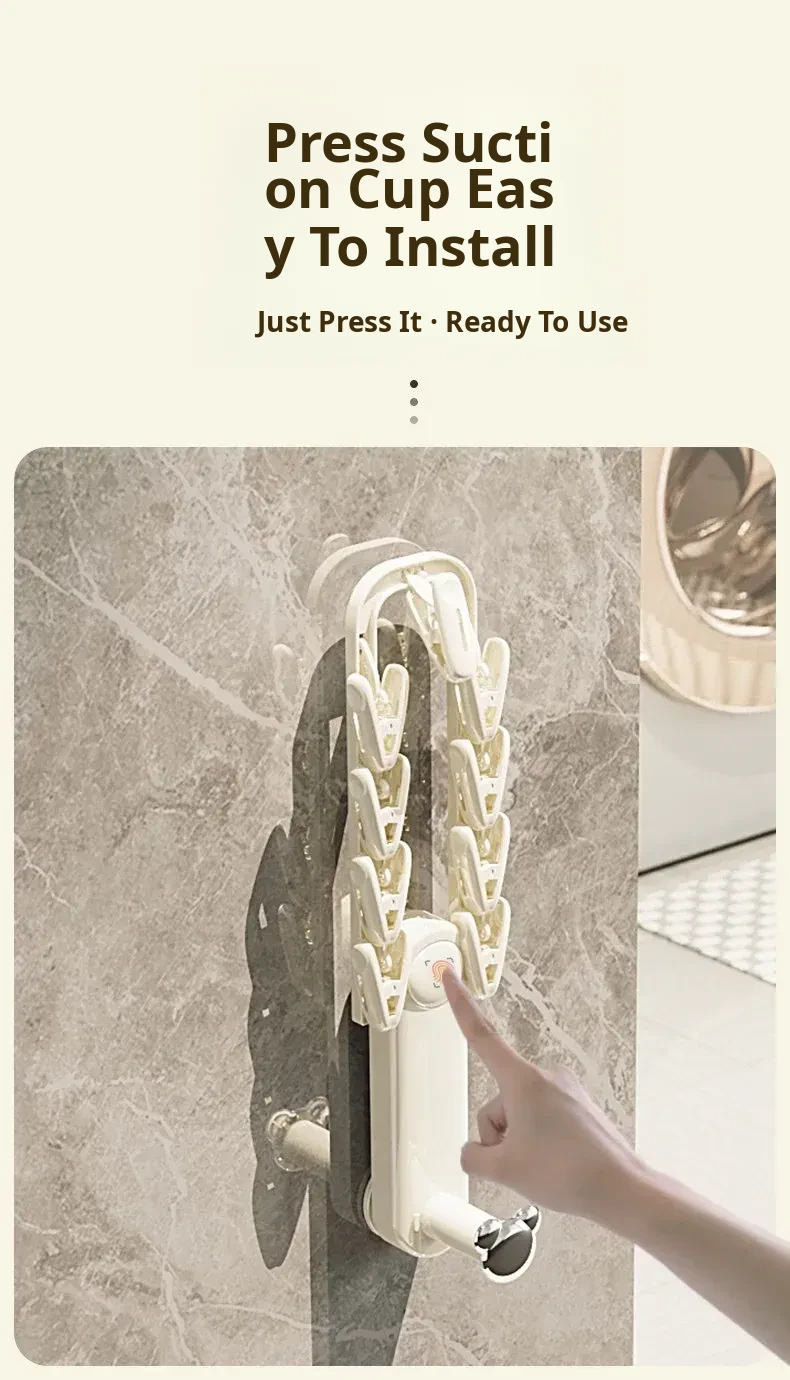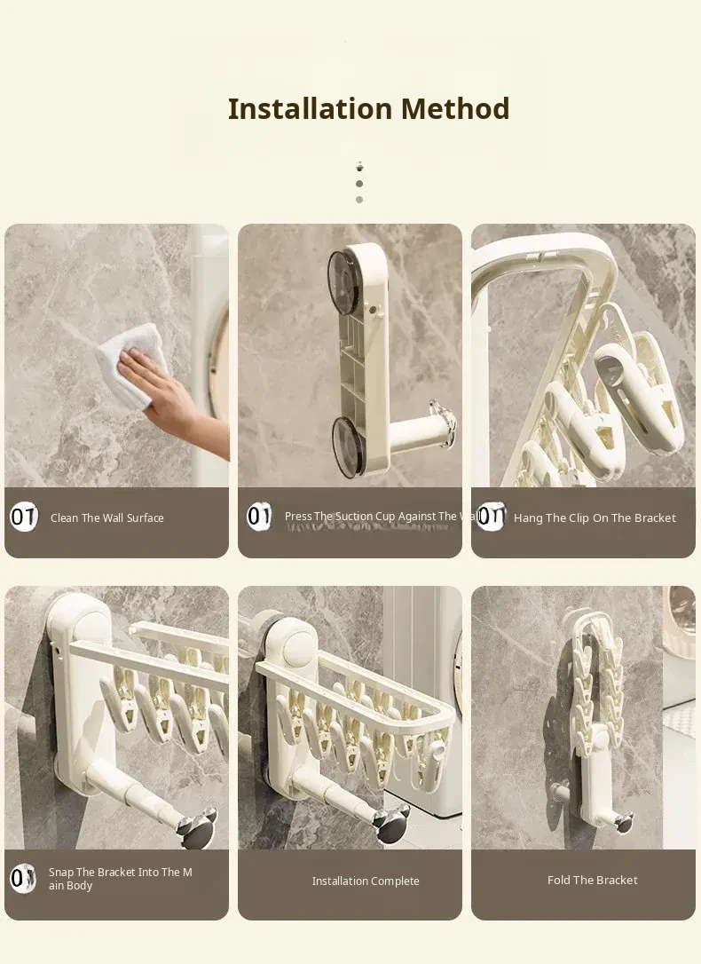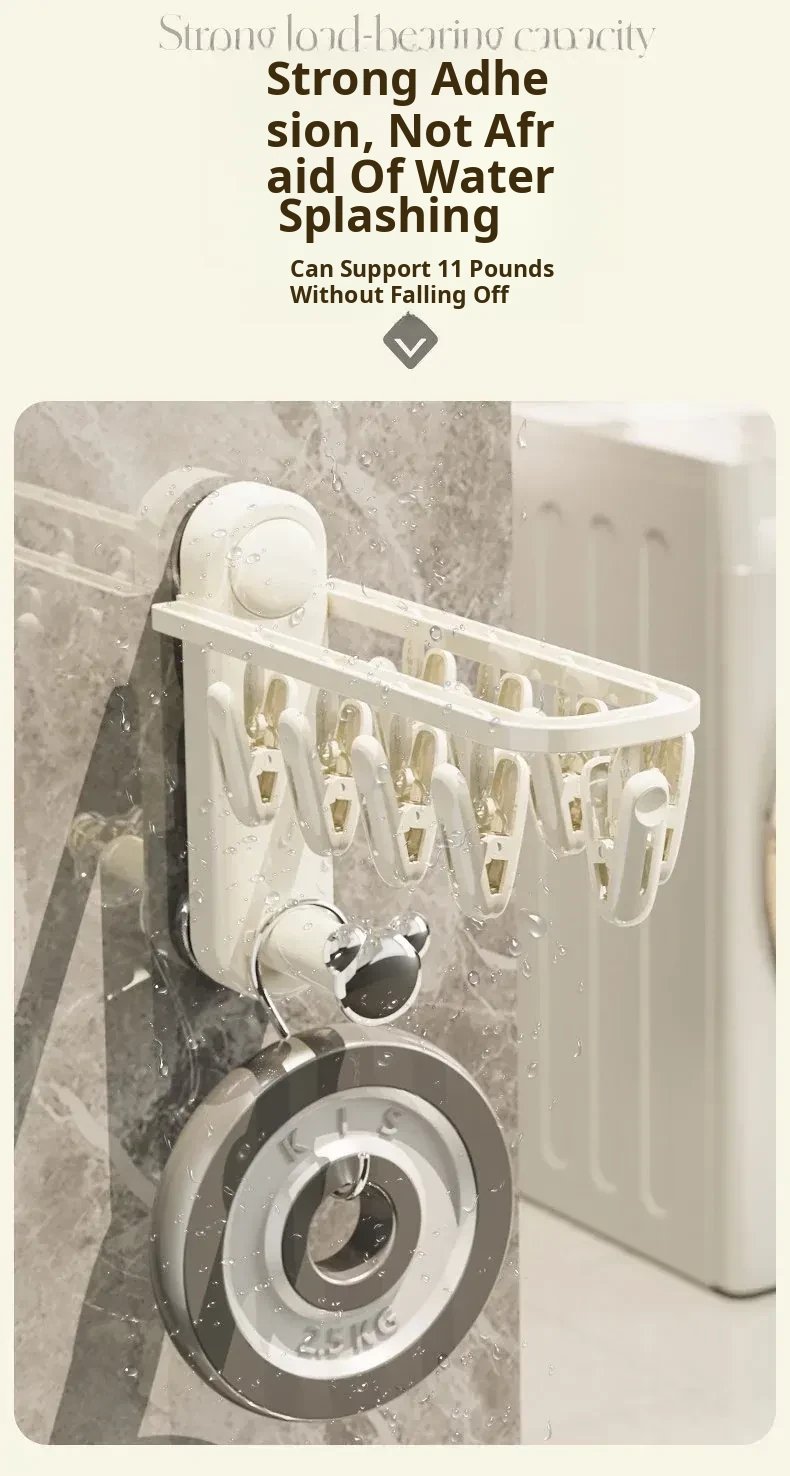 Versatile Suction Cup Clothes Hanger - Space-Saving Telescopic Organizer for Home and Balcony, No Drill Required, Features Clips and Hooks for Easy Drying and Storage