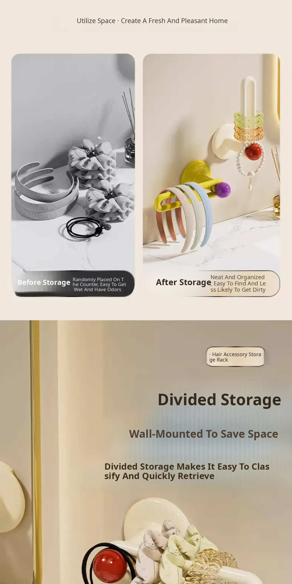 Wall-Mounted Hair Accessory Organizer: Stylish Headband and Hair Tie Holder for Bathroom - Keep Your Hairpins, Clips, and Bands Neat and Tidy! Perfect for Jewelry and Accessories Storage.