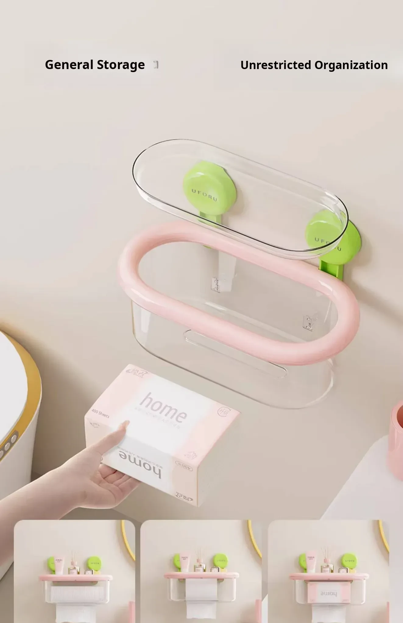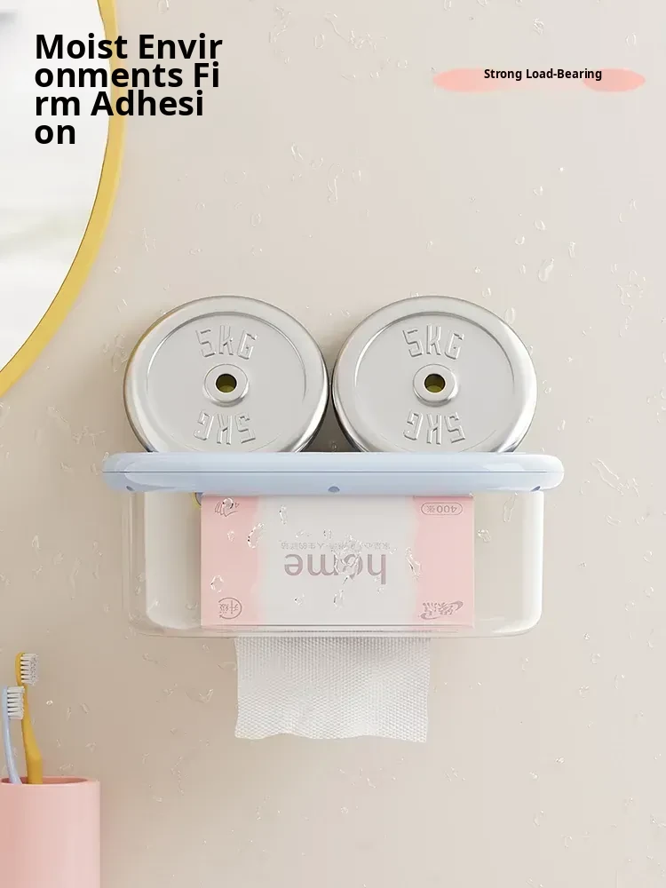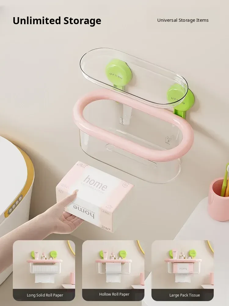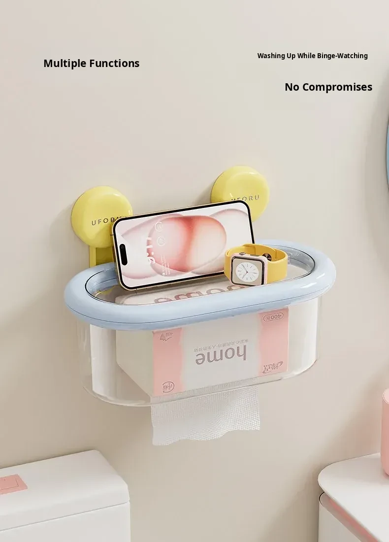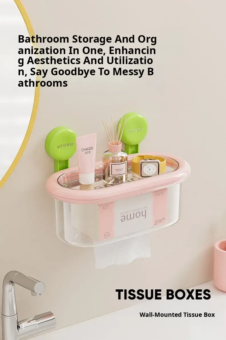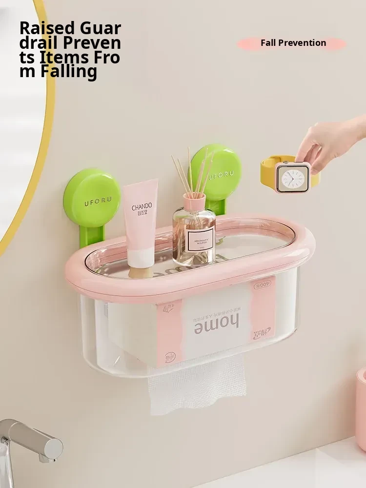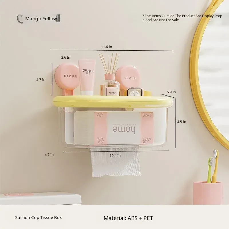 Wall-Mounted Suction Cup Tissue Box - Waterproof, No Drill Toilet Paper Holder for Bathroom - Stylish Dopamine-Inspired Roll and Tissue Dispenser