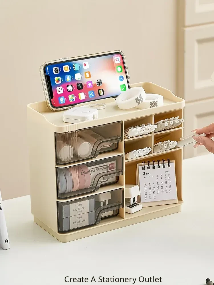 Multi-Layer Desktop Organizer with Drawers - Stylish Storage Box for Office Supplies and Cosmetics - Perfect for Desk Organization and Clutter-Free Spaces
