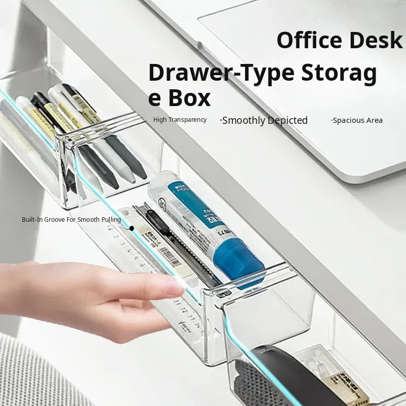 Under-Desk Invisible Drawer Organizer - Wall-Mounted Storage Box for Office Workstation, Your Ultimate Desktop Storage Solution!