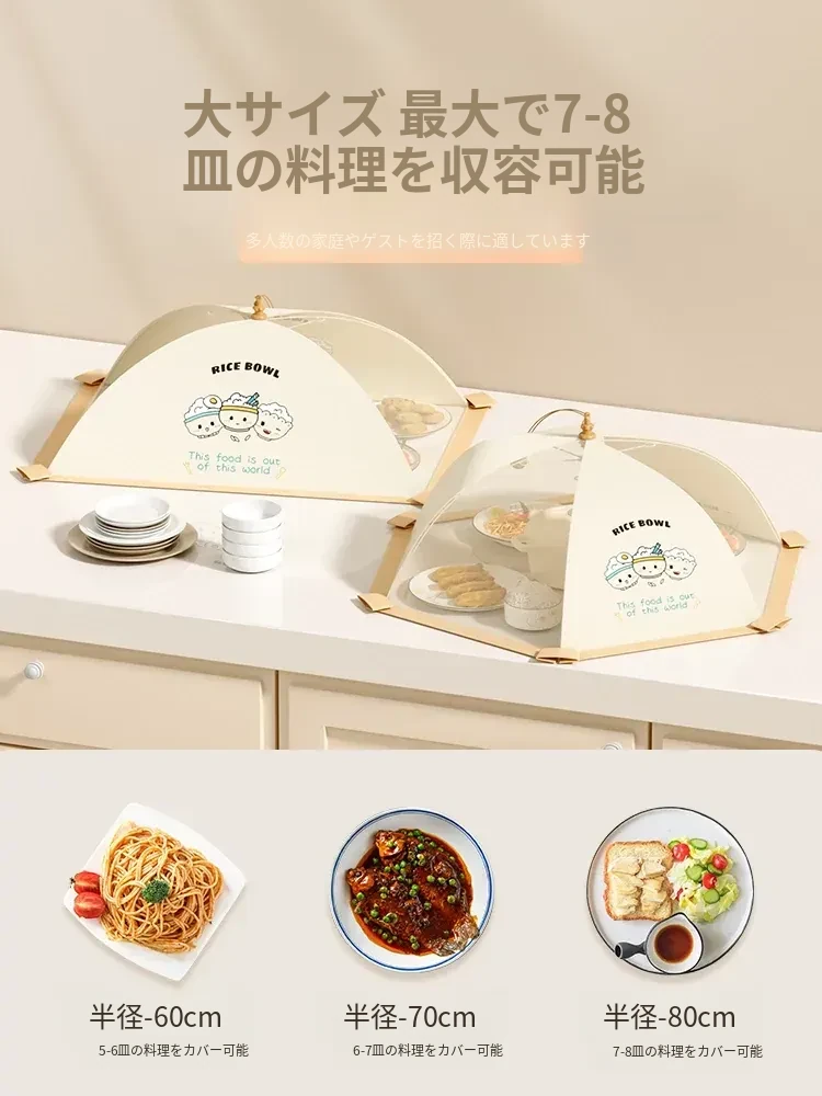 2025年最新モデル!折りたたみ式家庭用テーブルカバー - 虫やホコリから守る、残り物も安心の食材カバー!快適な食卓を演出する必需品!