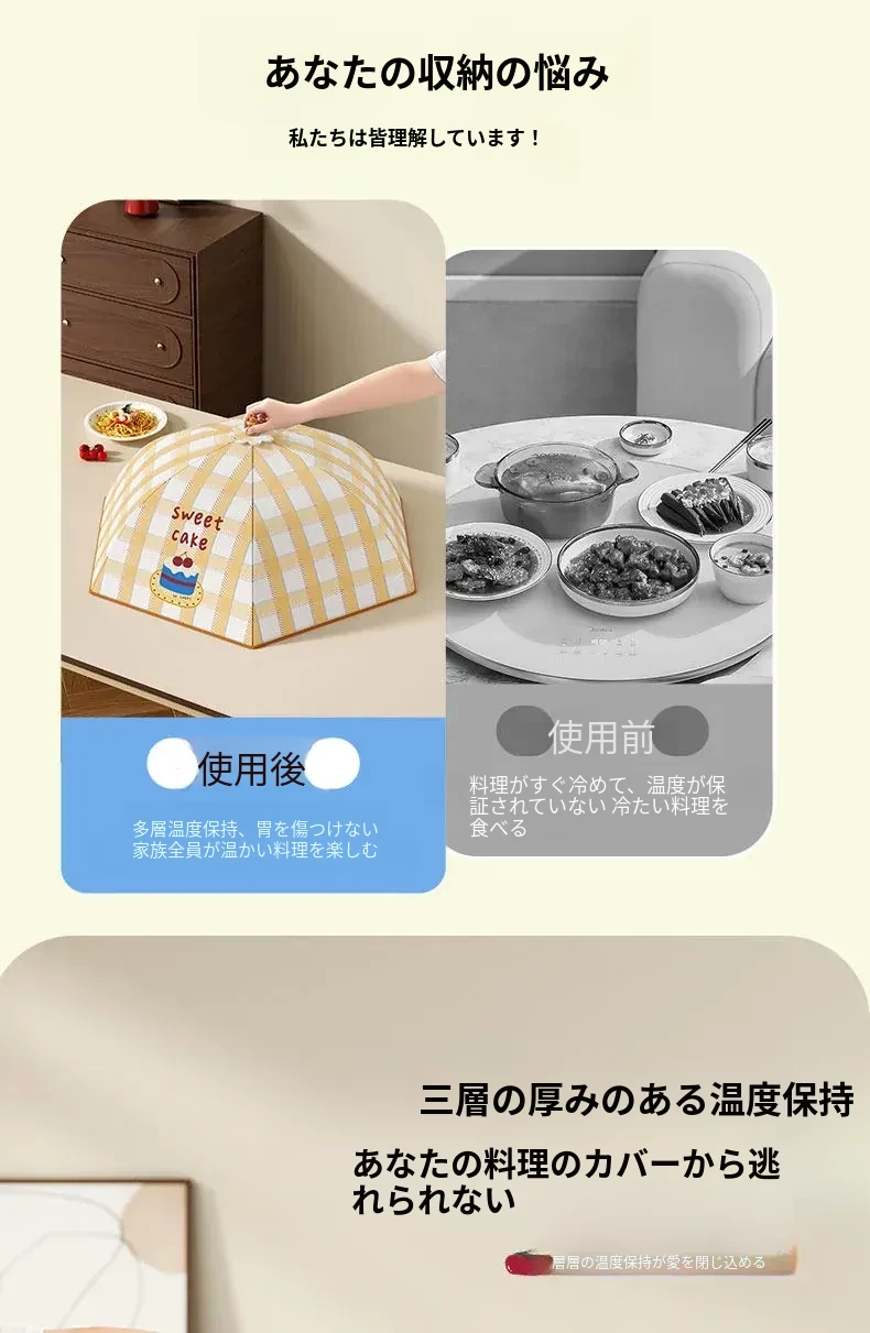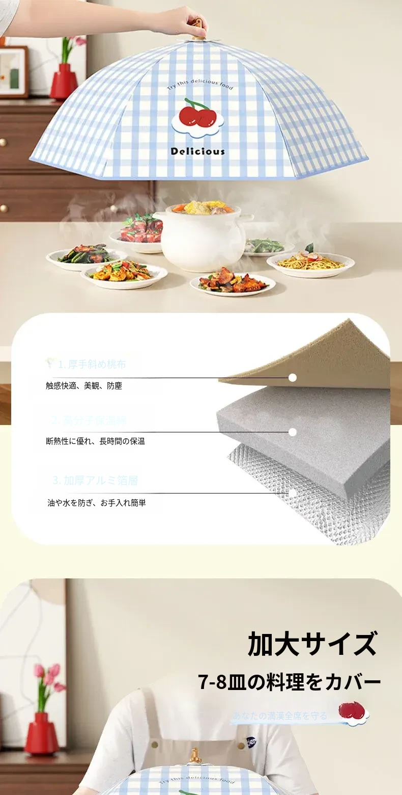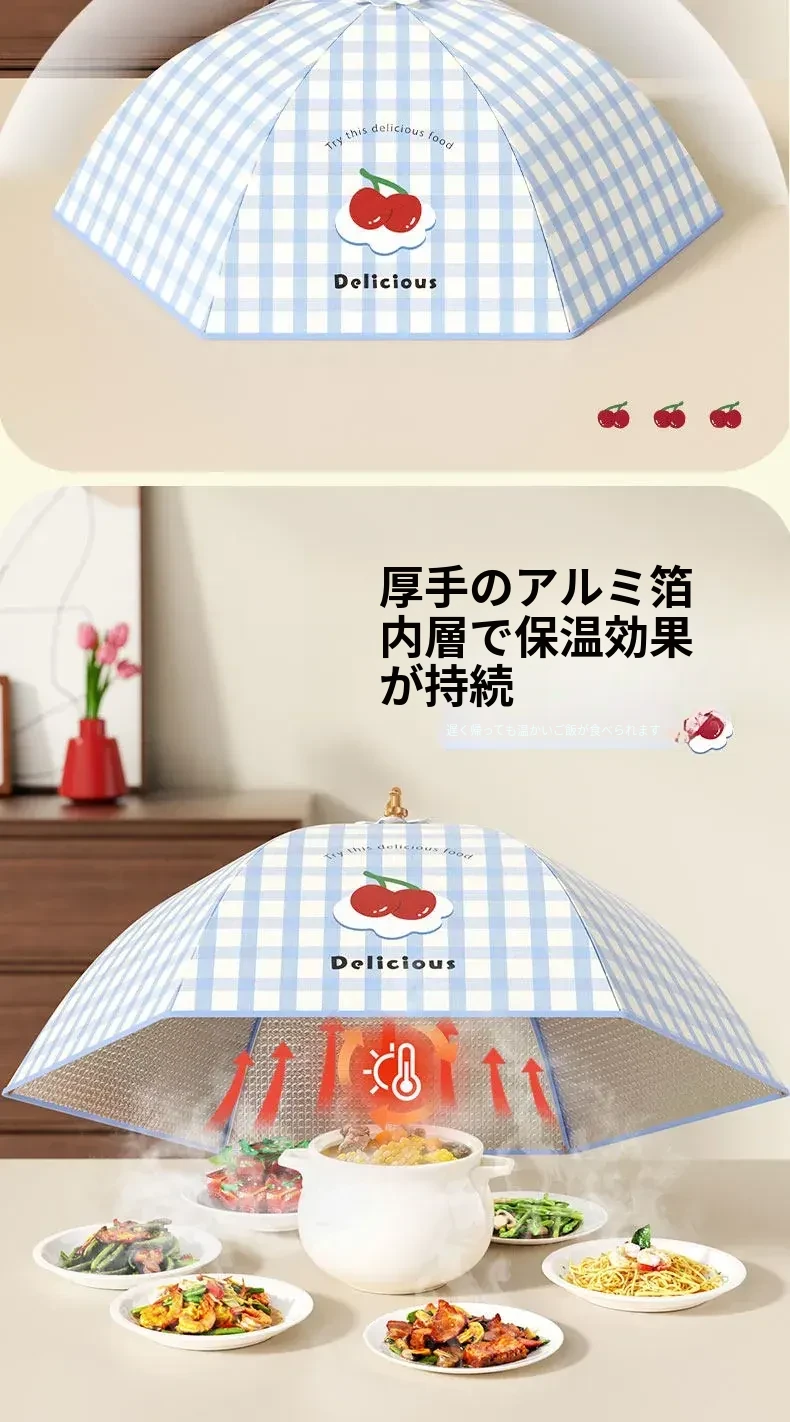 2025年新作!折りたたみ式保温料理カバー - 家庭用テーブルカバー、残り物を守る防塵カバー!おいしさをキープし、ホコリから守ります。