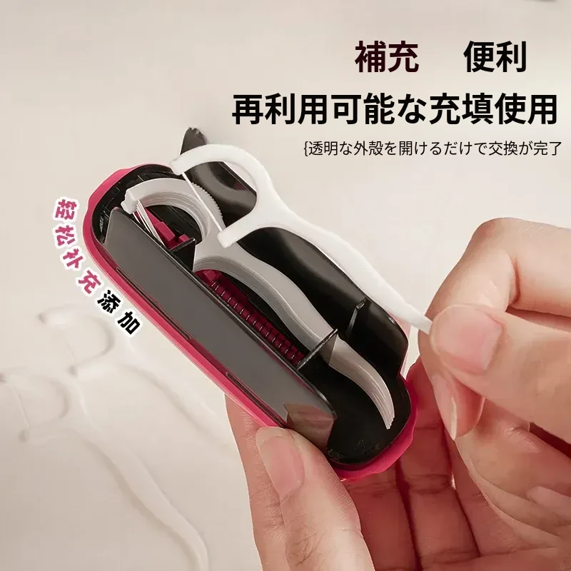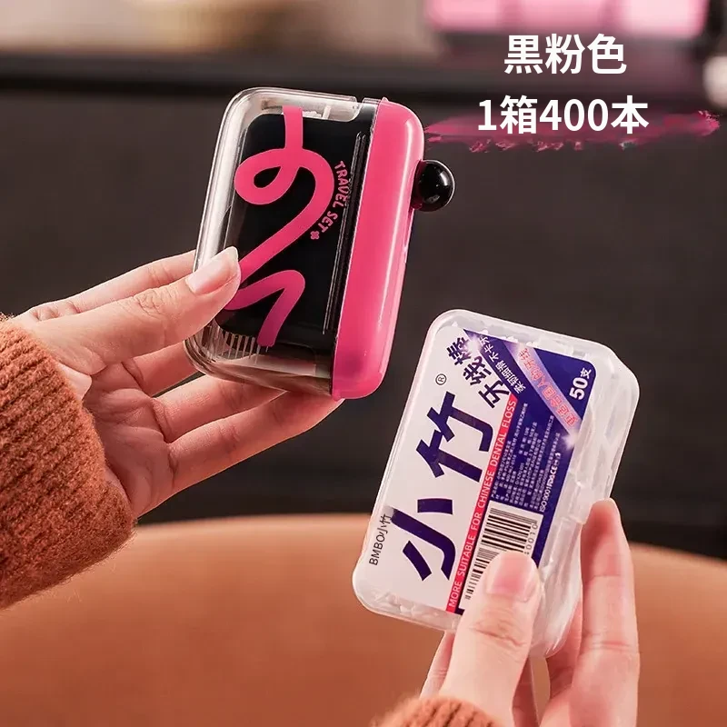 黒ピンク+【400本セットフロスプレゼント】携帯式プッシュフロス