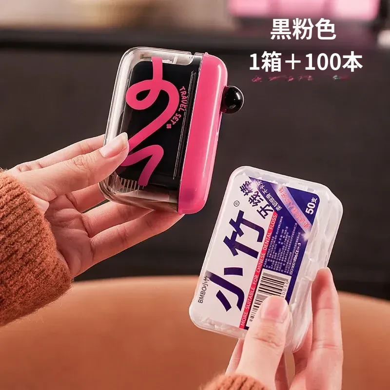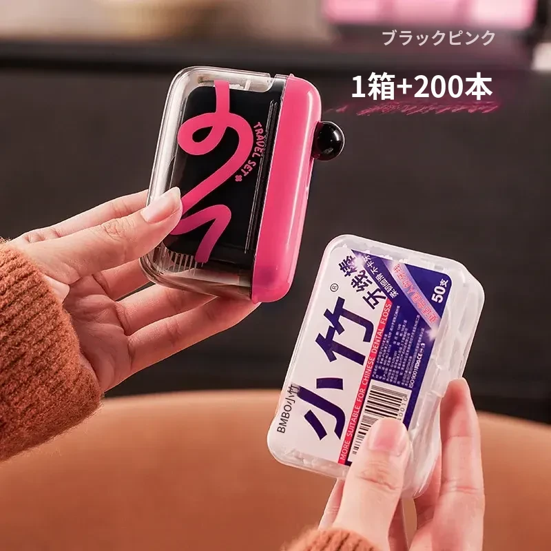 黒ピンク+【200本セットフロスプレゼント】携帯式プッシュフロス