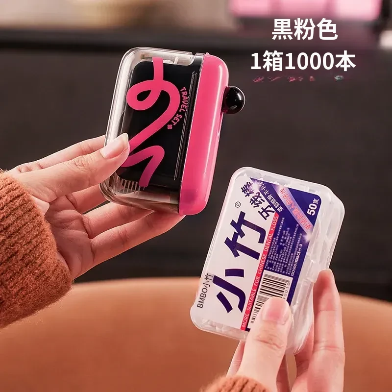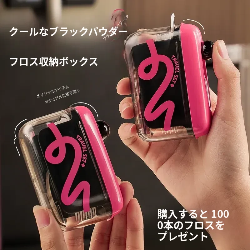 黒ピンク+【1000本セットフロスプレゼント】携帯式プッシュフロス