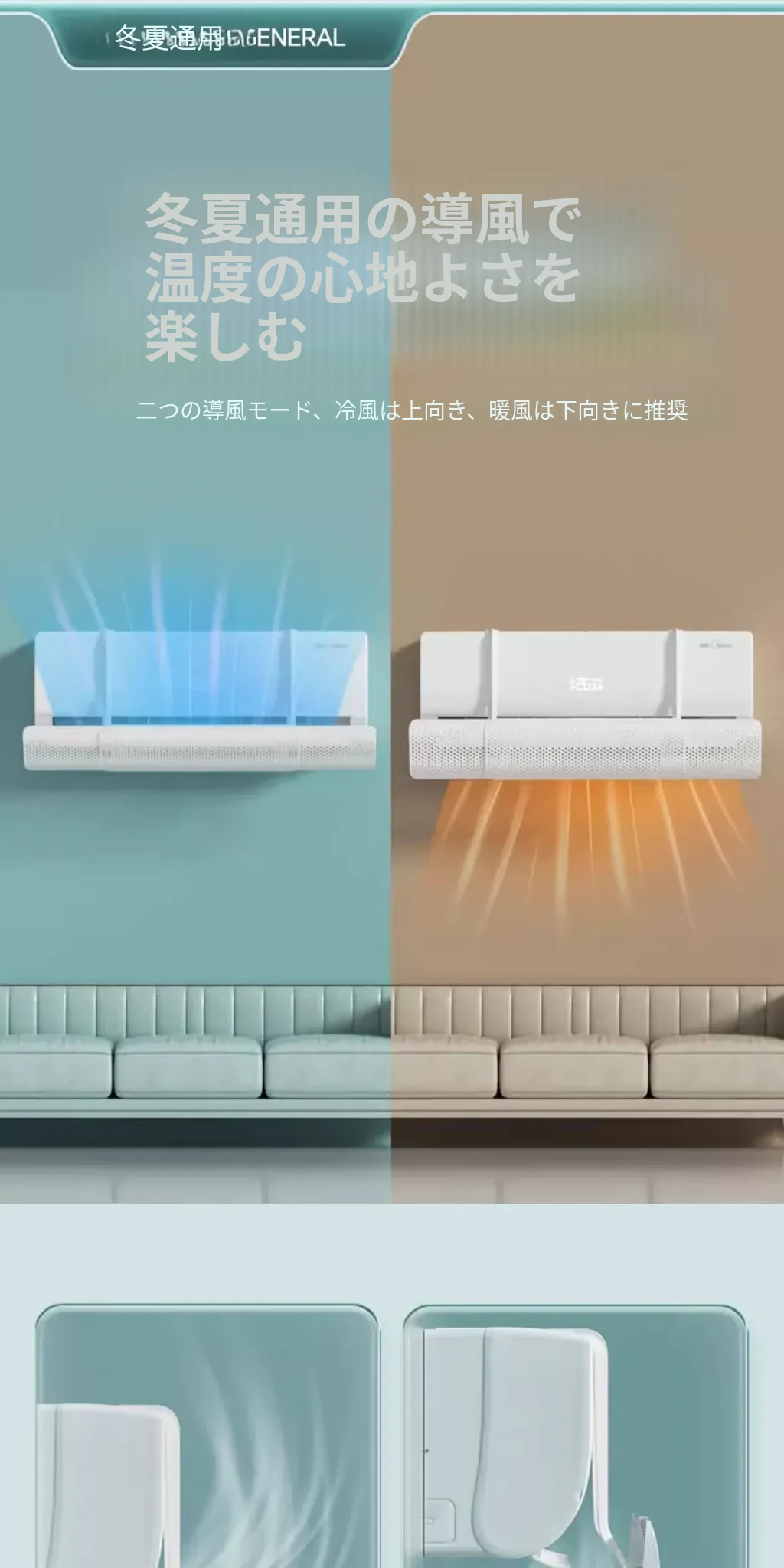 グリーエアコン用風よけ板 直風防止 壁掛け式 調整可能 通用冷気導風カバー - 快適な冷気を実現し、夏の暑さをしっかりブロック!