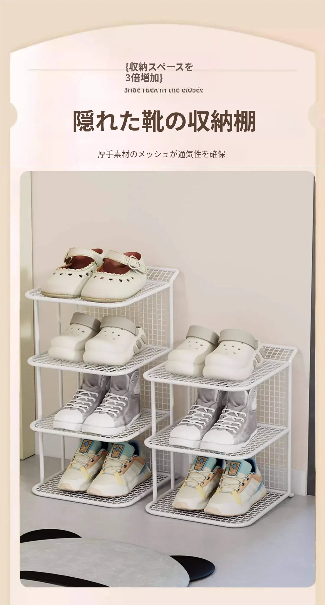子供用の多層シューズラック - スペース節約の収納マジック!スリッパや靴をスッキリ整理できる家庭用収納棚。可愛いデザインでお部屋もおしゃれに!