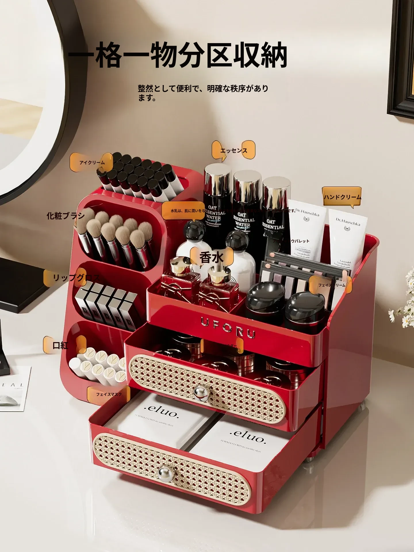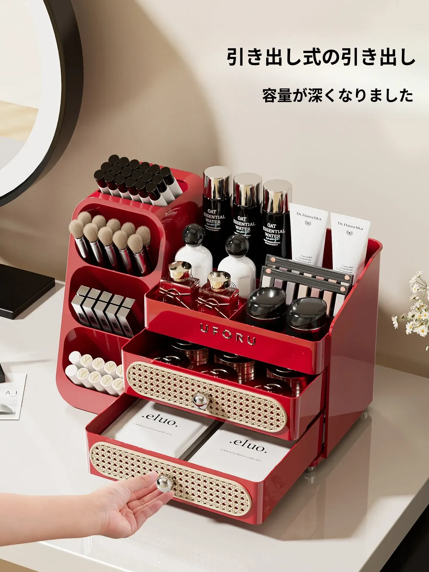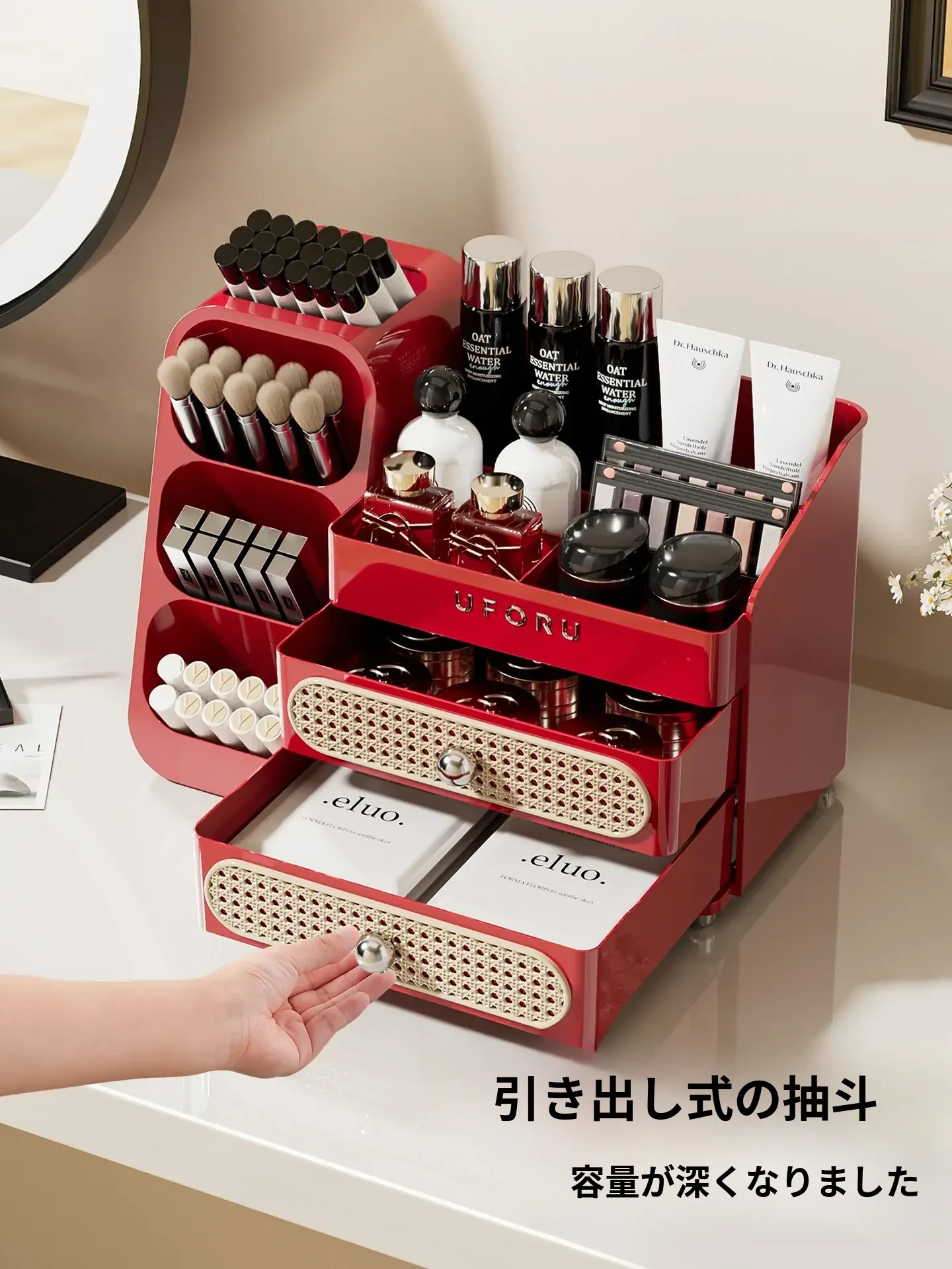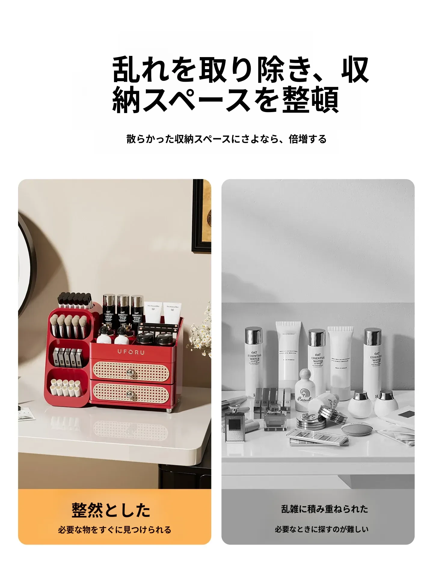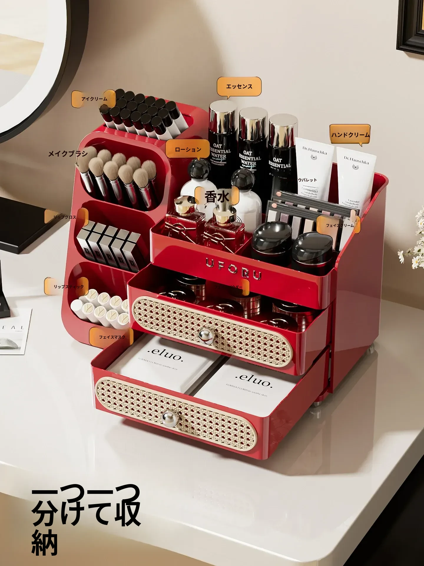 メイクアップ収納ボックス - リップやジュエリーのための引き出し式収納、スキンケア製品やブラシ用の便利な収納バケツ、ドレッサーのためのスタイリッシュなオーガナイザー!あなたの美を引き立てる理想的なアイテムです!
