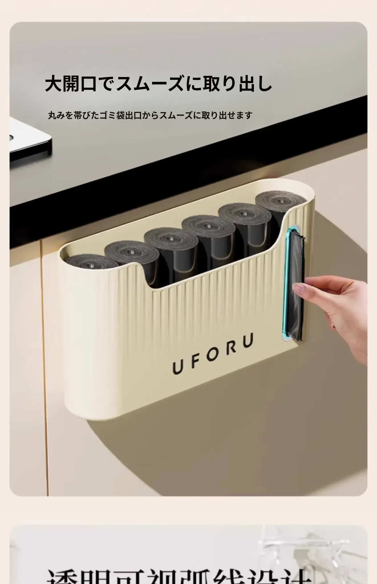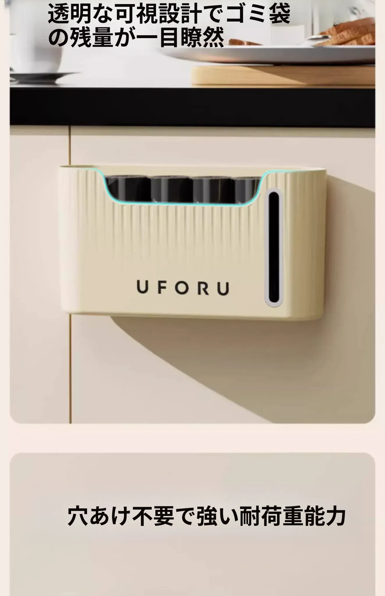 クリーム風キッチンゴミ袋収納神器 壁掛け式・穴あけ不要の大容量プラスチック袋抽出式収納ボックス!キッチンをスッキリ整理整頓し、使いやすさ抜群!おしゃれなデザインで毎日の料理をもっと楽しく!