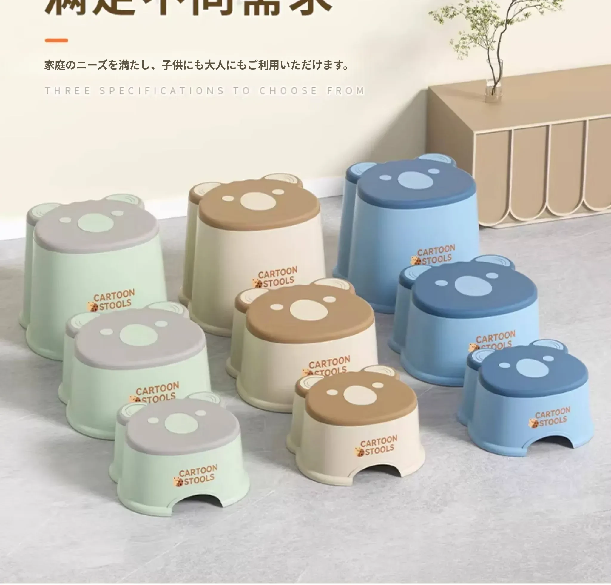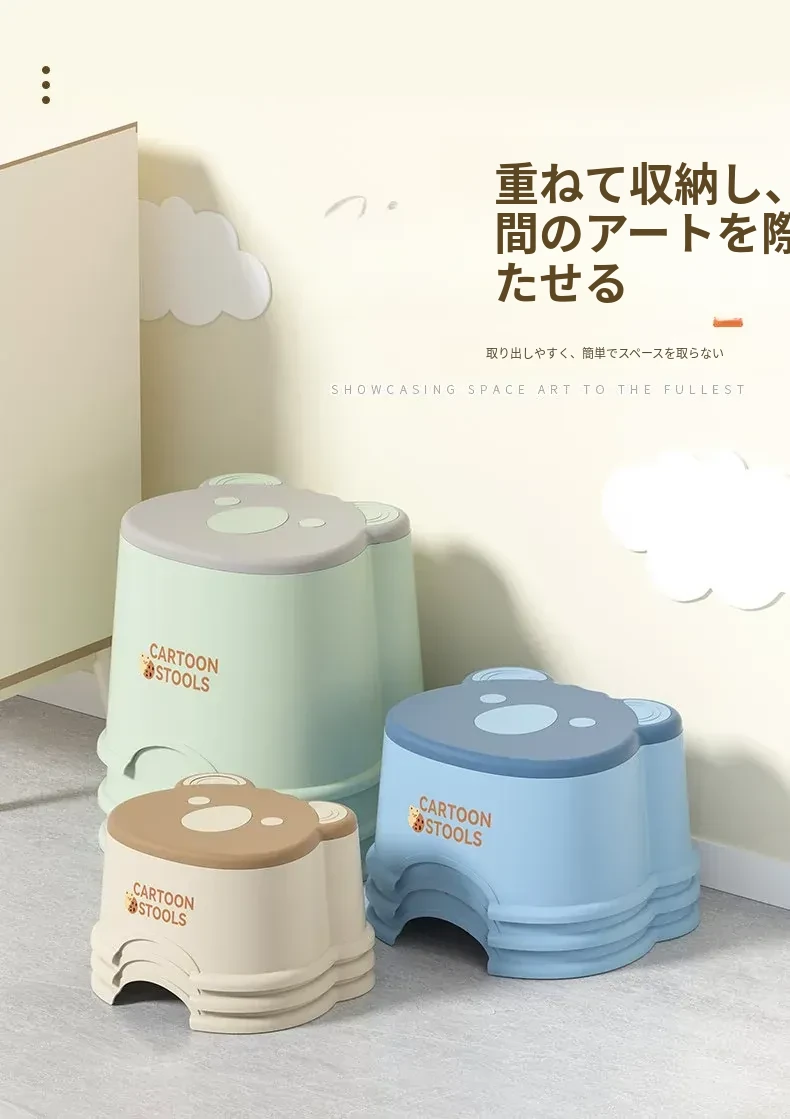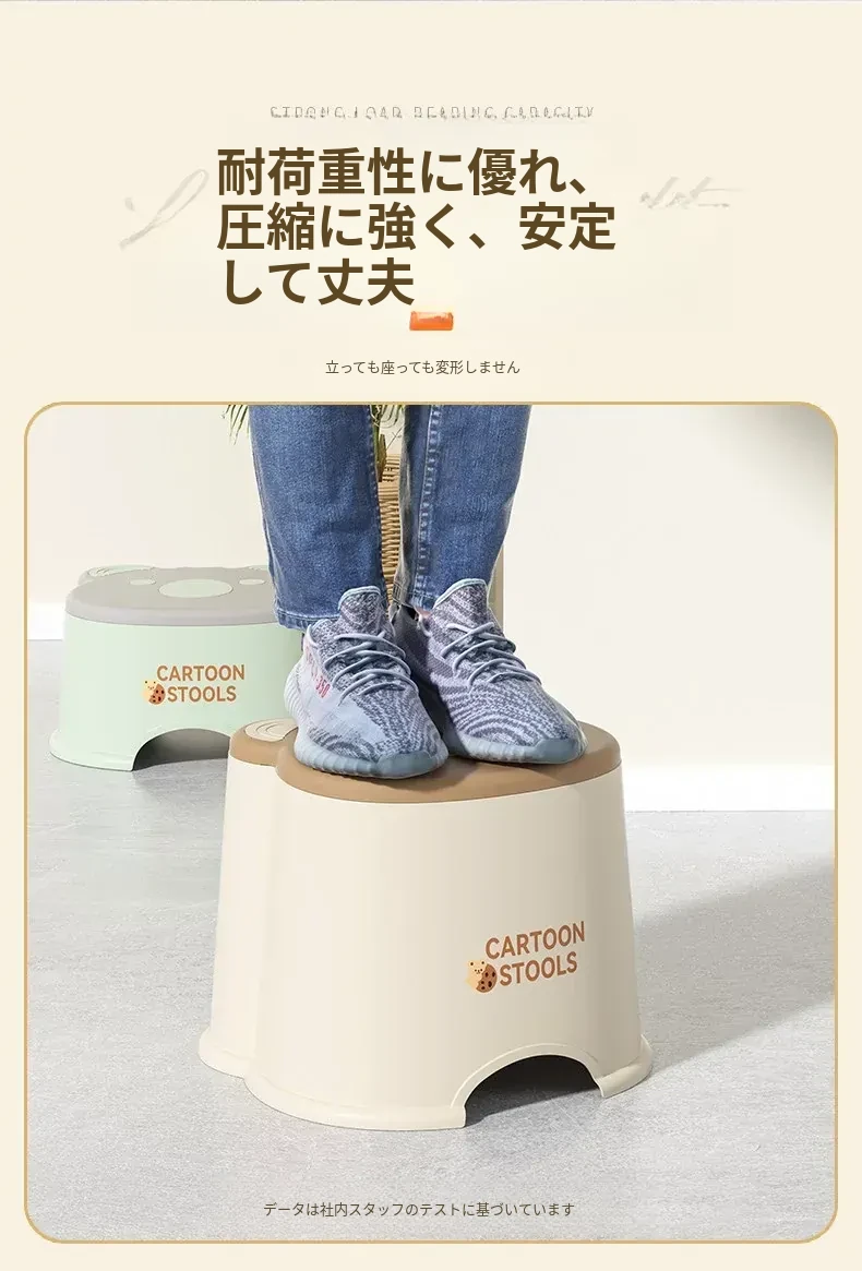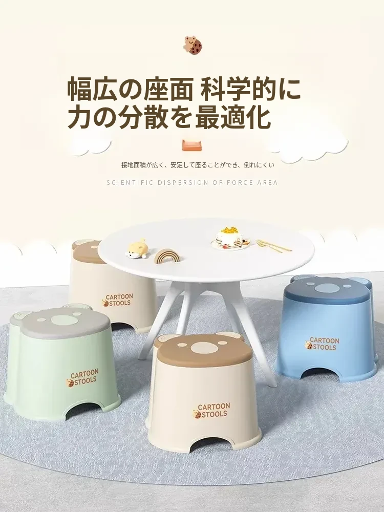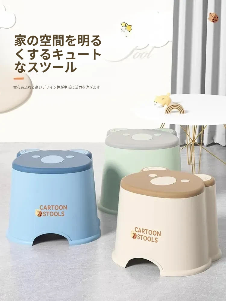 かわいいアニマルデザインのカートンミニスツール - 子供から大人まで使える厚手プラスチック製、家庭用リビングやバスルームに最適な丈夫な小さなスツール。