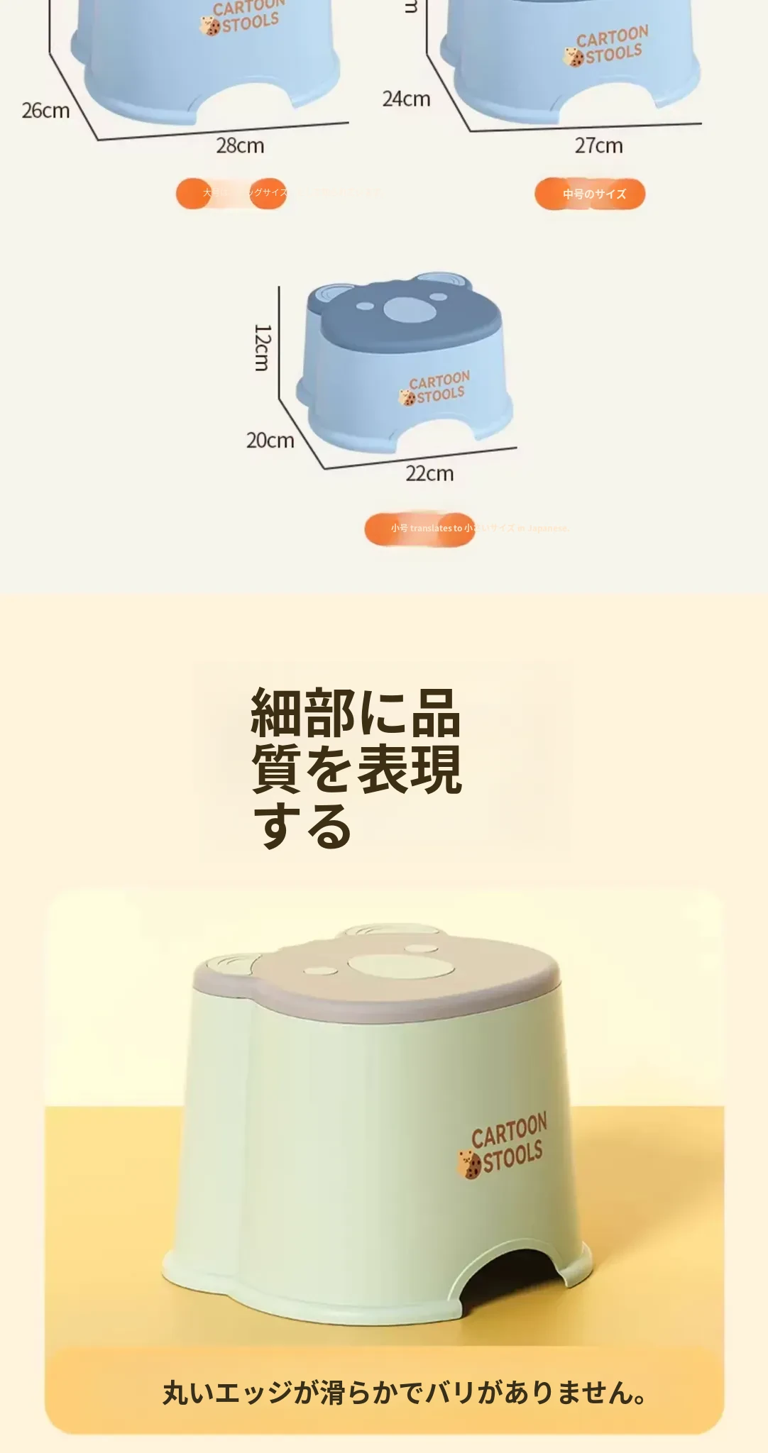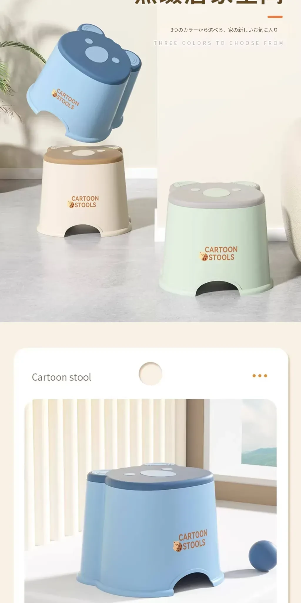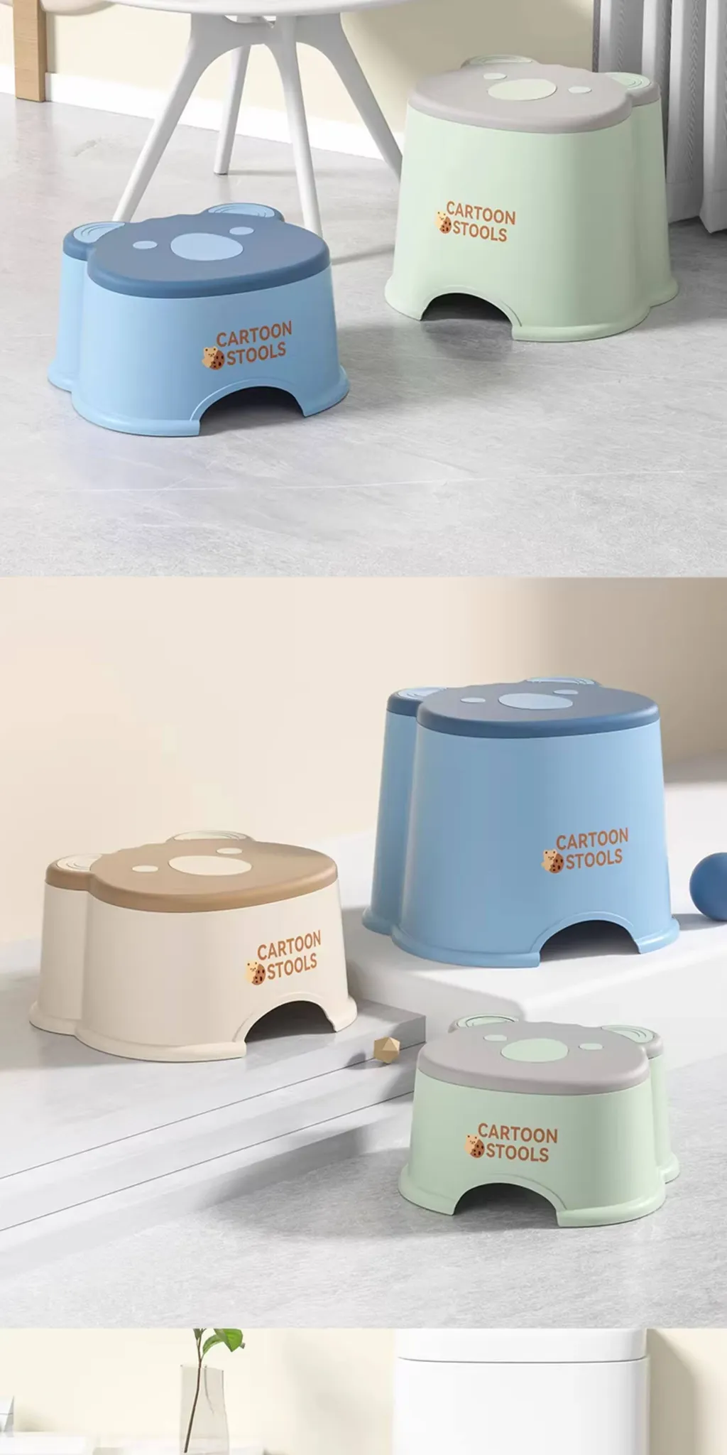 かわいいアニマルデザインのカートンミニスツール - 子供から大人まで使える厚手プラスチック製、家庭用リビングやバスルームに最適な丈夫な小さなスツール。