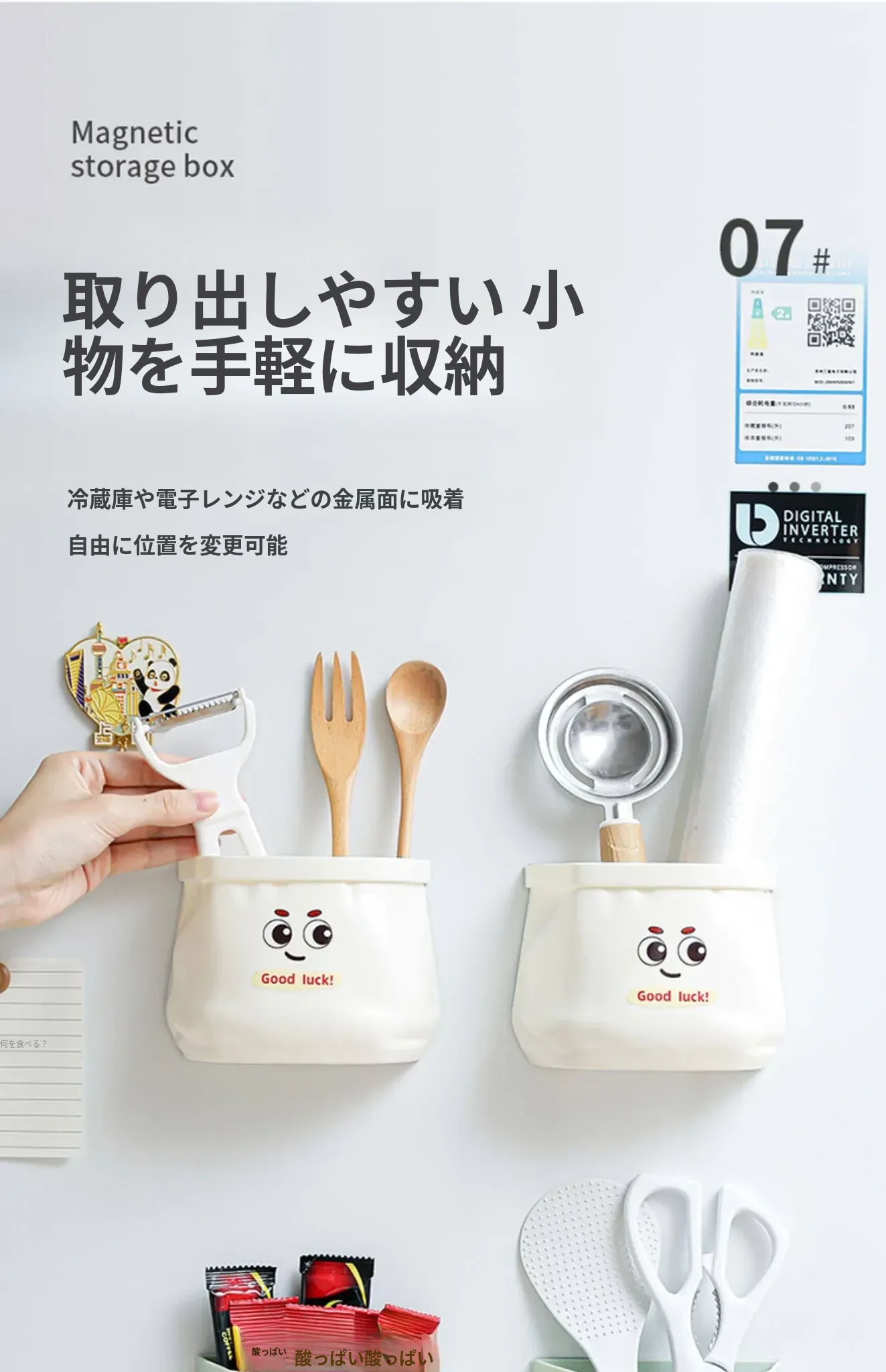 可愛い冷蔵庫用マグネット収納ボックス!キッチンのラップをスマートに整理、ドアに掛けるだけでスペースを有効活用。おしゃれな壁掛けサイドラックで、寮生活もスッキリ!