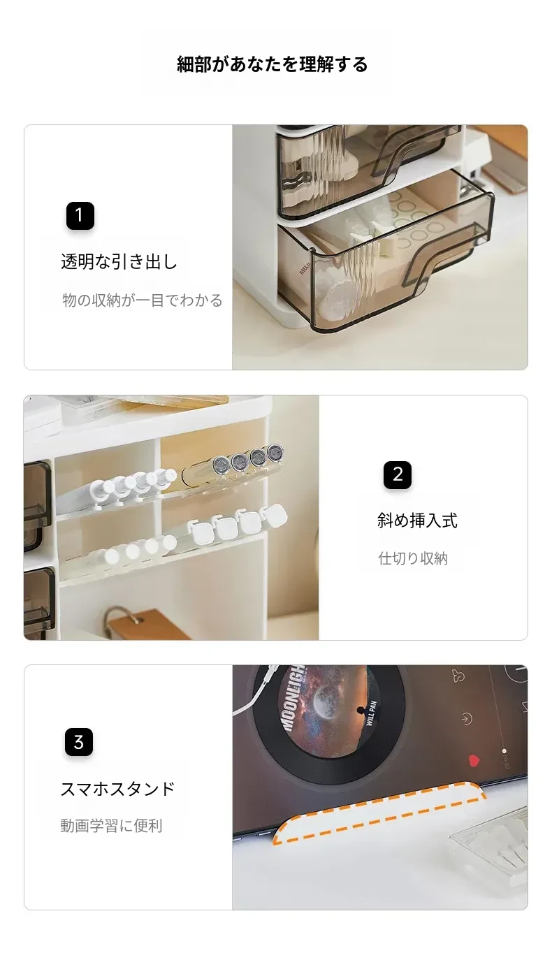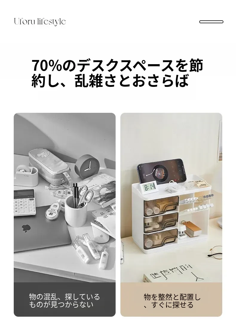 デスク収納ボックス 文房具・化粧品用 引き出し仕切り 整理整頓 デスク上の必需品 オフィスワークを快適にする優れたアイテム!
