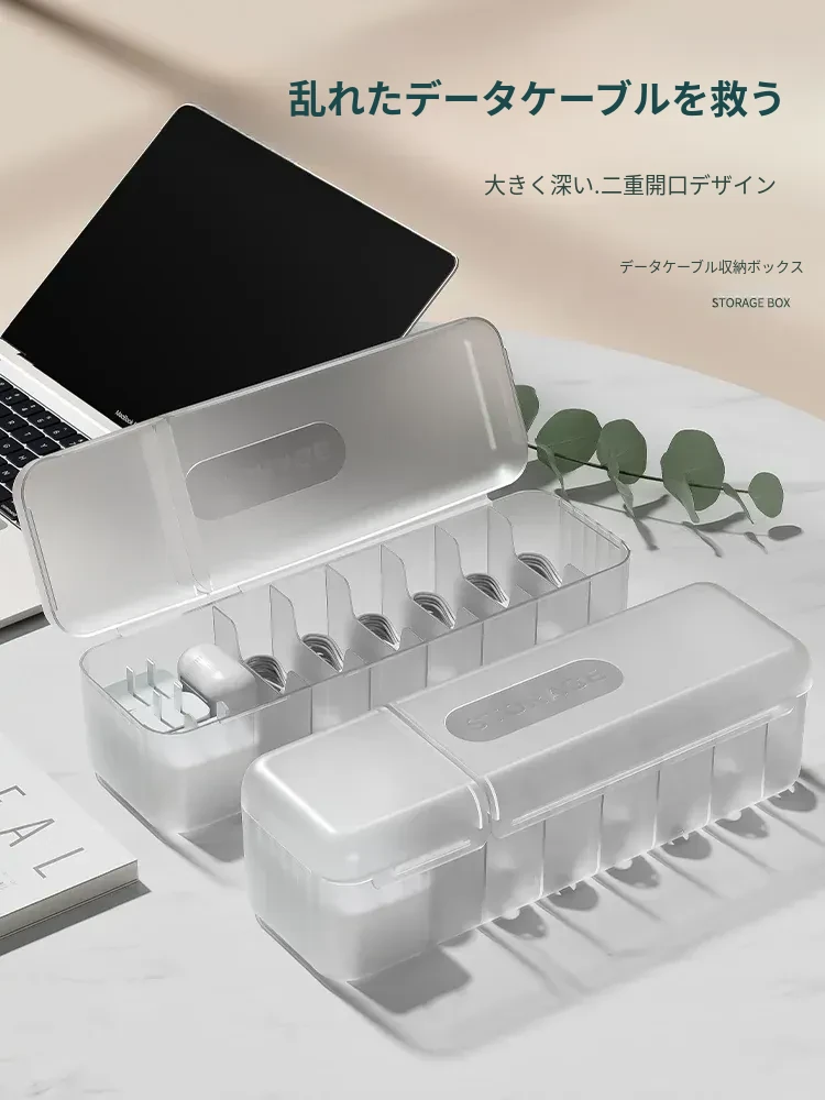 デスクトップ用ケーブル整理ボックス - 充電器・電線収納の必需品!おしゃれで実用的なコードリール付き、すっきりとしたデスク環境を実現します。データケーブルをスッキリ整理して、作業効率をUP!