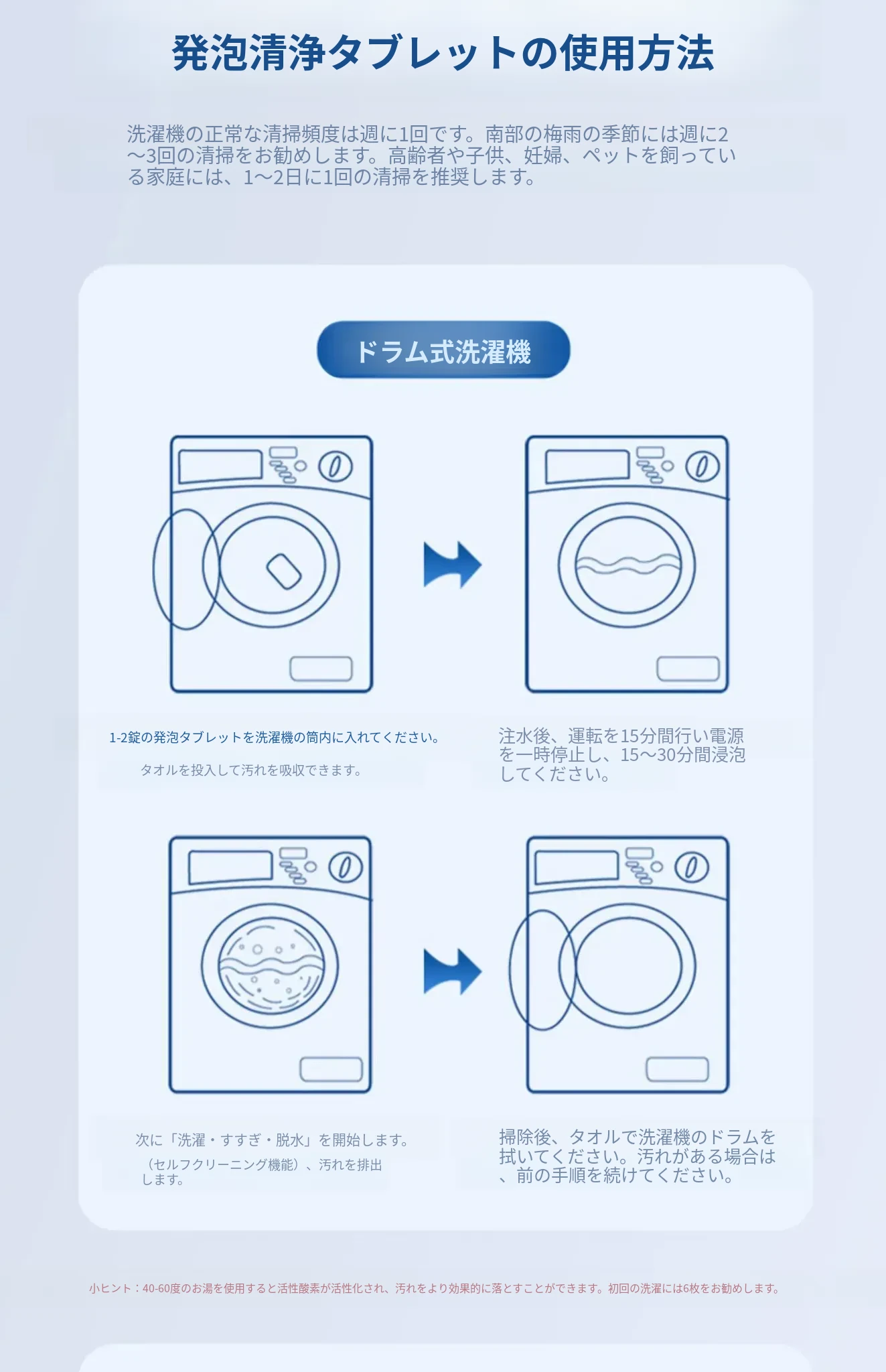 全自動洗濯機用槽クリーナー!泡泡発泡タブレットで簡単清掃!汚れも菌も一掃する魔法のクリーニングブロック!清潔な洗濯ライフを手に入れよう!