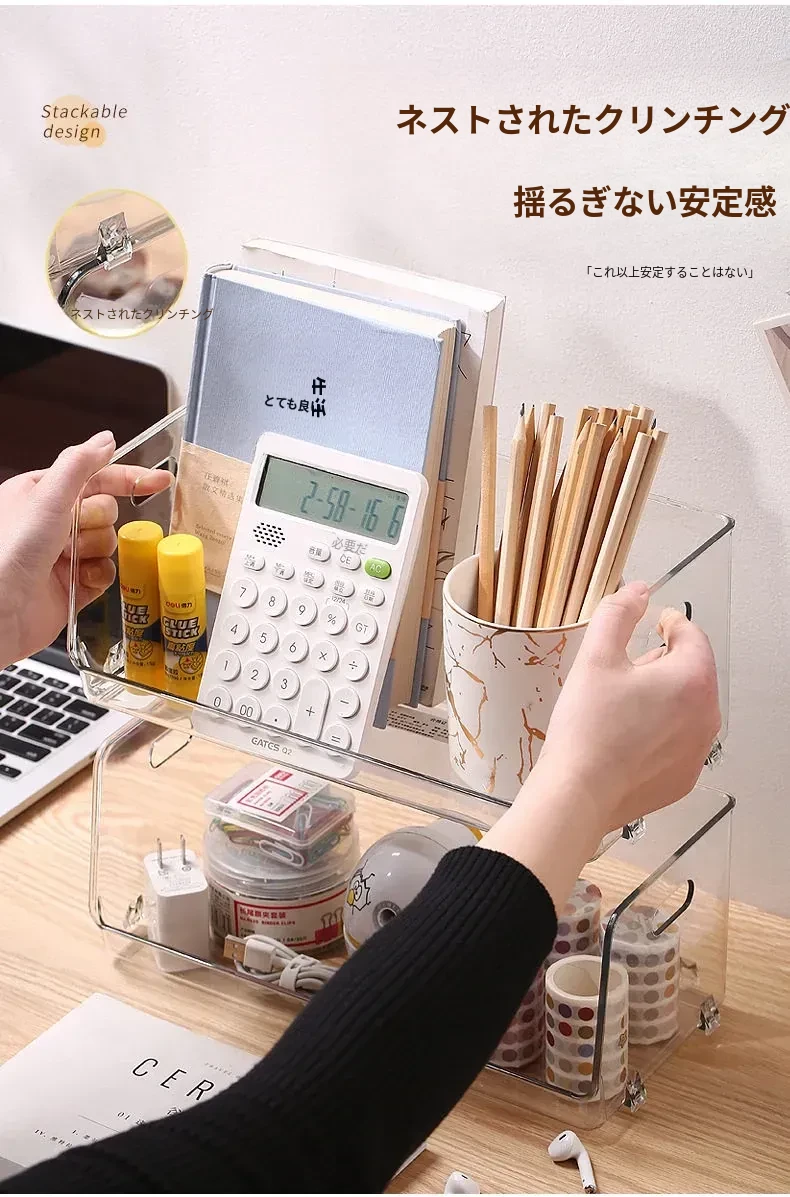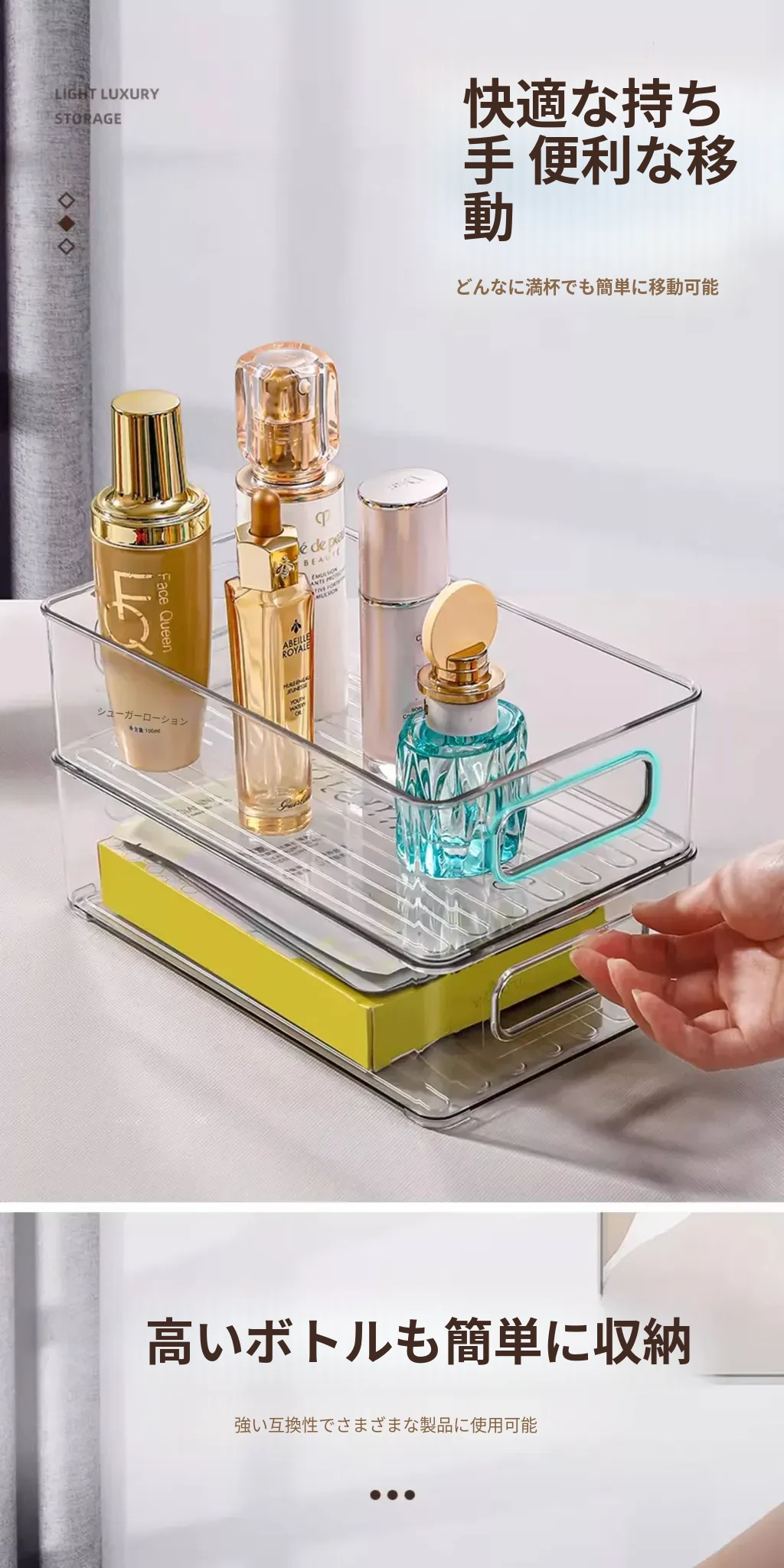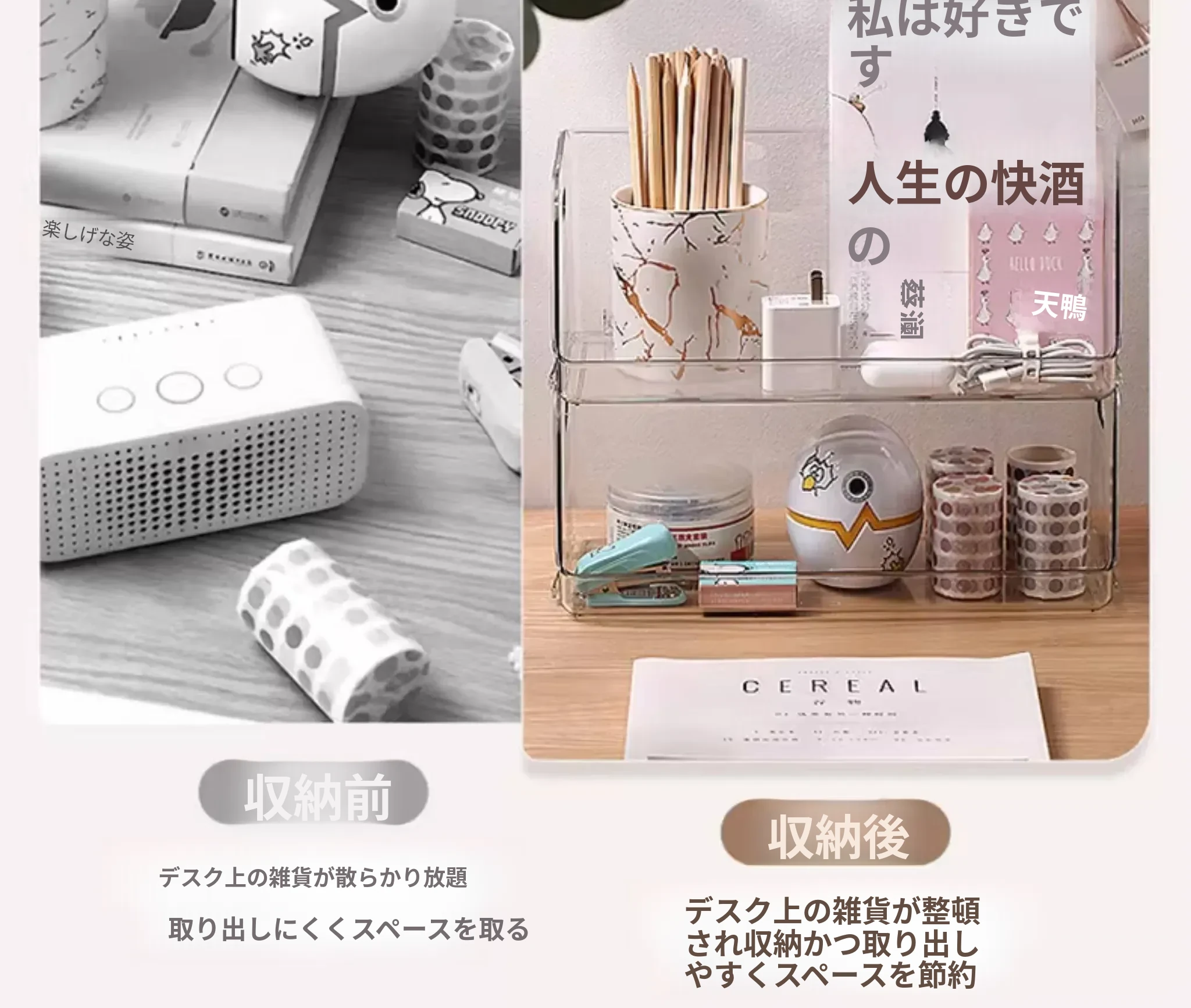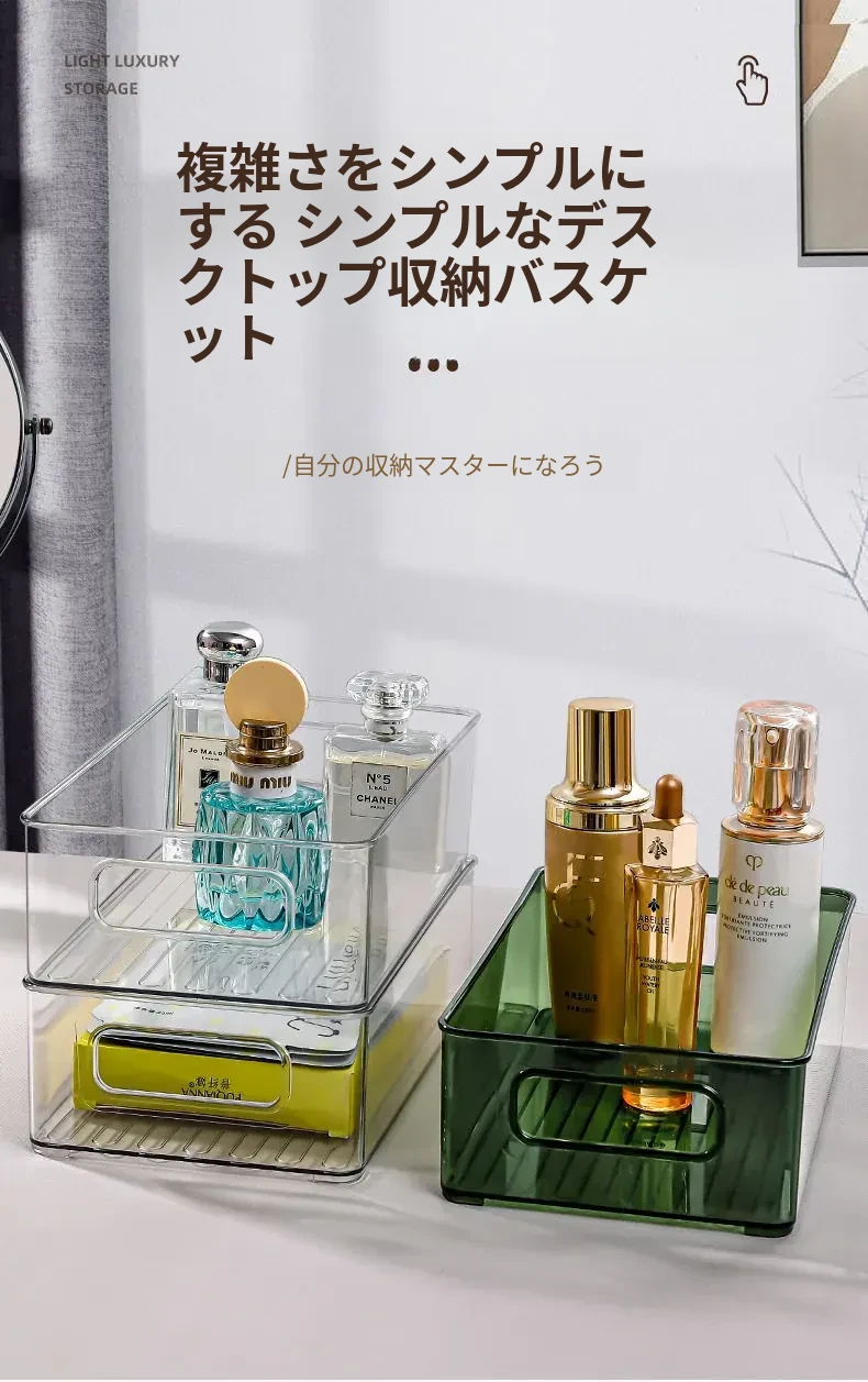 デスク用化粧品収納ボックス - 高級感溢れるアクリル製!メイク台やスキンケア商品、雑貨、おやつまでスッキリ整理。あなたのインテリアを引き立てるスタイリッシュな収納アイテムです!