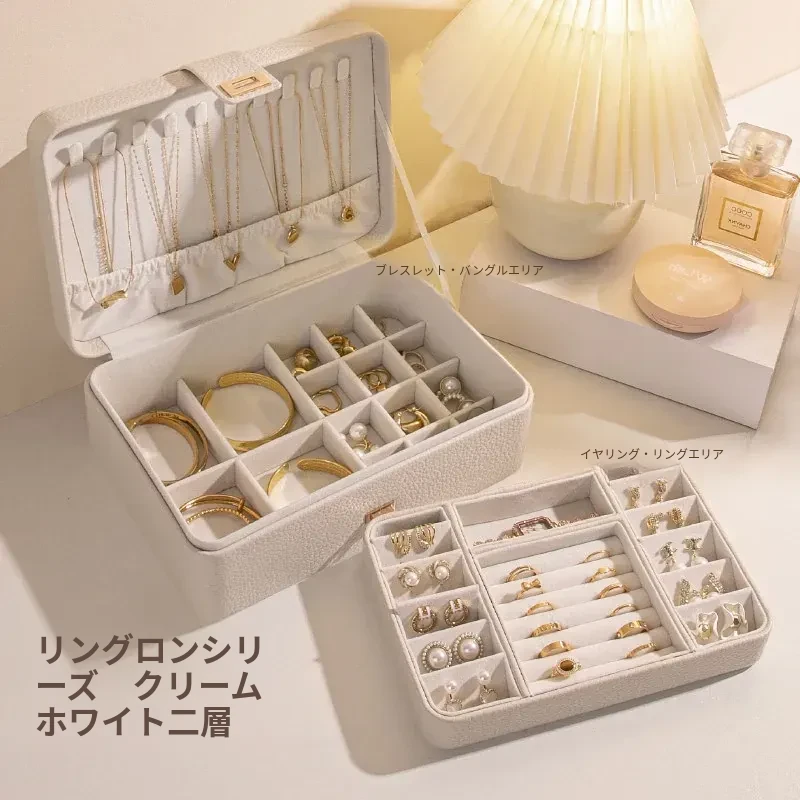 クリームホワイト【ダブルレイヤー宝石箱】防酸化/大容量/ベルベット内装