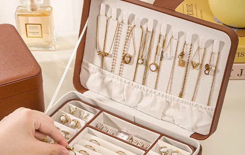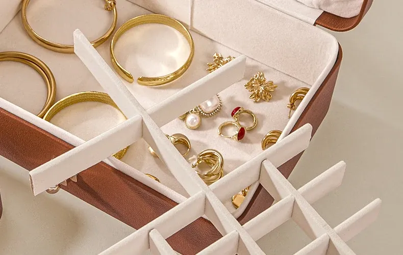 高級デザインのジュエリーボックス - イヤリング、ネックレス、リング、ピアスを美しく収納!大容量で、貴重なゴールドジュエリーを安全に保管。スタイリッシュなインテリアにもぴったり!