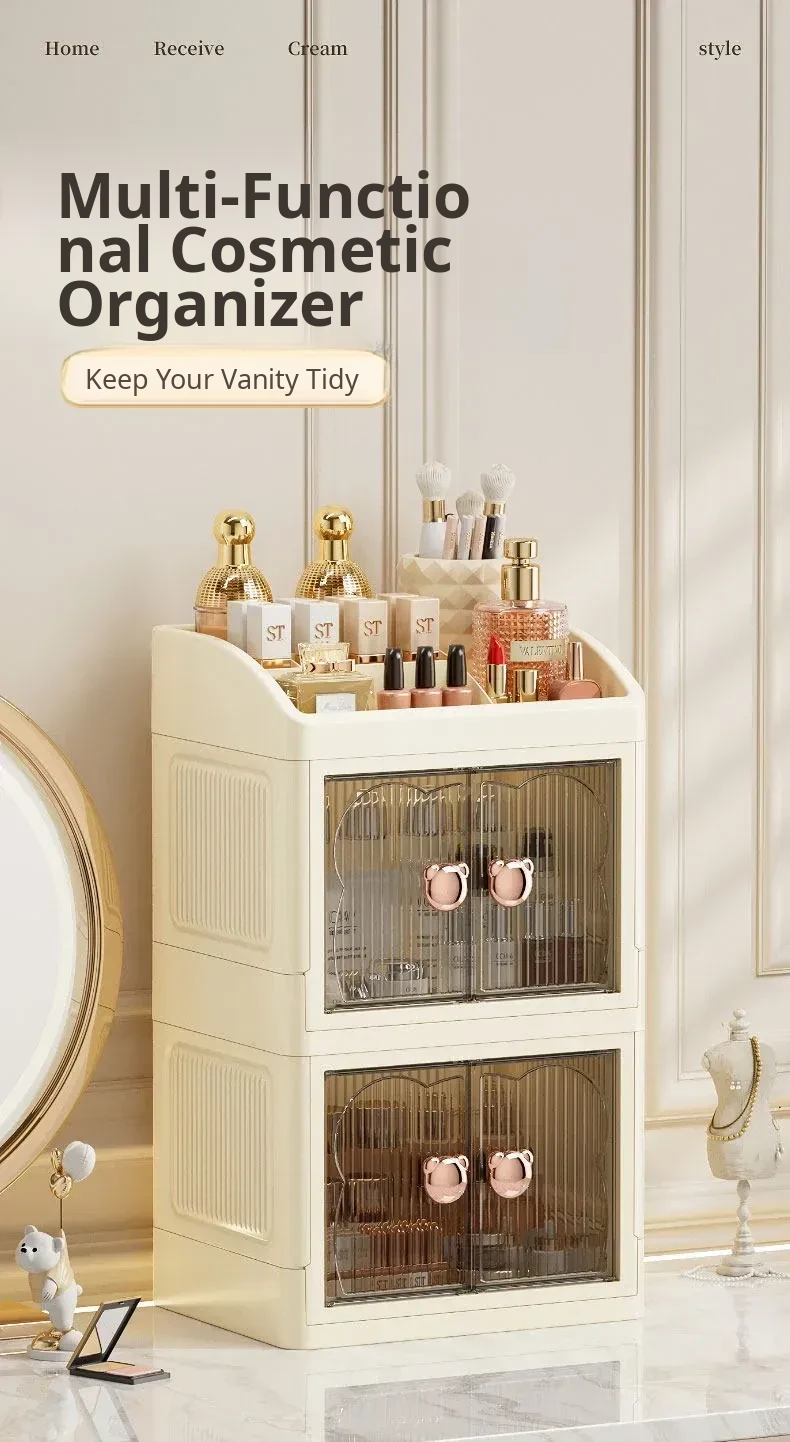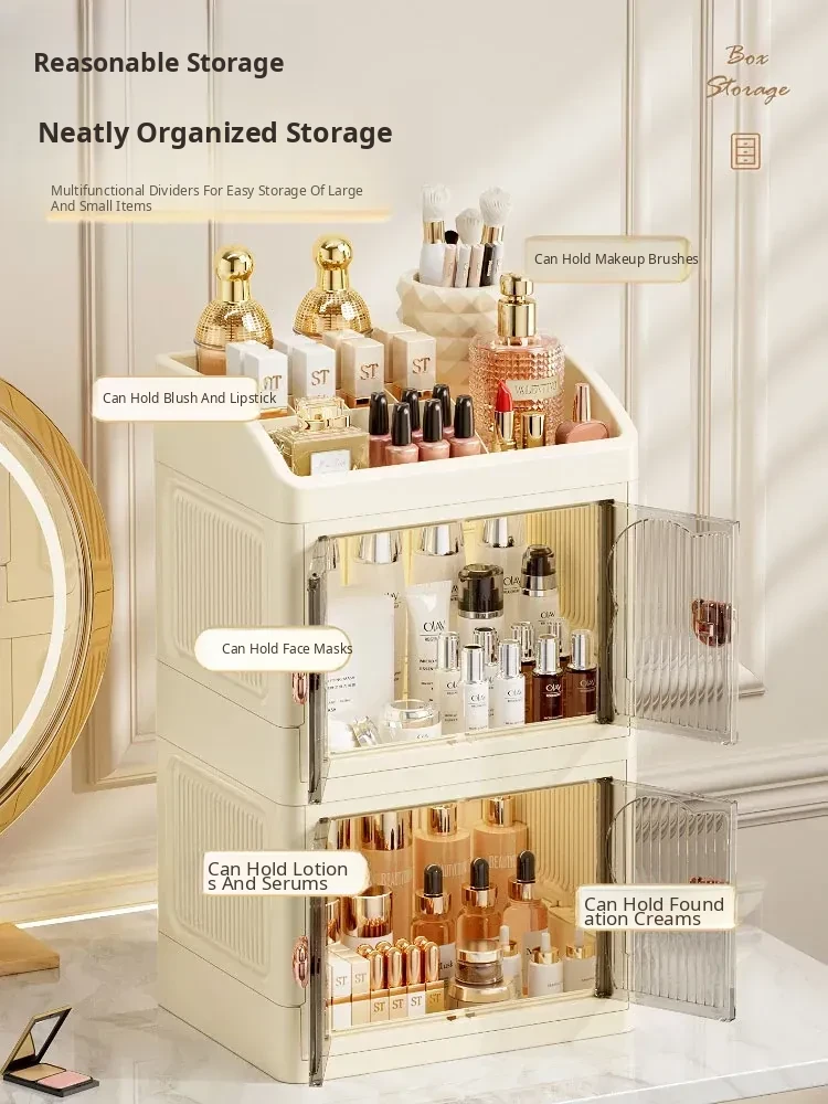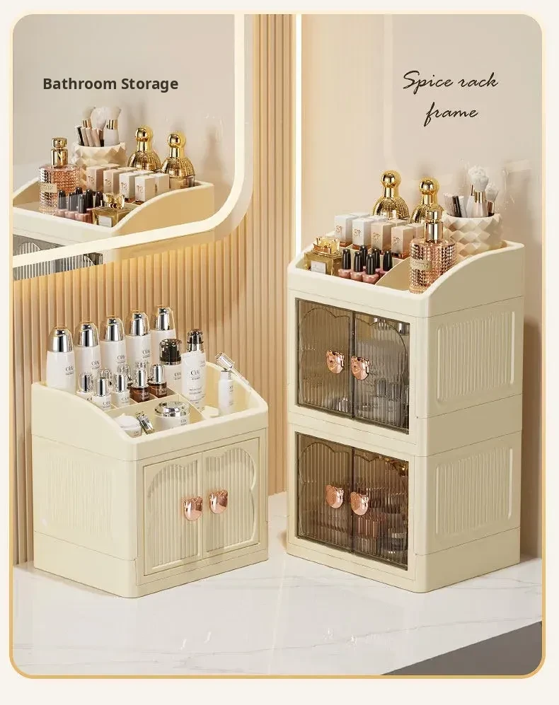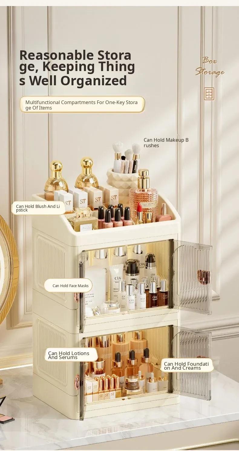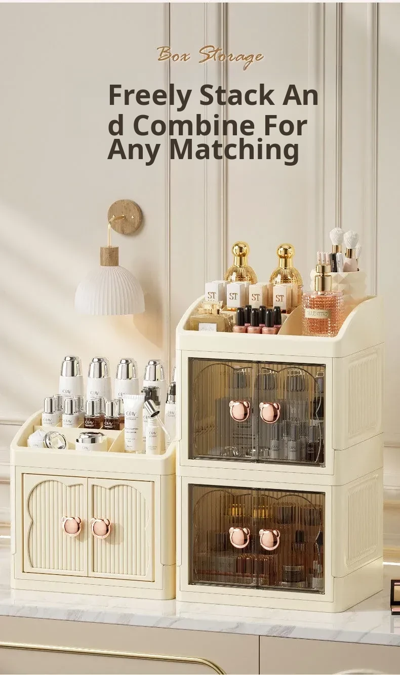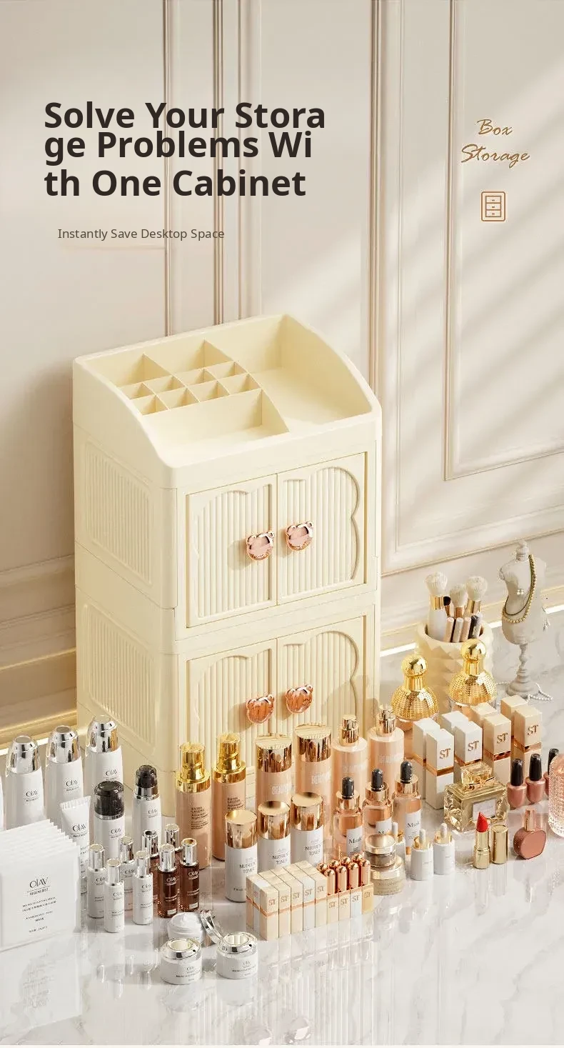 Elegant Makeup Organizer Box - Spacious Multi-Functional Cosmetic Storage for Your Vanity, Perfect for Keeping Your Beauty Essentials Neat and Accessible.