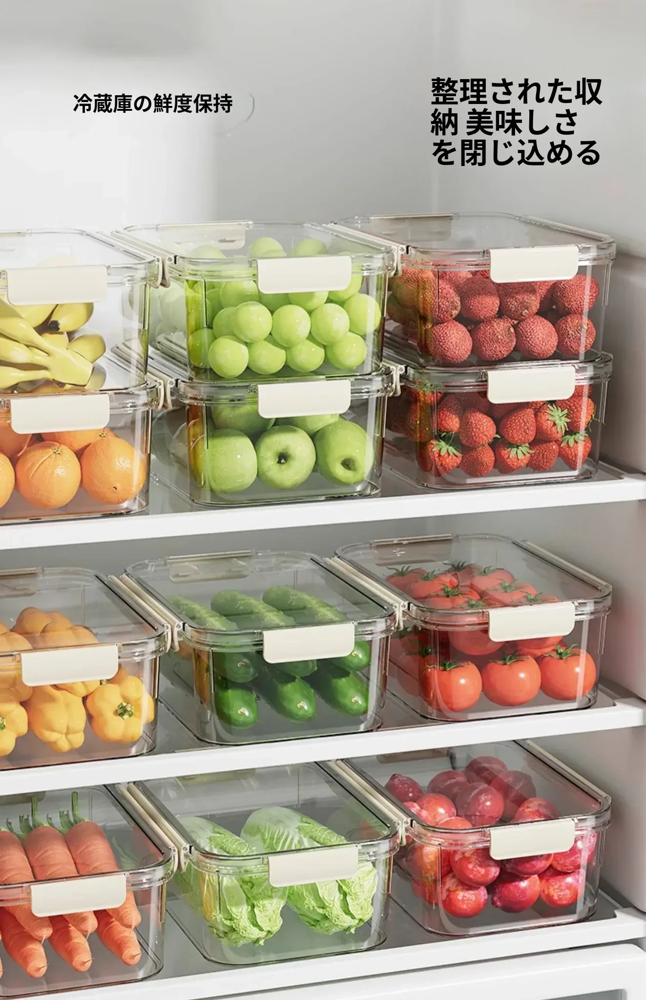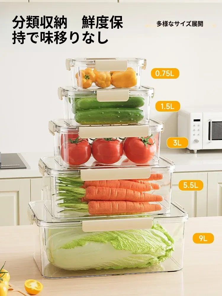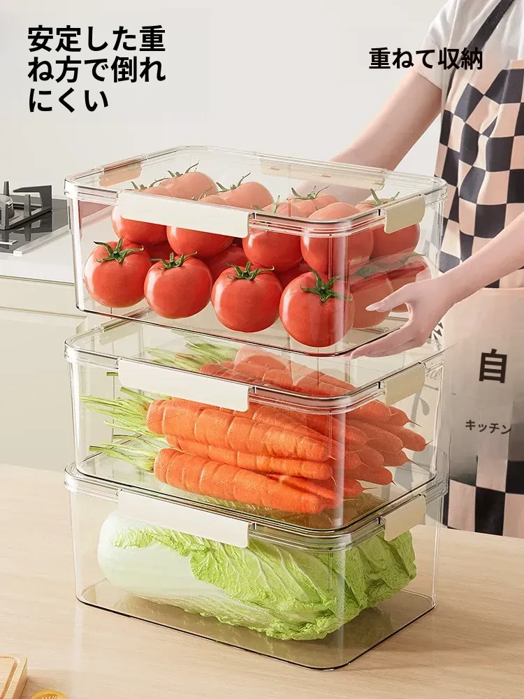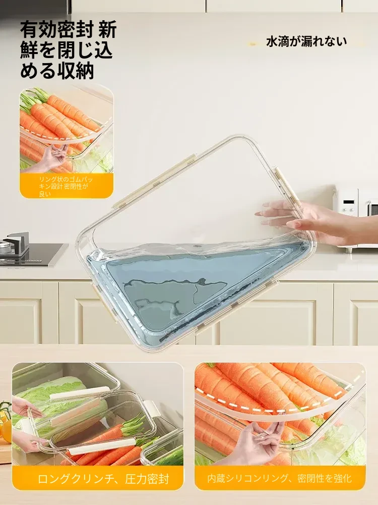 食品グレードの大容量冷蔵庫専用保鮮ボックス - 冷凍・冷蔵対応、密封設計で新鮮さをキープ!漬物や果物の整理に最適。あなたのキッチンをスッキリ整頓!