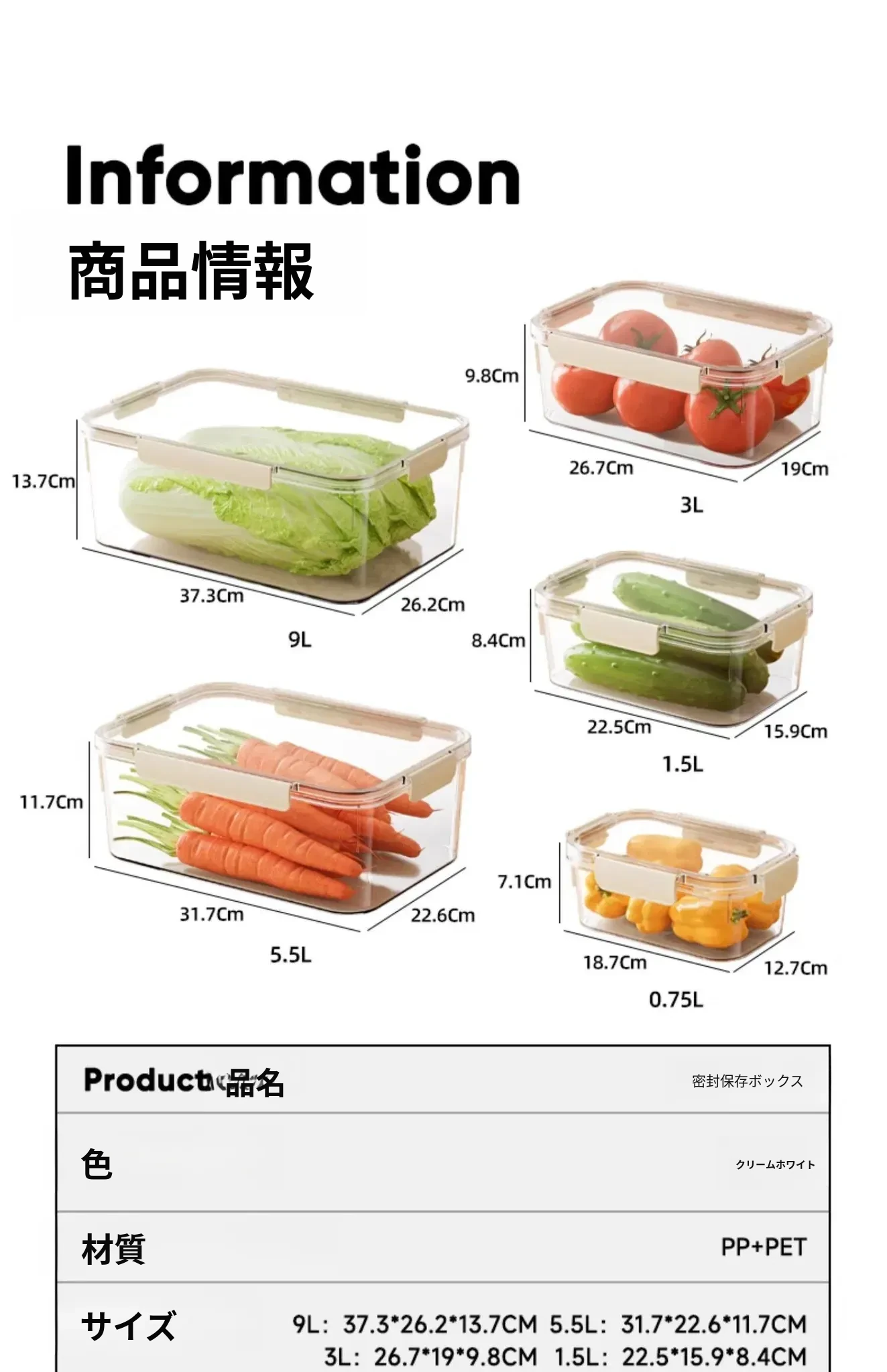 クリームホワイト/特大サイズ9000ML【密封保存/食品グレード素材】