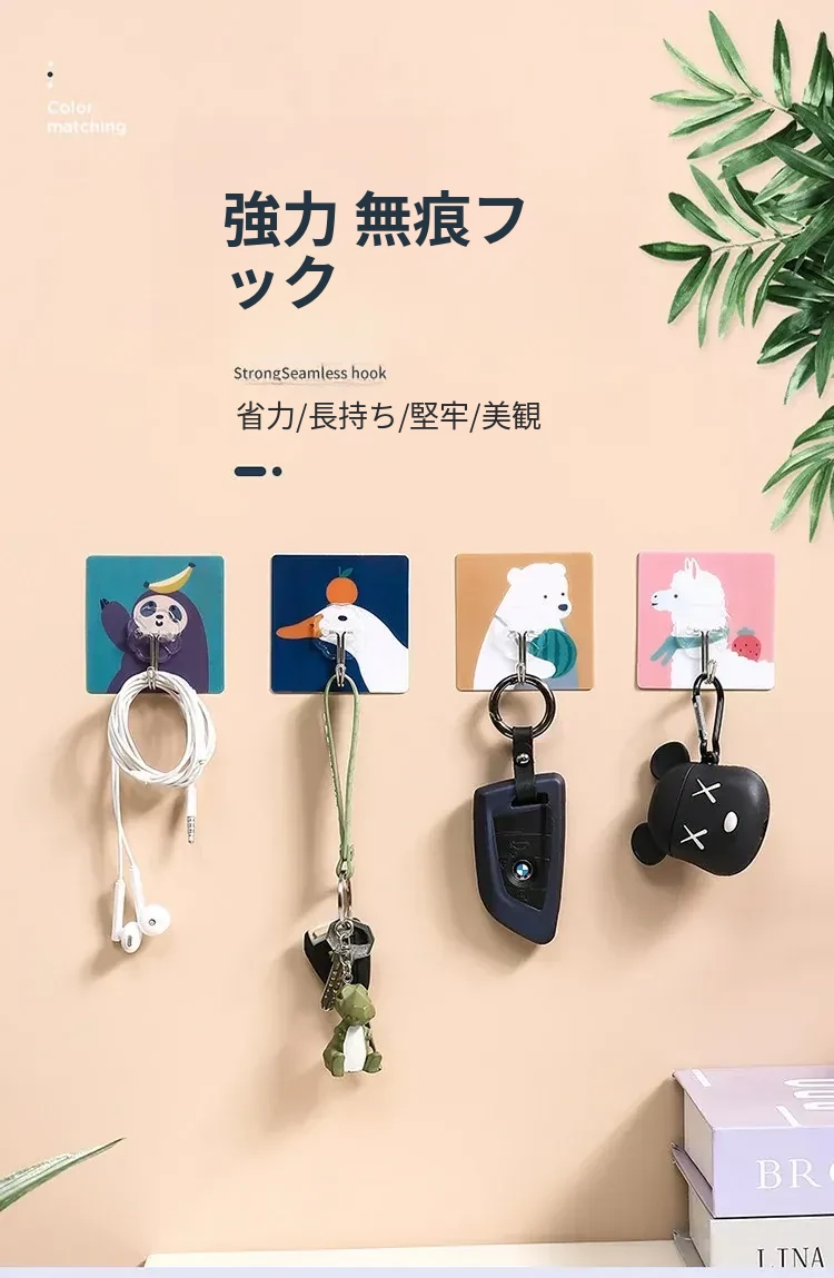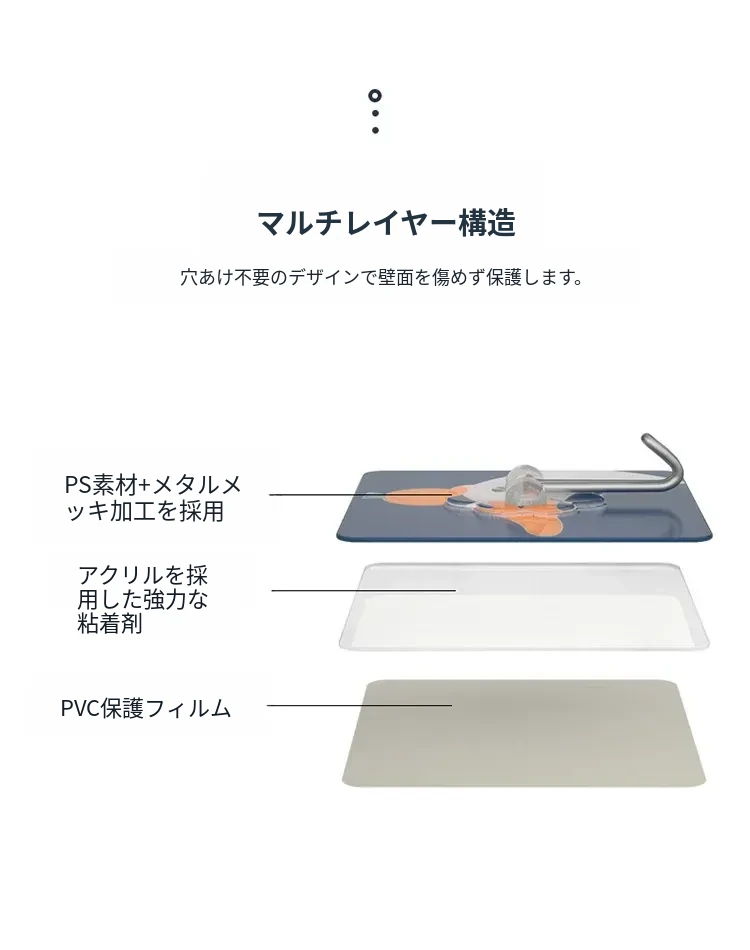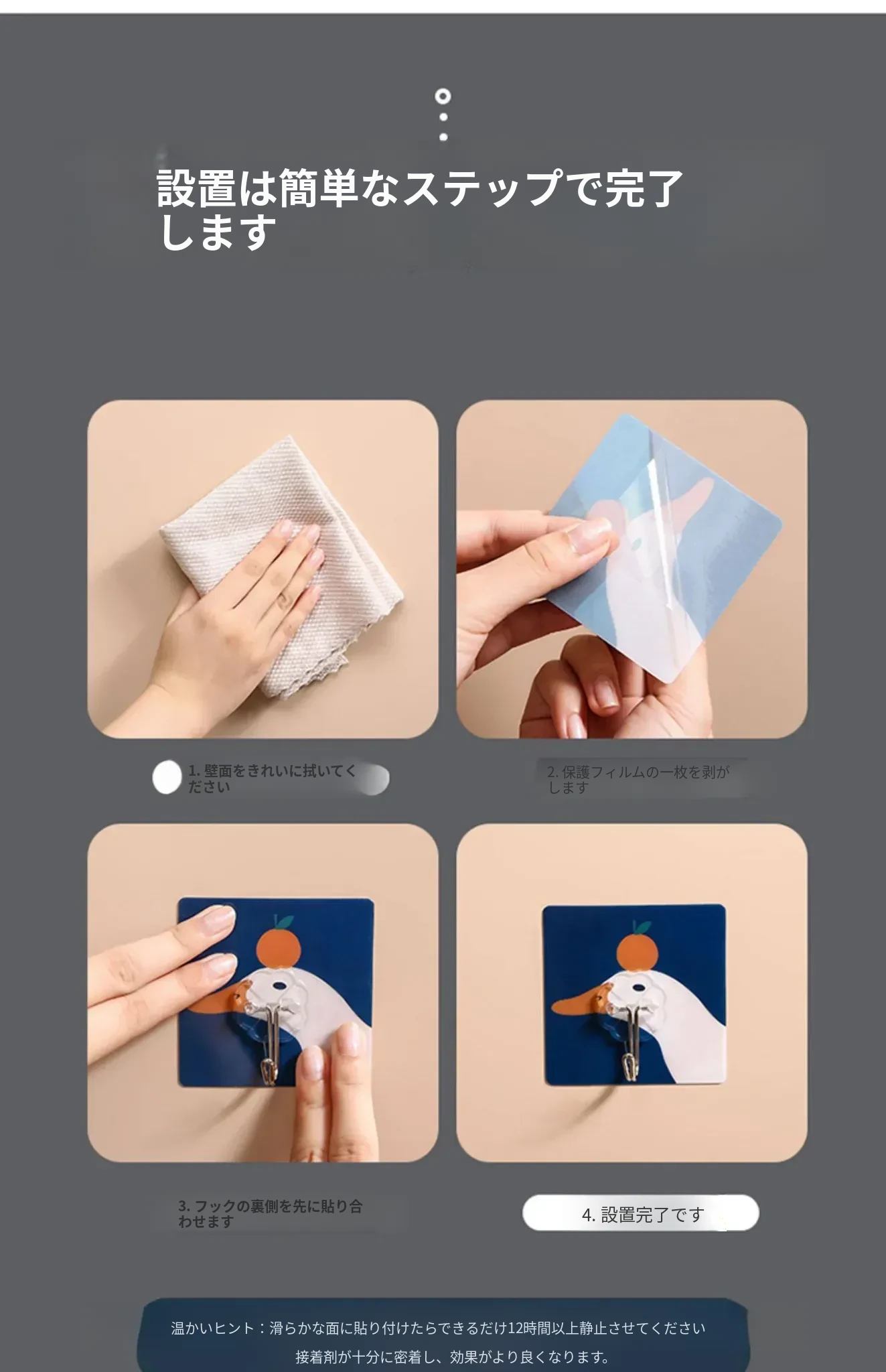 穴あけ不要!強力粘着フック - 無痕で壁を傷めず、衣類やキッチン・バスルームの収納に最適な吸盤式フック!重さに耐える優れた耐久性で、すっきりとした空間を実現します。