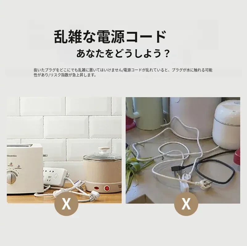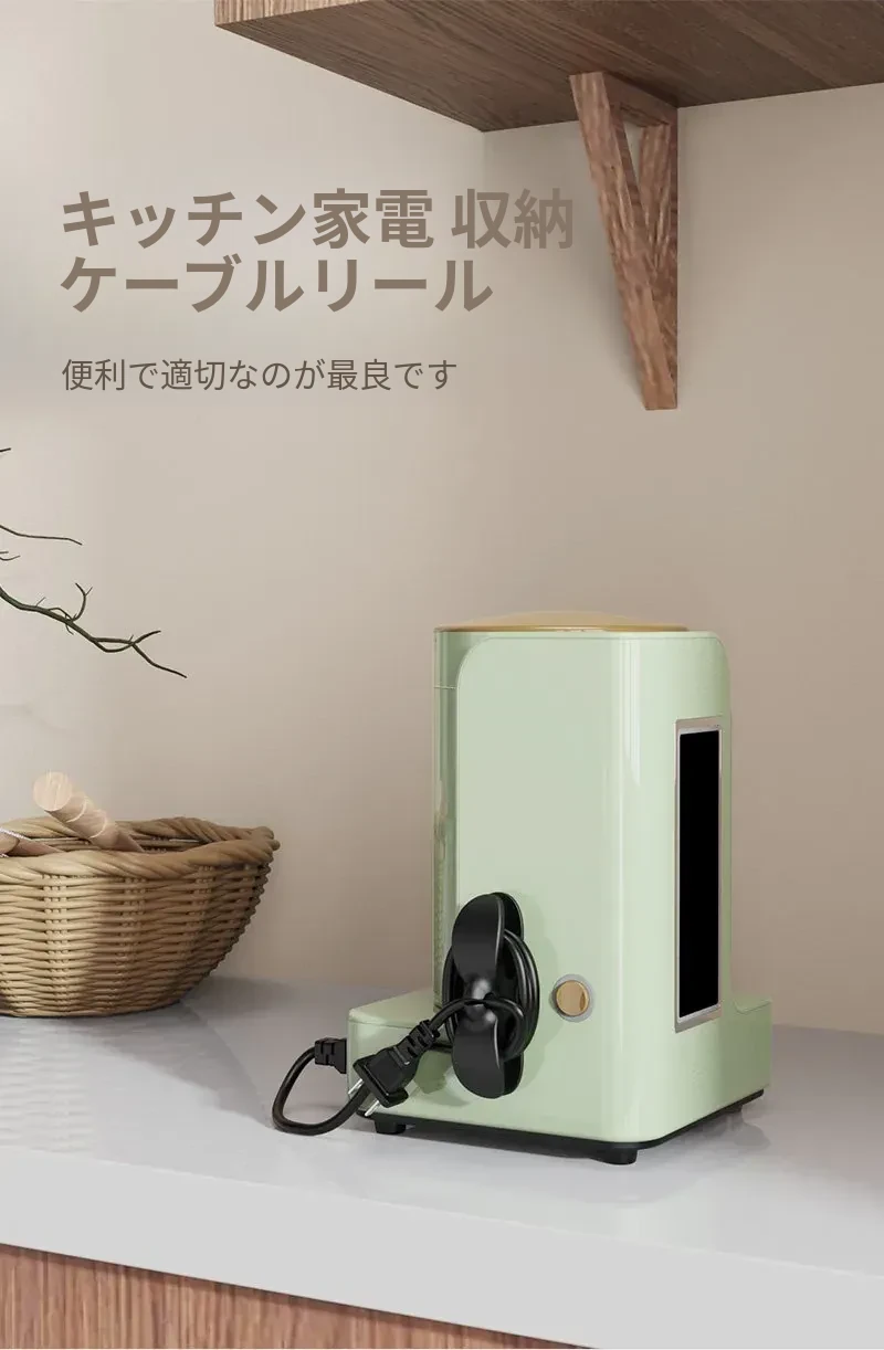 キッチン収納ケーブルリール - 簡単取り付け、穴なしプラグ固定!電源コードや家電の配線をスッキリ整理する便利グッズ!収納力抜群で、清潔なキッチン空間を実現します!