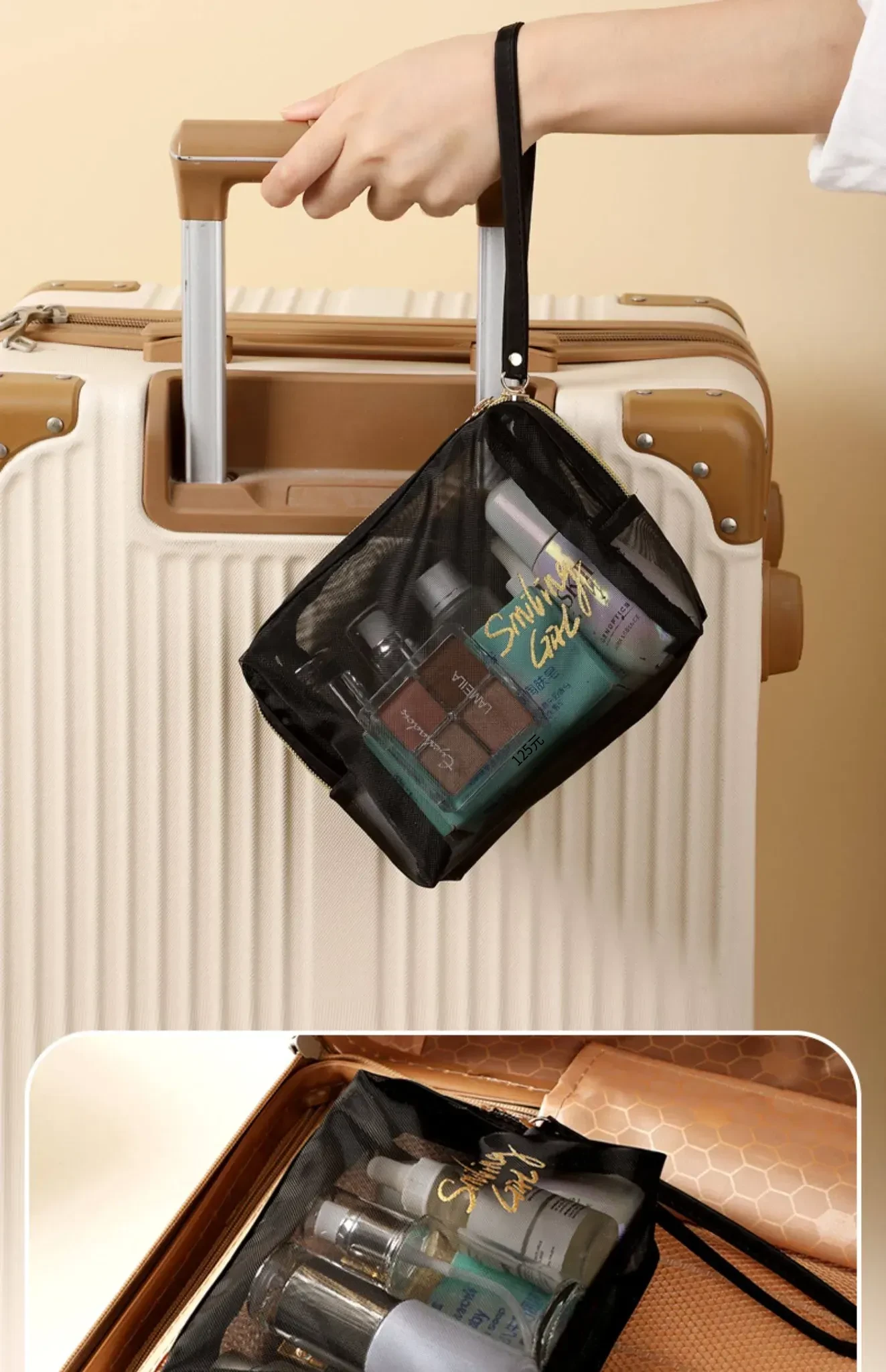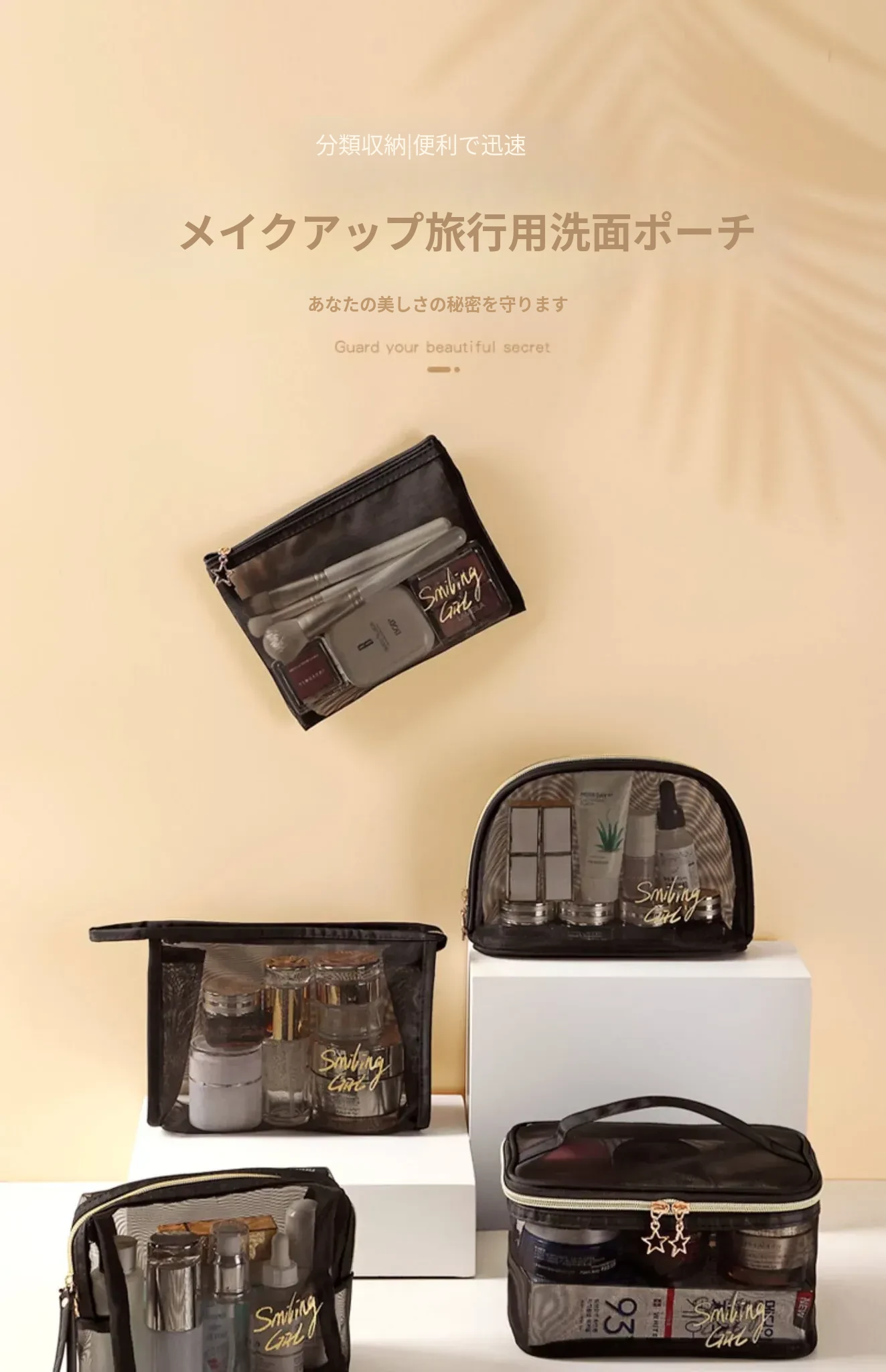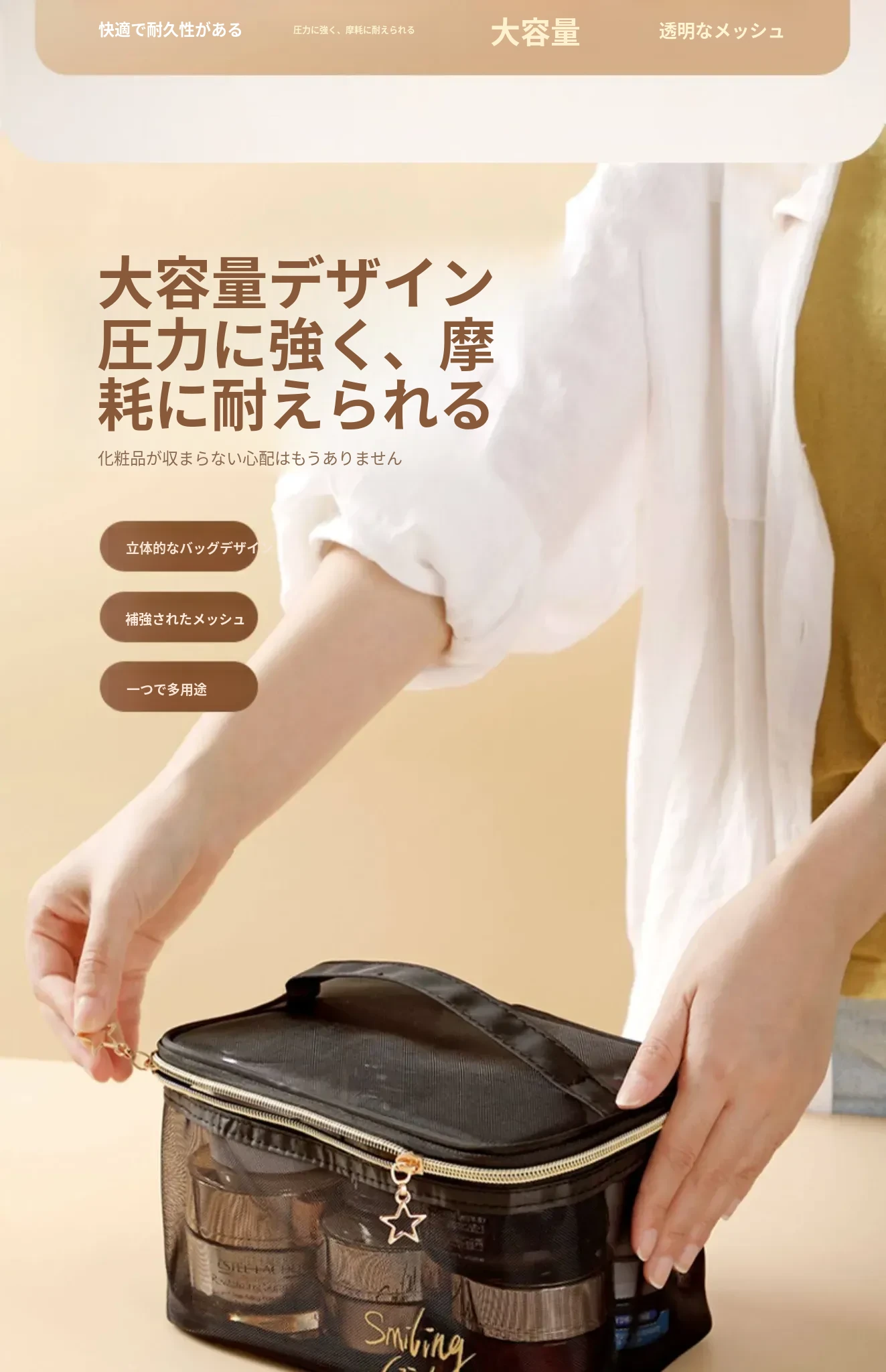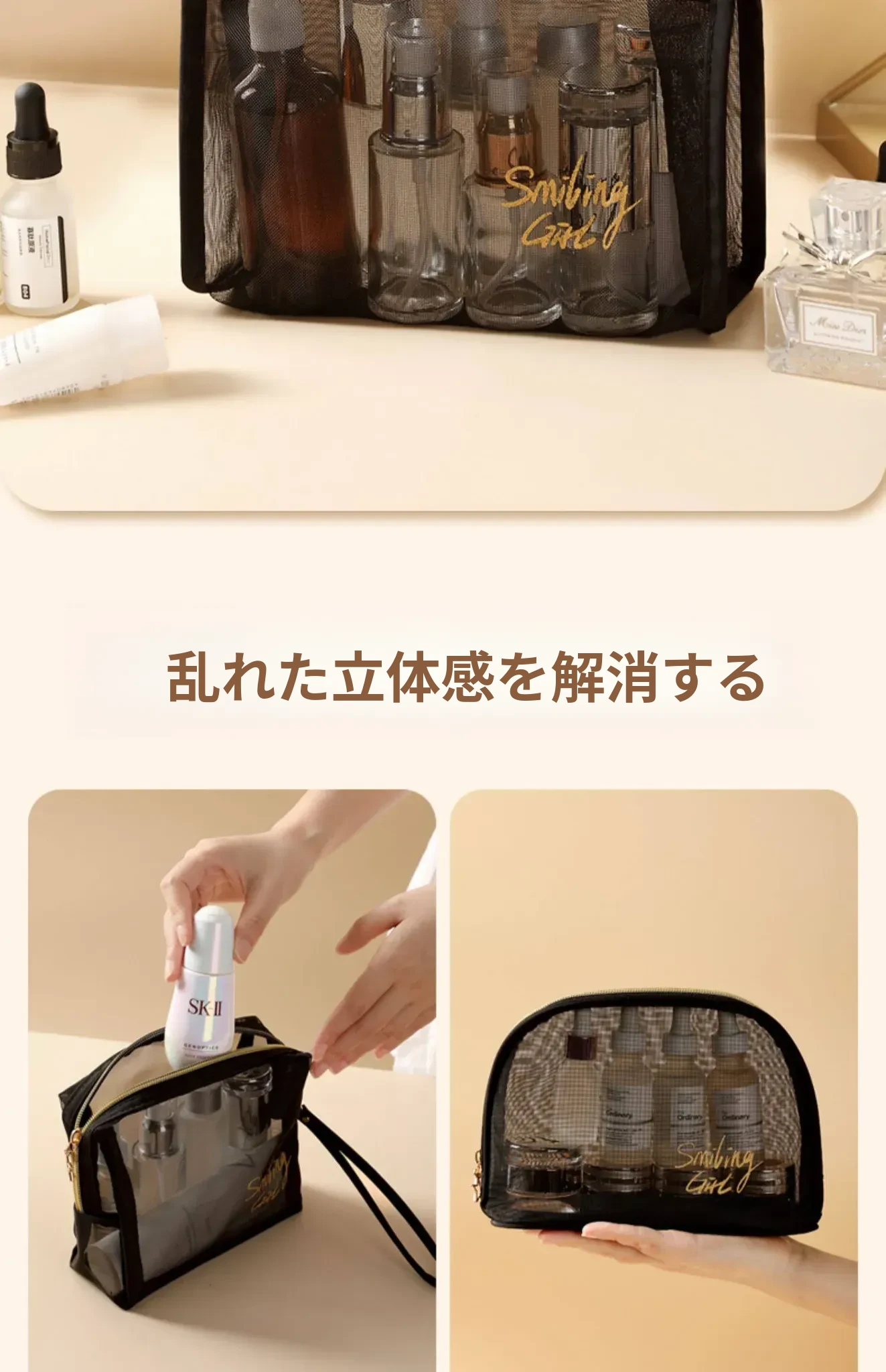大容量化粧用・洗面用ポーチ|旅行に最適!濡れたものと乾いたものを分けられる便利な水泳用バッグ|女性専用のバスルーム化粧品収納ポーチ