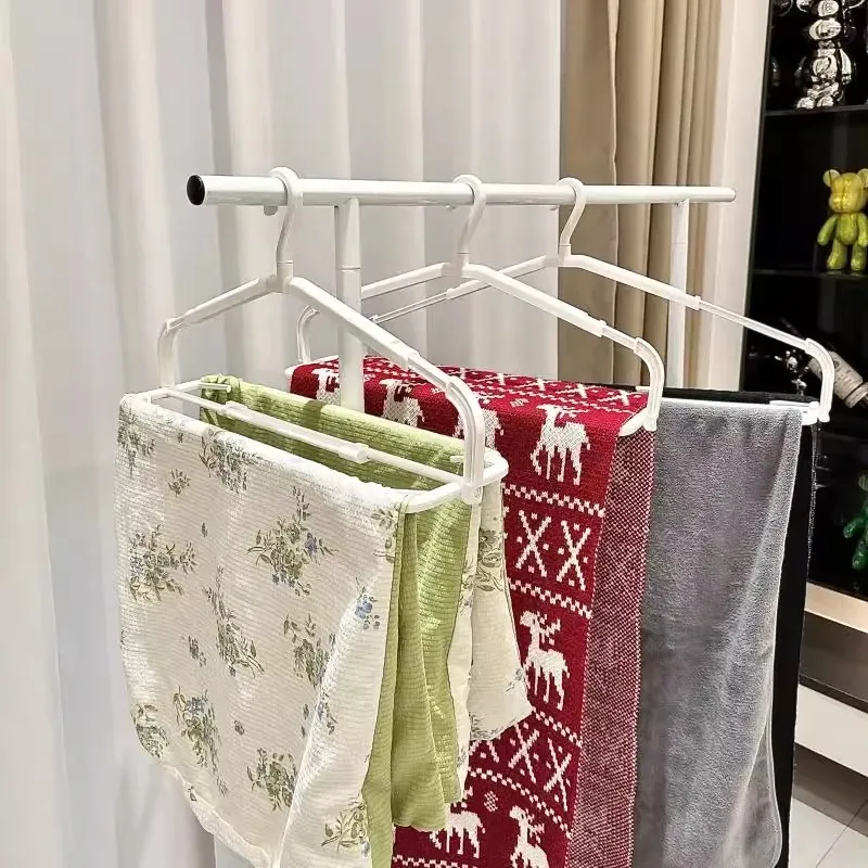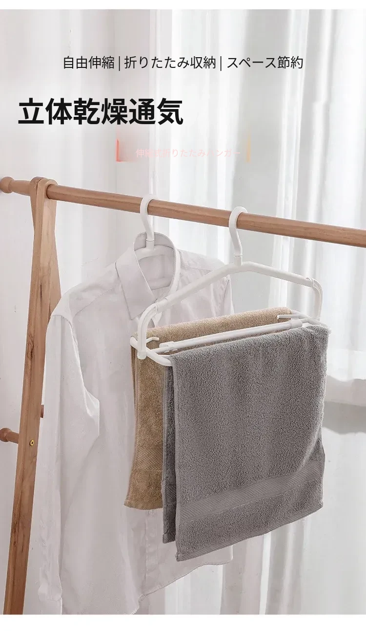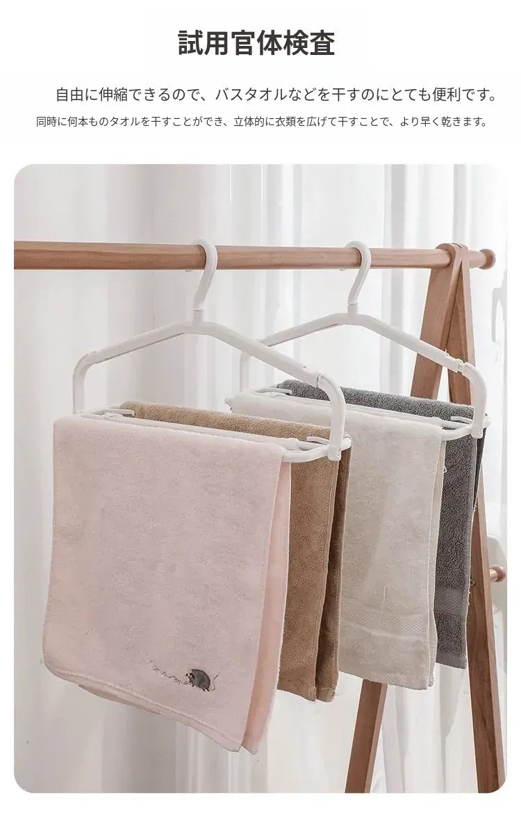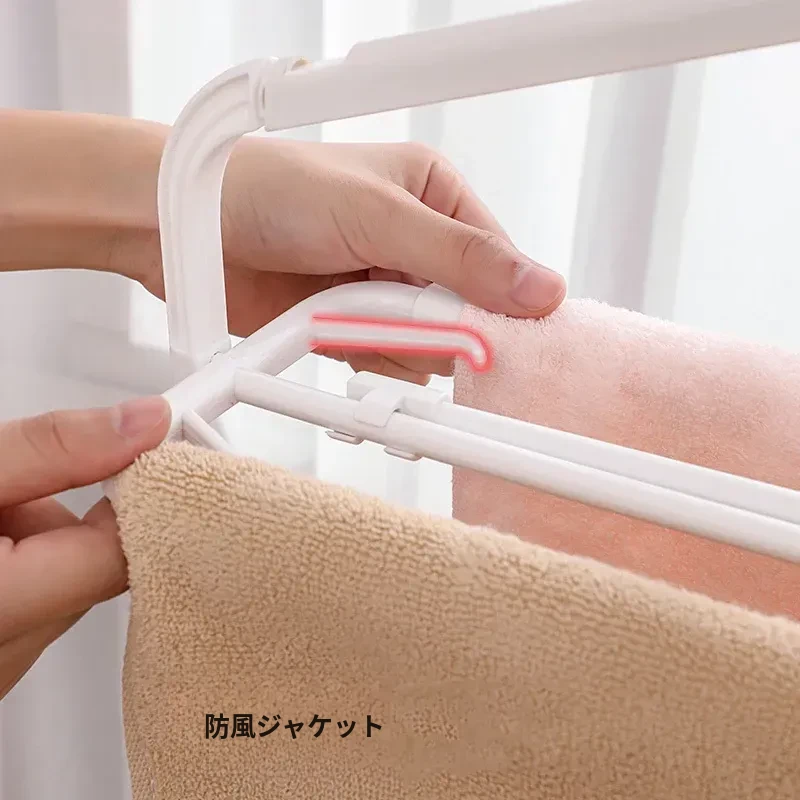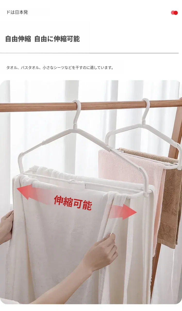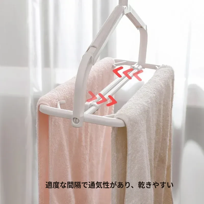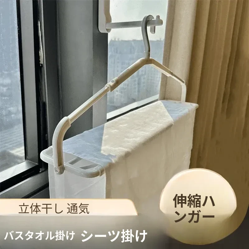 伸縮式折りたたみコートハンガー!大容量で布団やシーツも余裕で干せる!バルコニーでの使用に最適な洗濯便利グッズ!バスタオルもスッキリ収納!家事を楽にする必須アイテム!