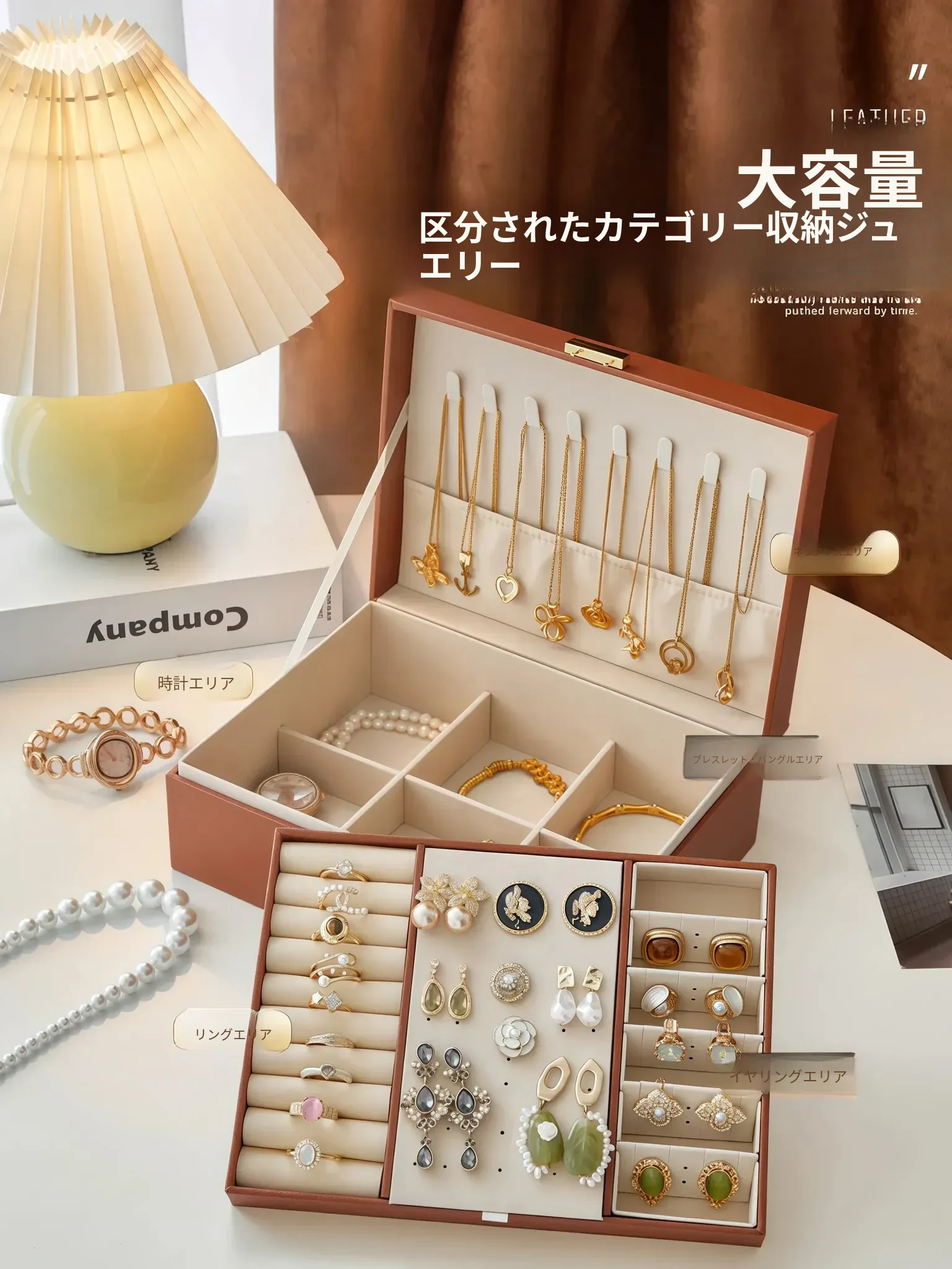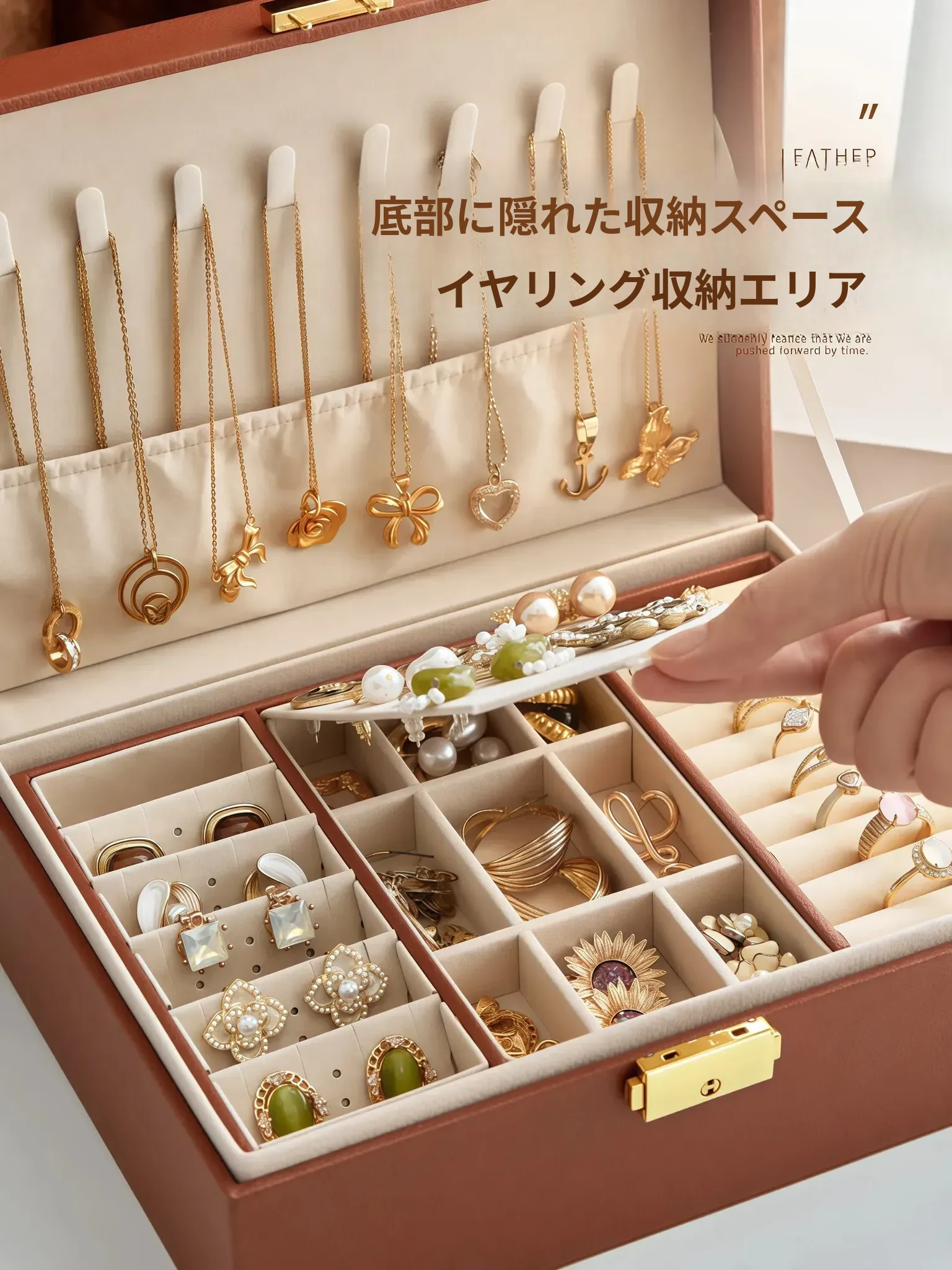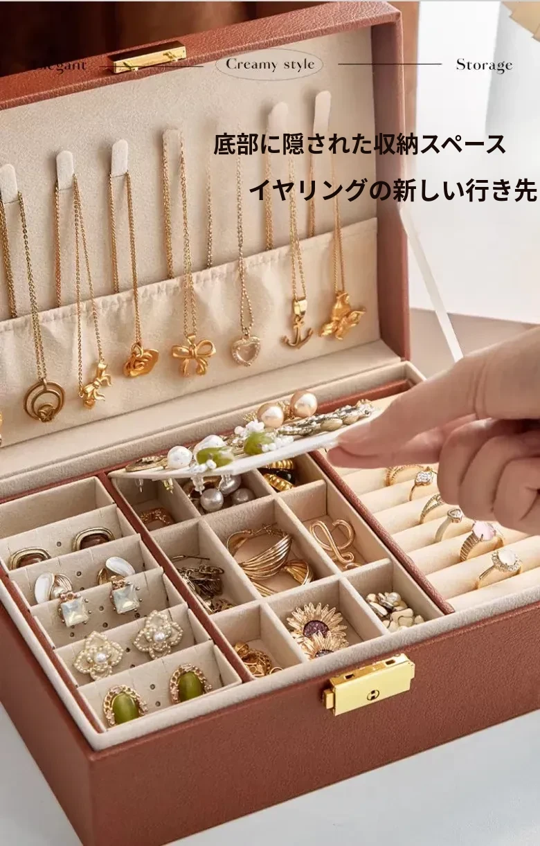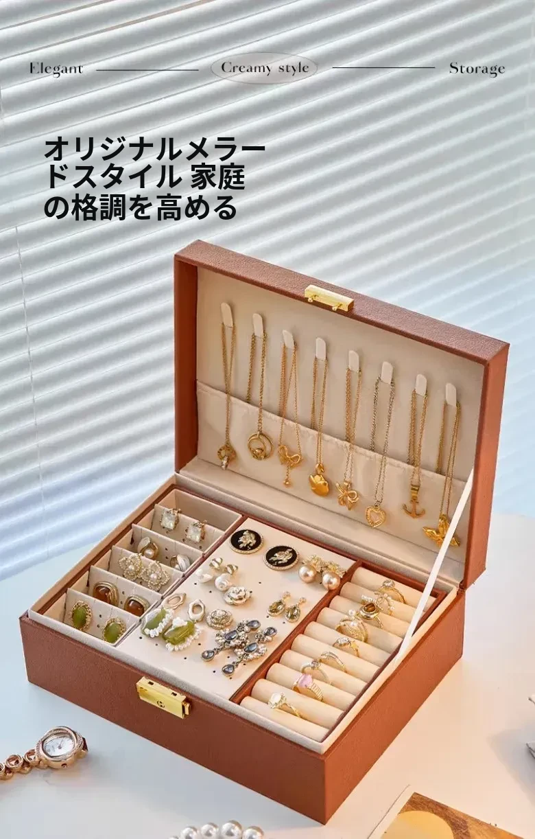 2026年新作!高級感溢れる日本製ゴールドジュエリー収納ボックス - 美しいイヤリング、ネックレス、リングをスマートに整理!あなたの宝物を引き立てるデザイン。