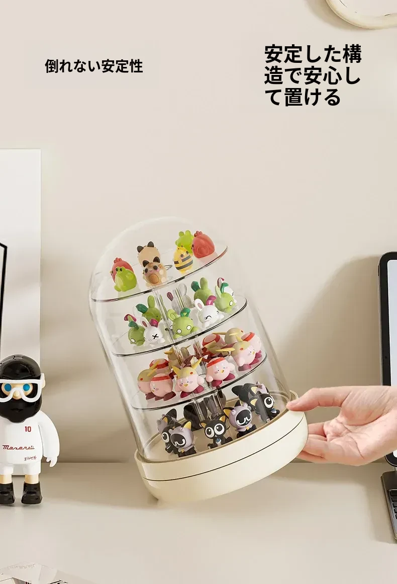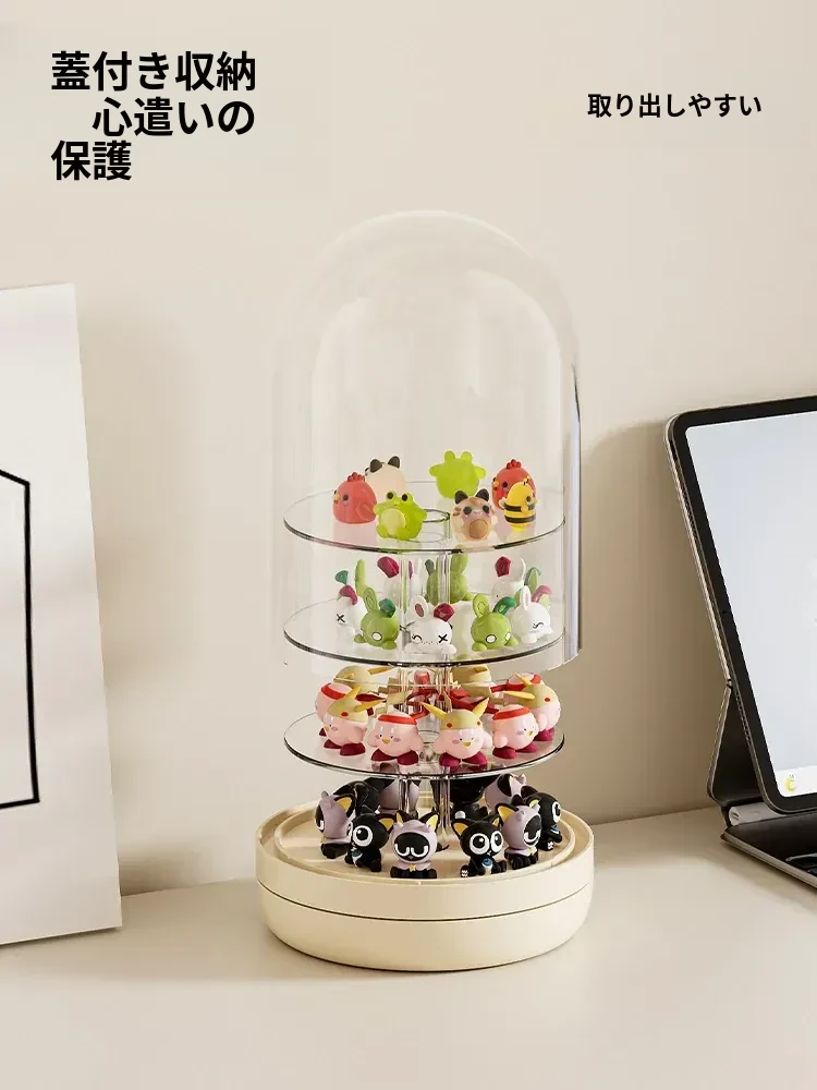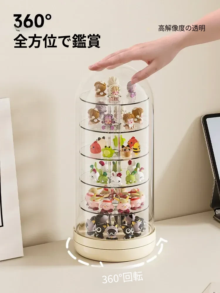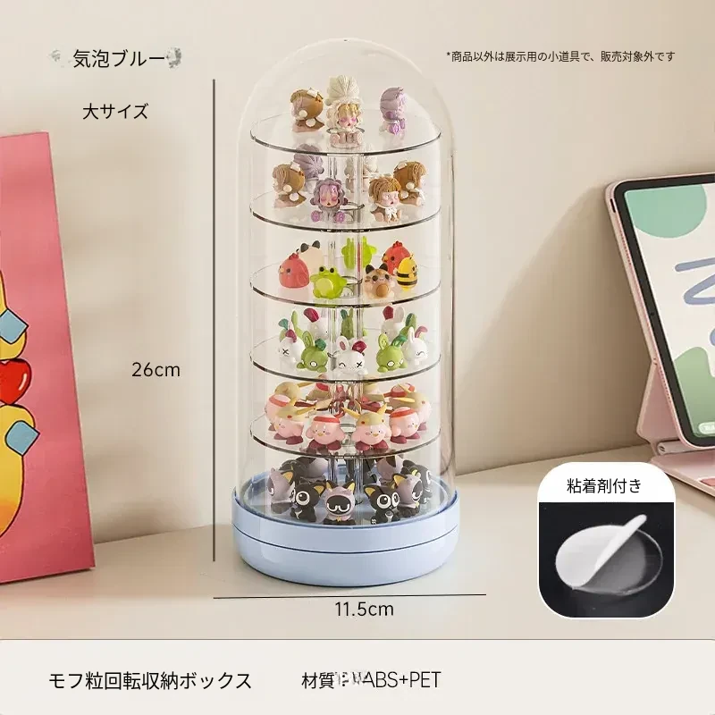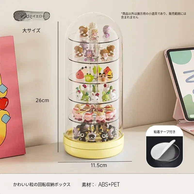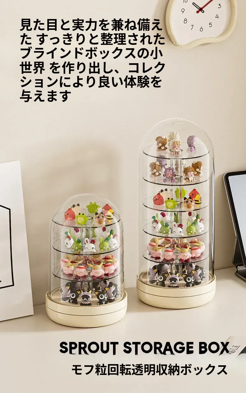 マイティーモン粒ディスプレイボックス - 透明防塵・回転式デスク収納ラック!小物の整理に最適なブラインドボックスフィギュア収納ケース。あなたのデスクをスタイリッシュに彩る!