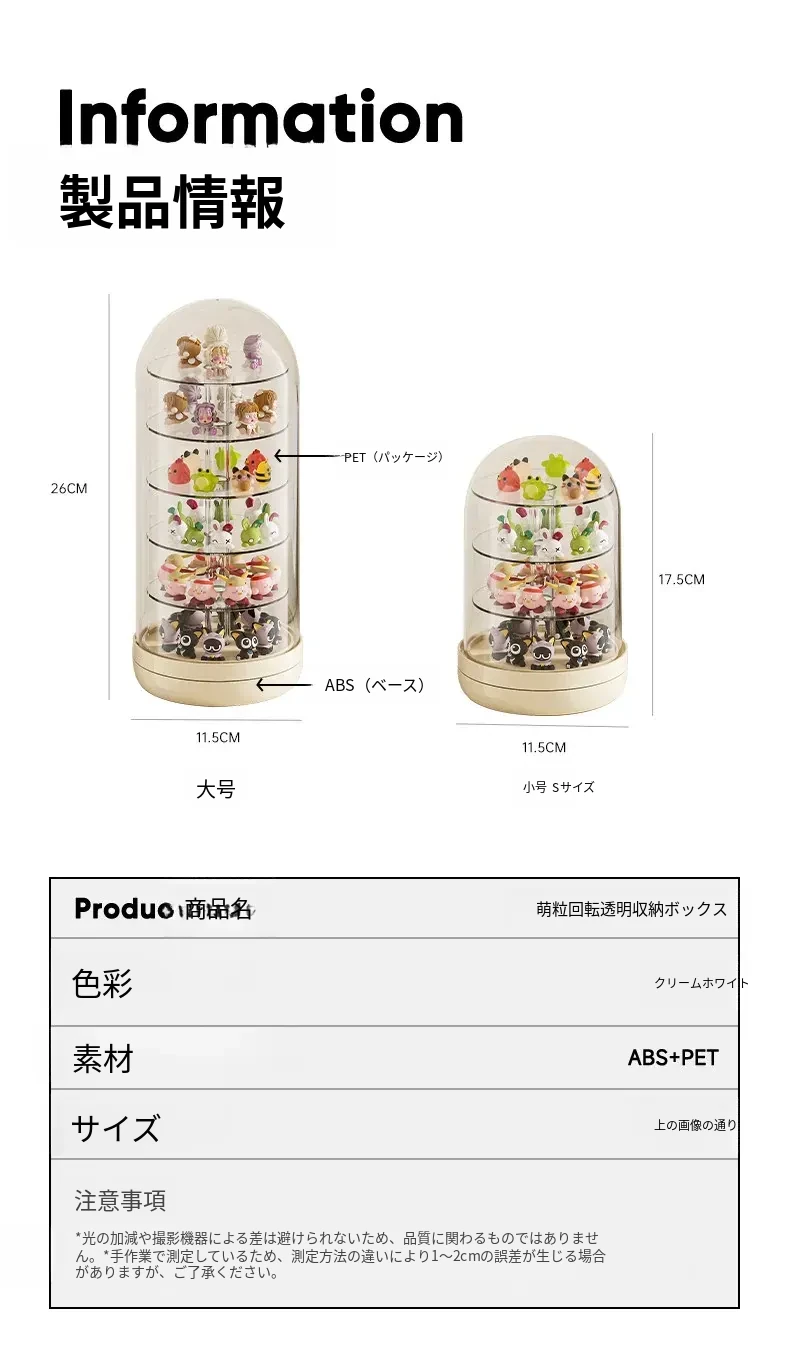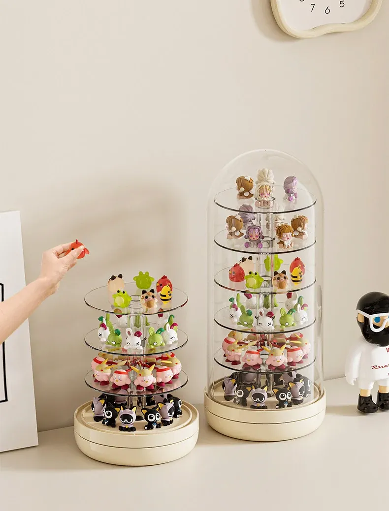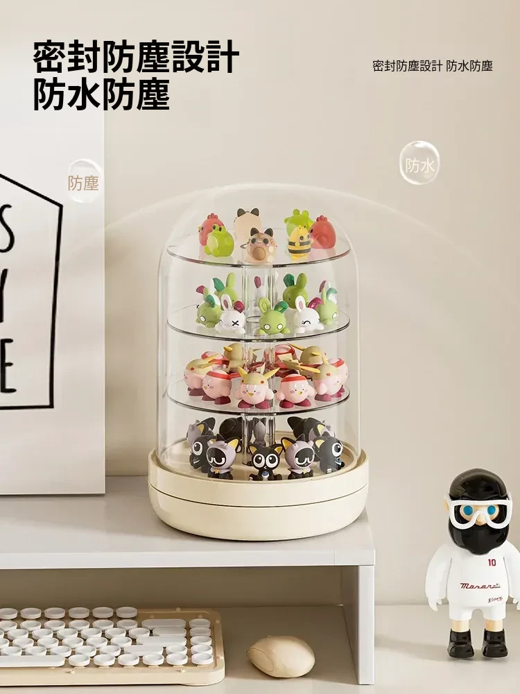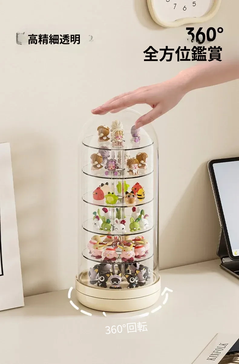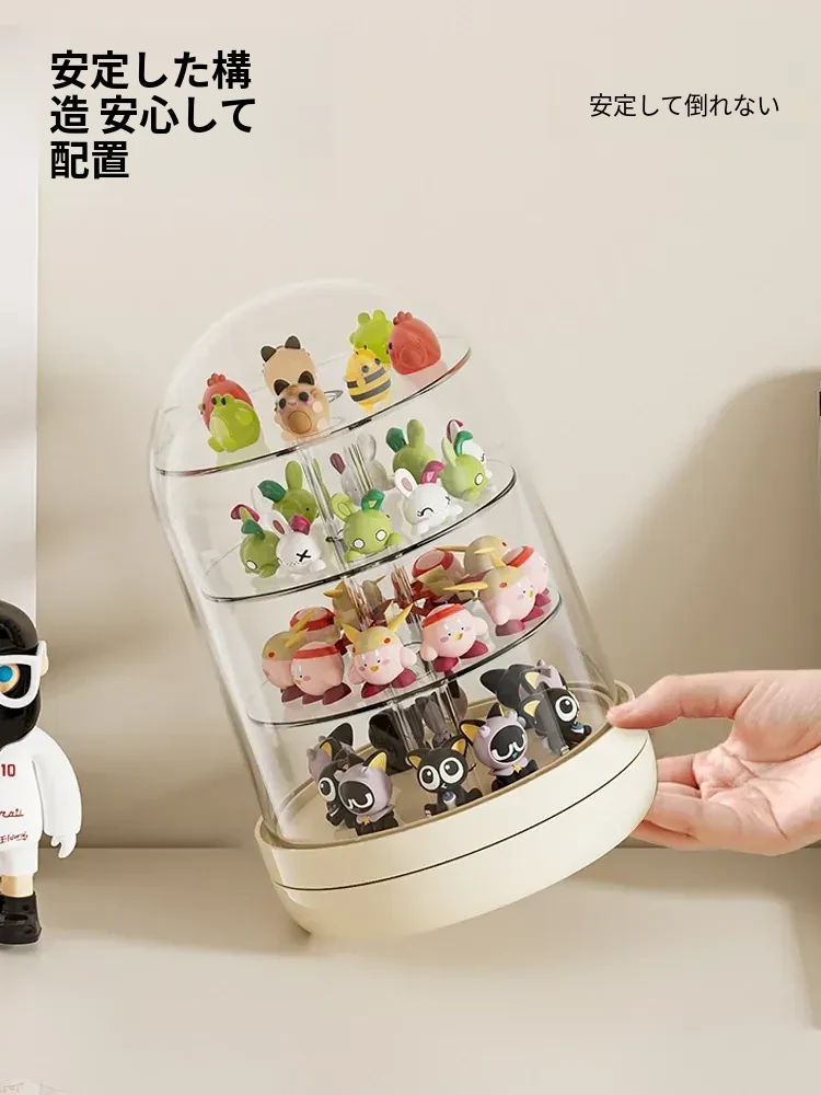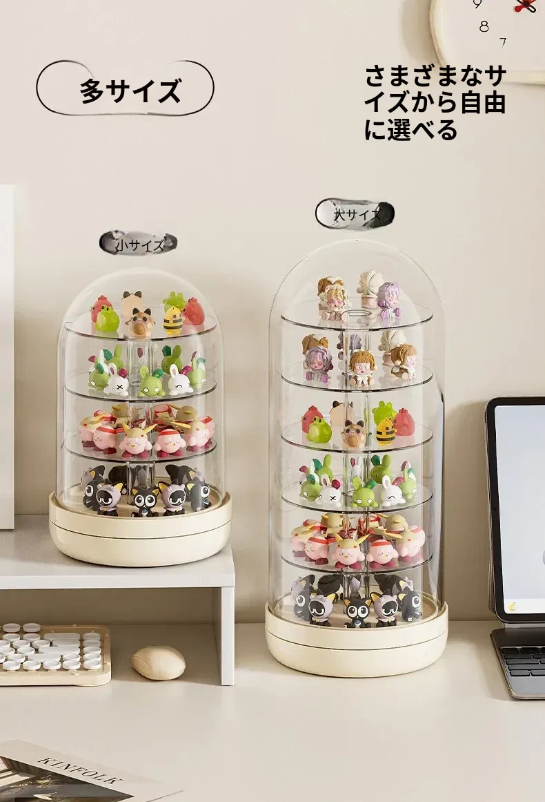 マイティーモン粒ディスプレイボックス - 透明防塵・回転式デスク収納ラック!小物の整理に最適なブラインドボックスフィギュア収納ケース。あなたのデスクをスタイリッシュに彩る!