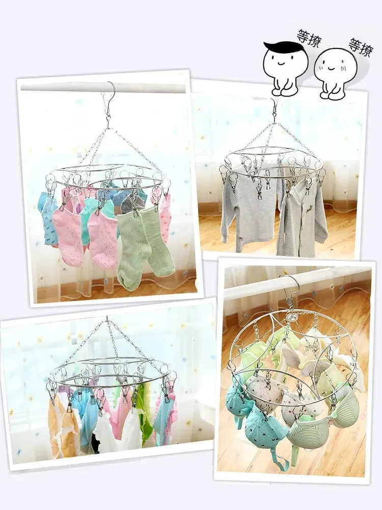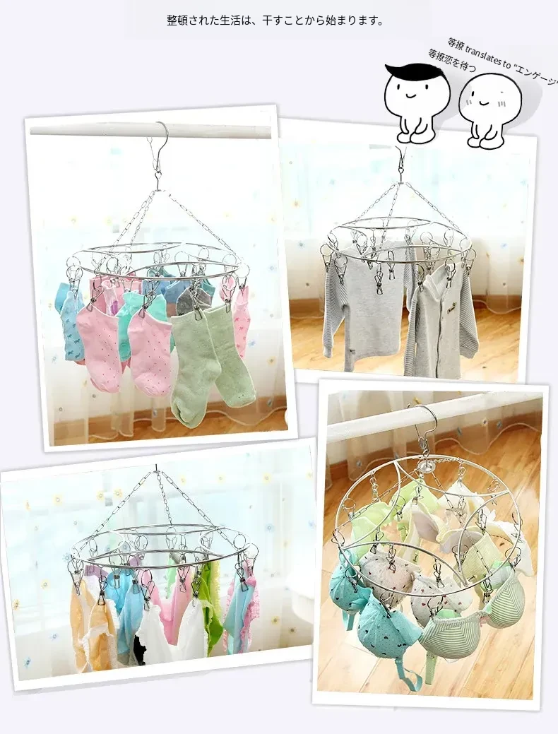 多機能ステンレス製ハンガー|子供用・赤ちゃん衣類の収納と干しに最適!靴下も整理整頓できる便利なフック付き!家族みんなに嬉しいアイテム!