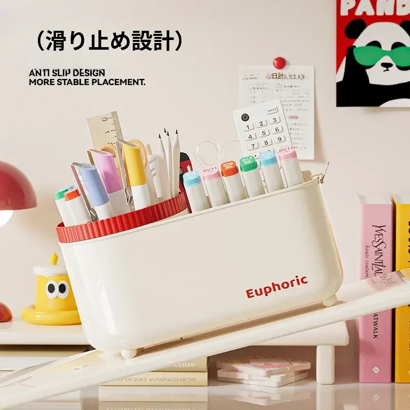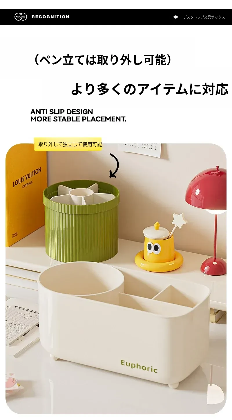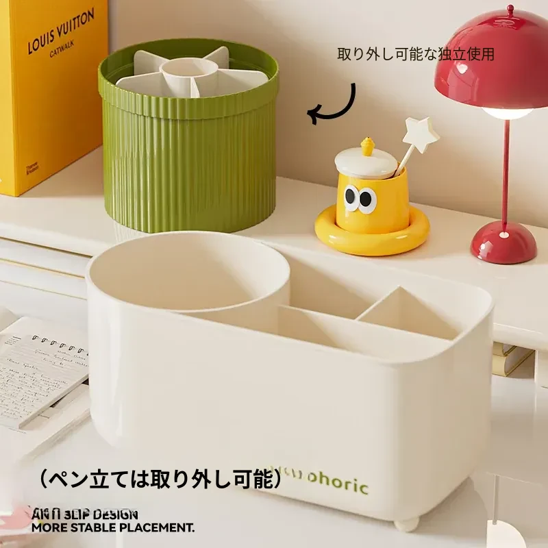 クリーム色のペン立て『ベーシックタイプ』⭐多段収納⭐回転デザイン