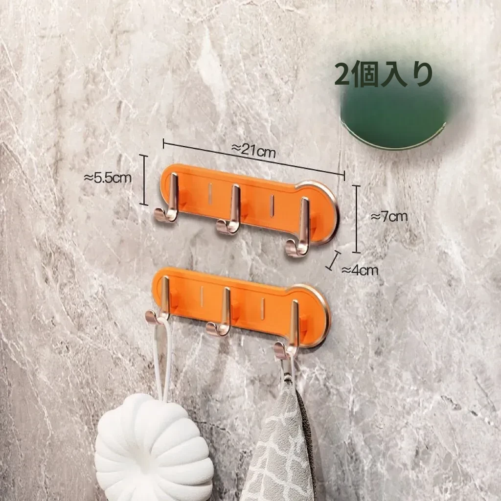 【3フック】オレンジ色-2個セット