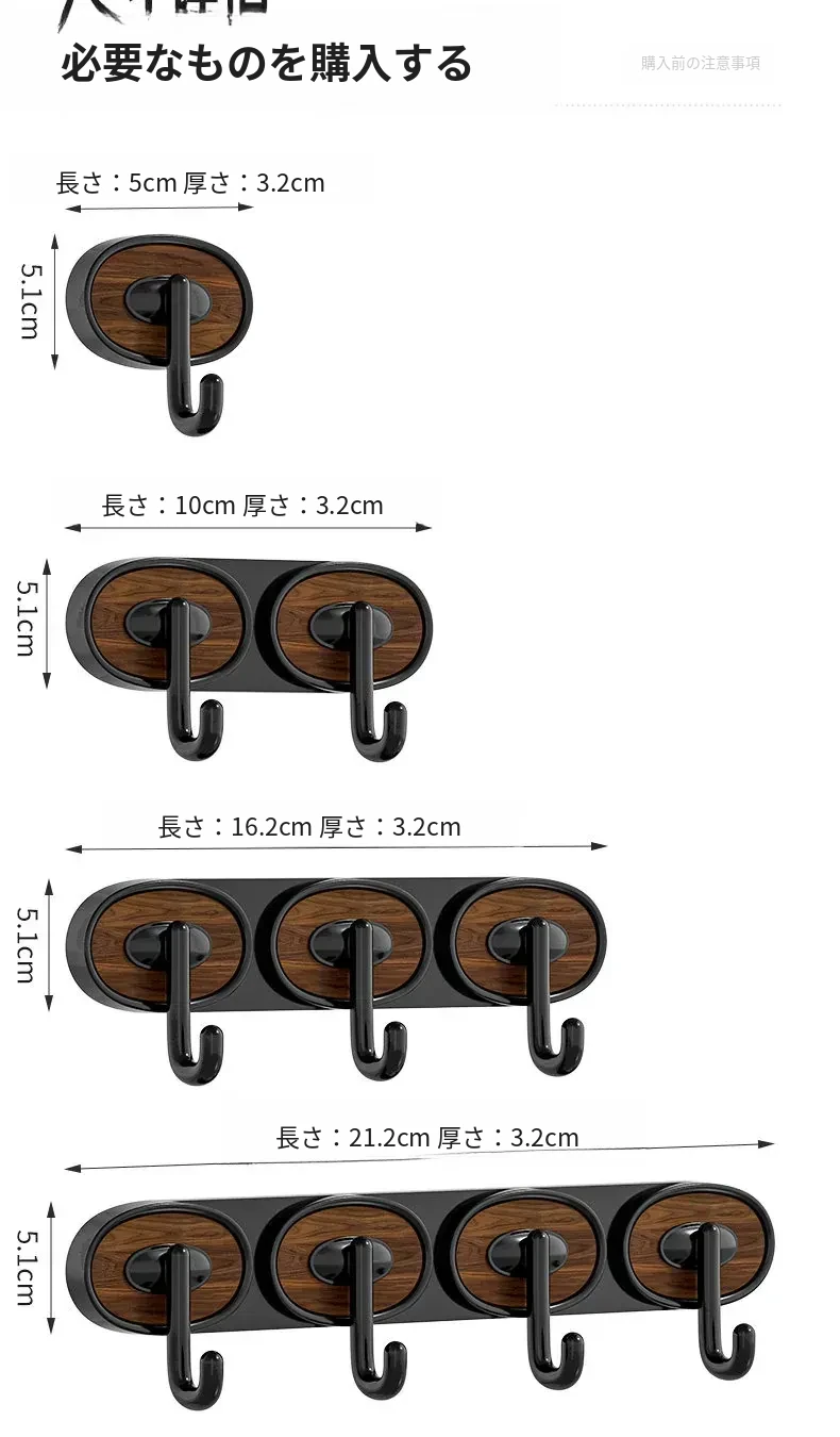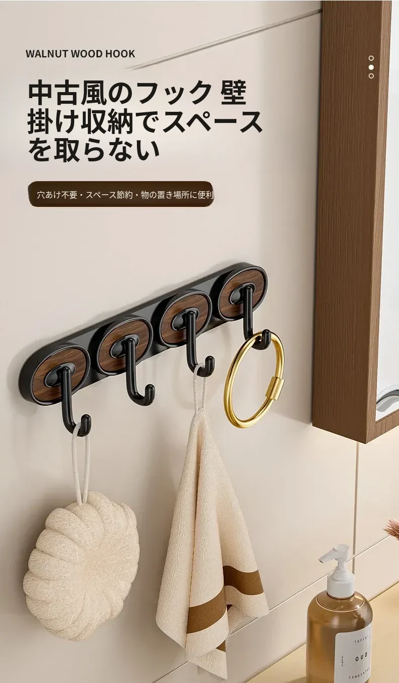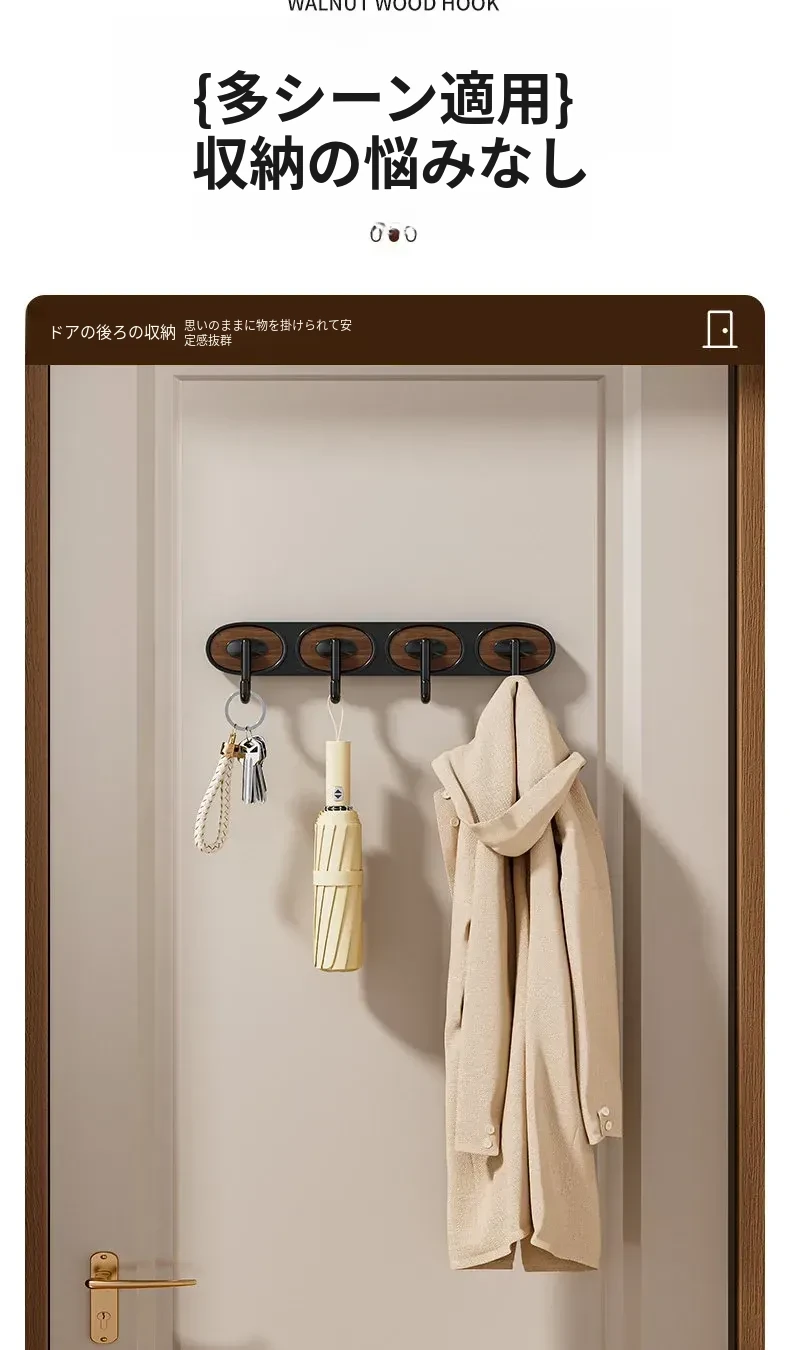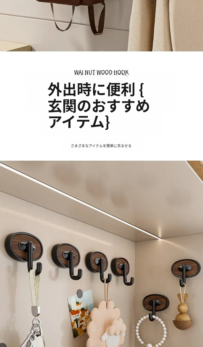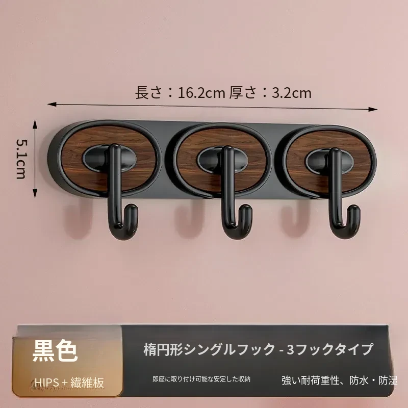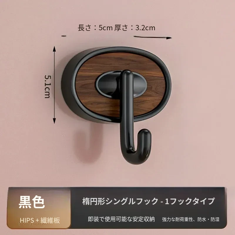 ウォールナット木目-黒色シングルフック